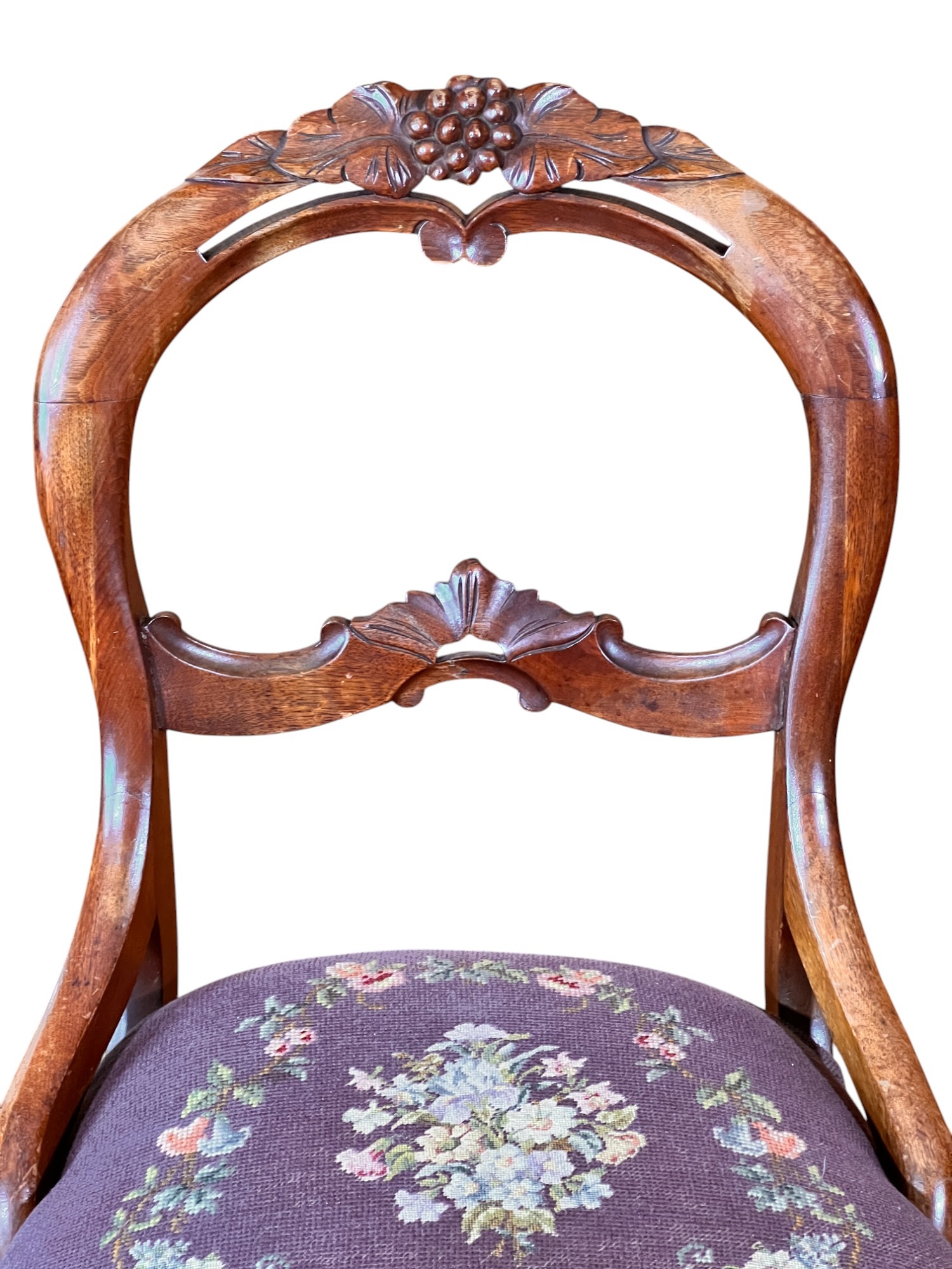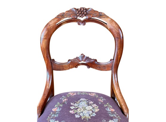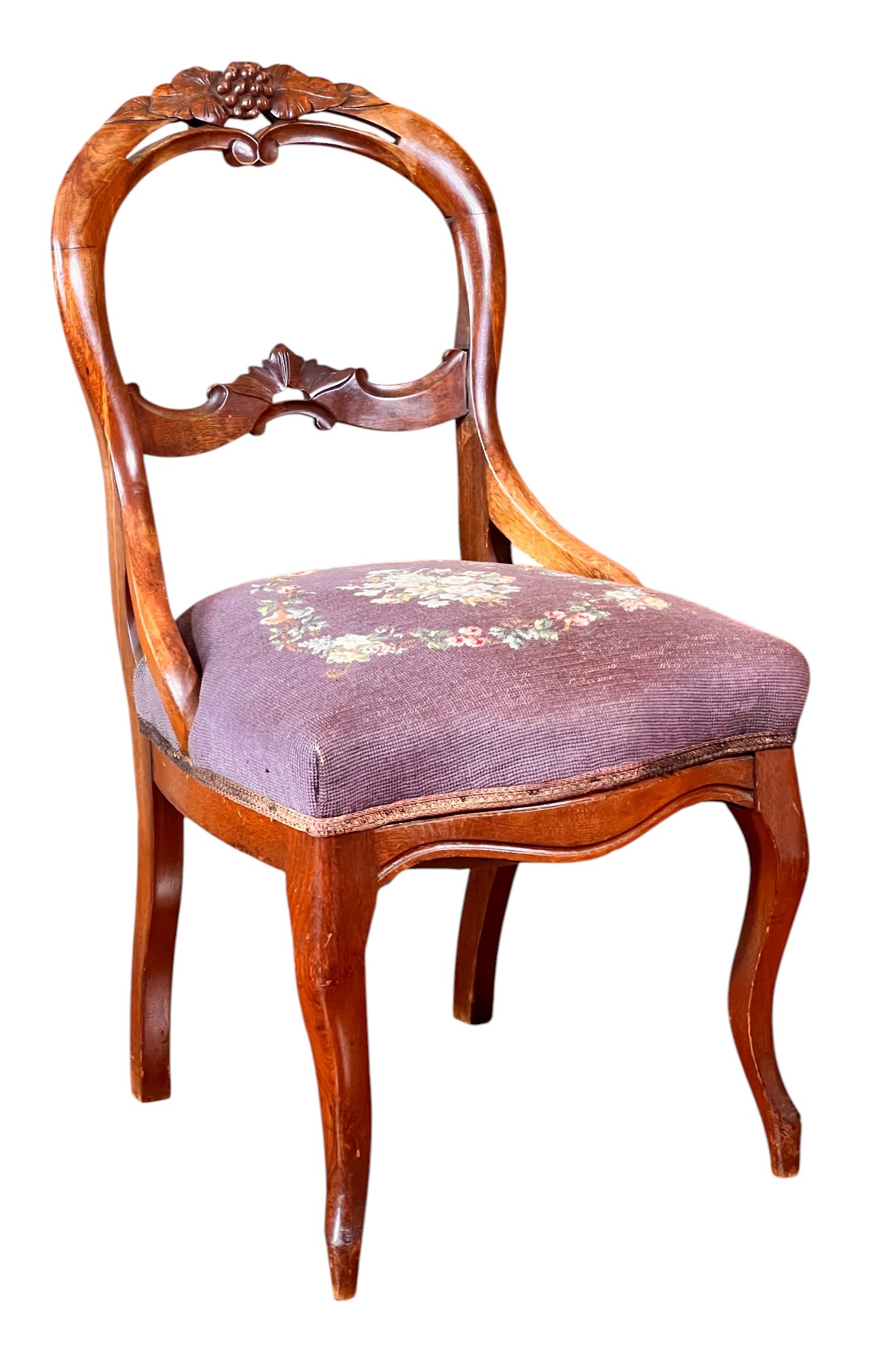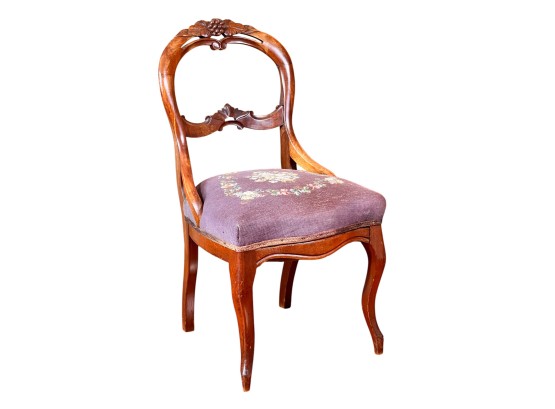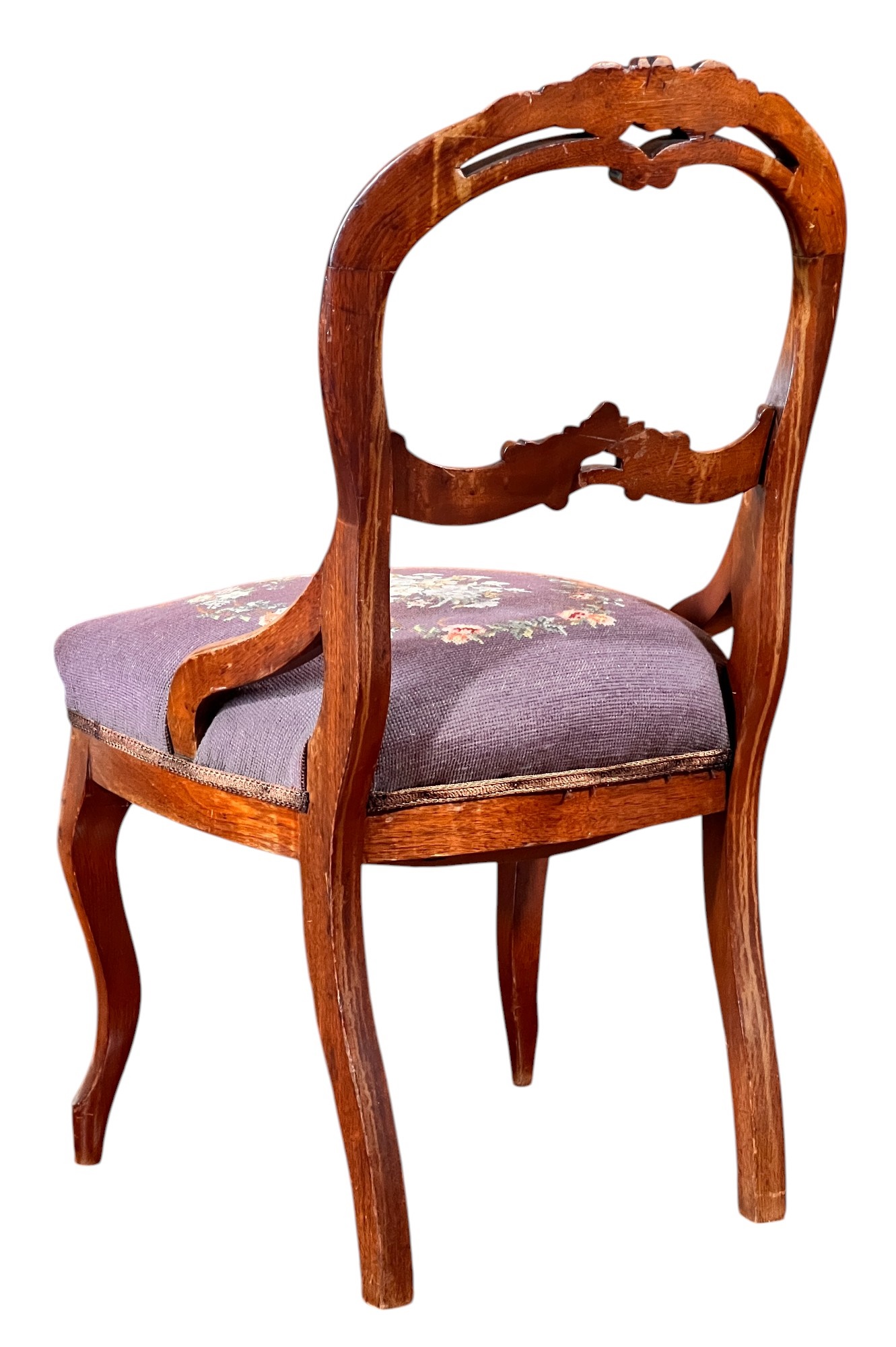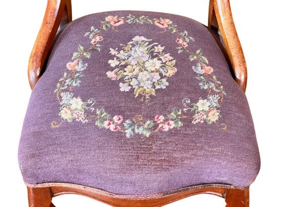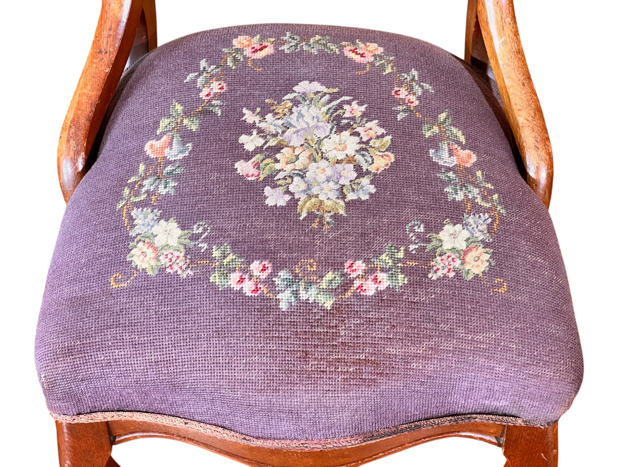 Seat embroidered with a floral motif. 35 x 18 x 18 inches Condition: Repair to center splat