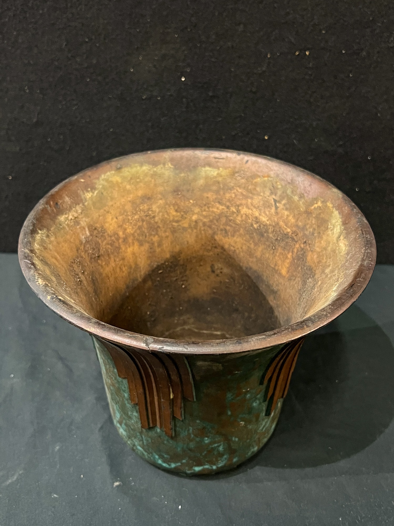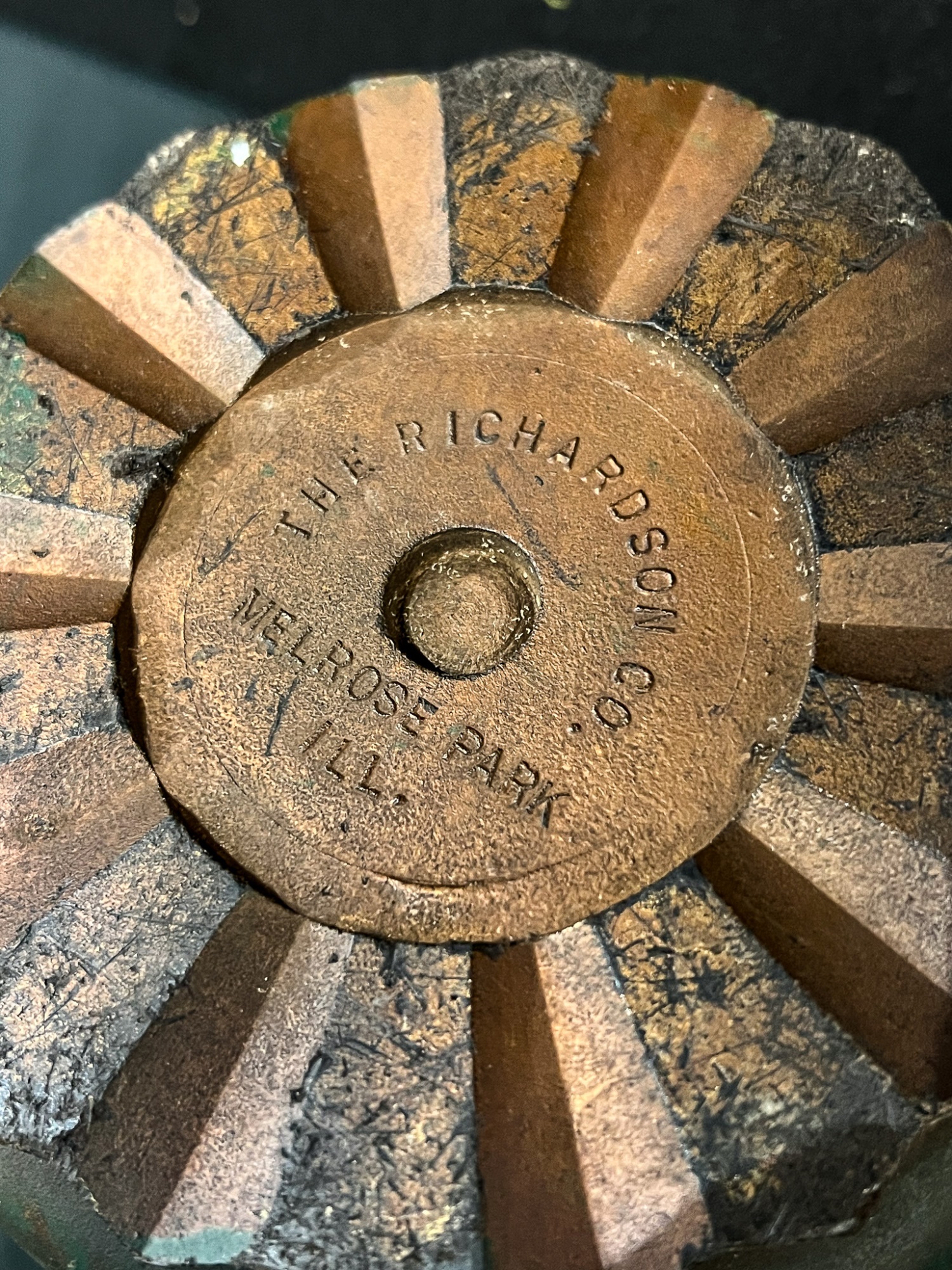 By The Richardson Co, Melrose Park Ill. with green and gold resin. 8 1/2 x 9 3/4 dia