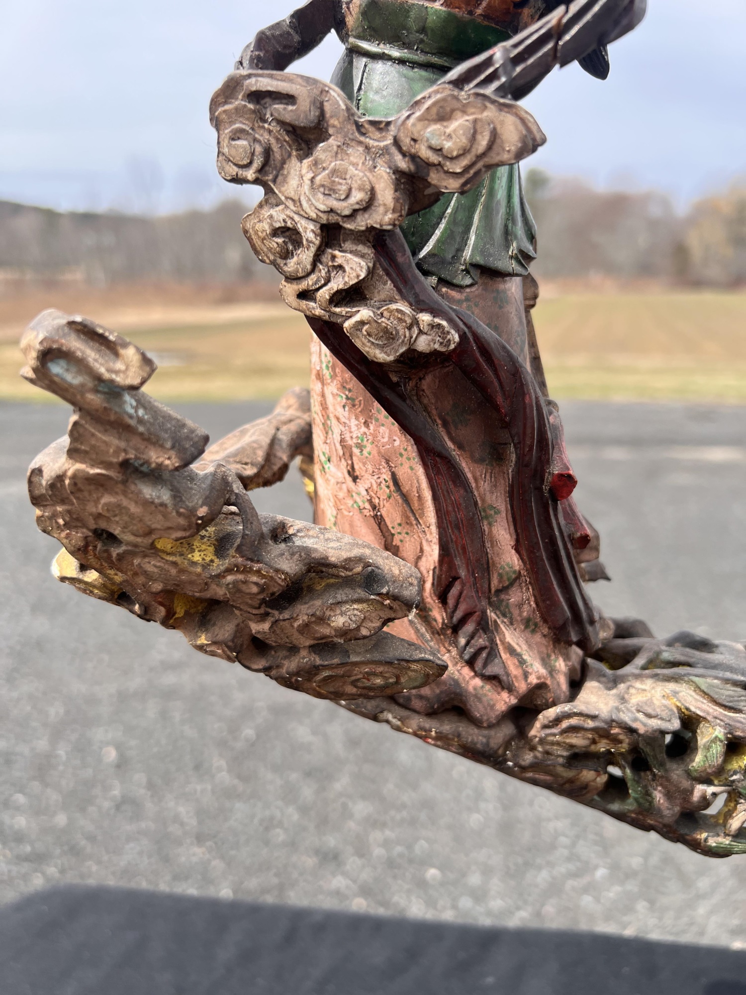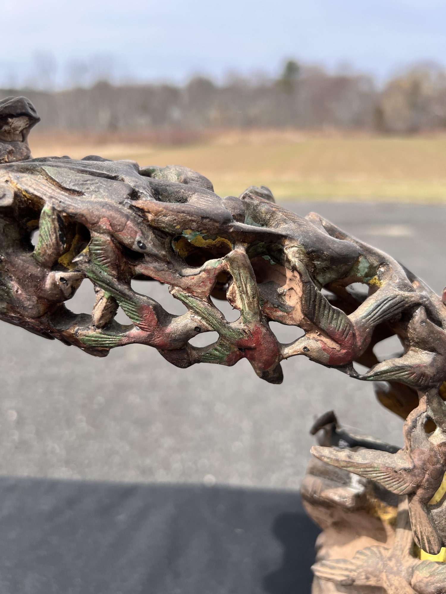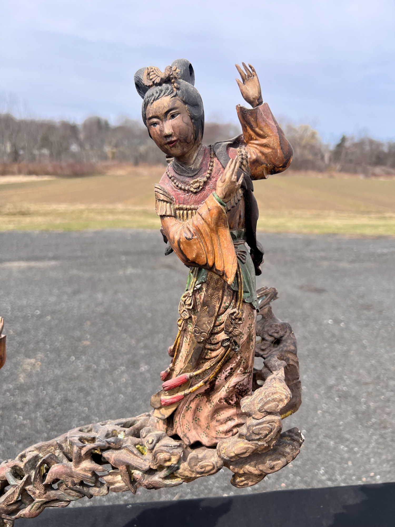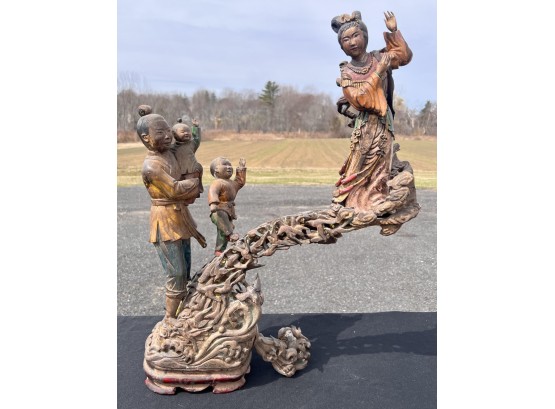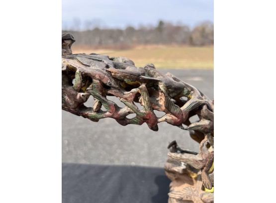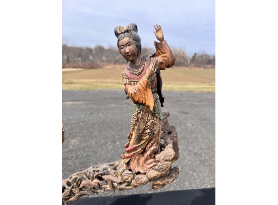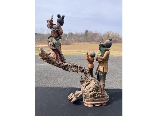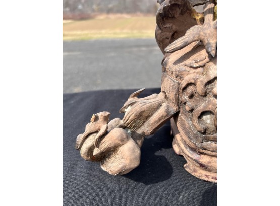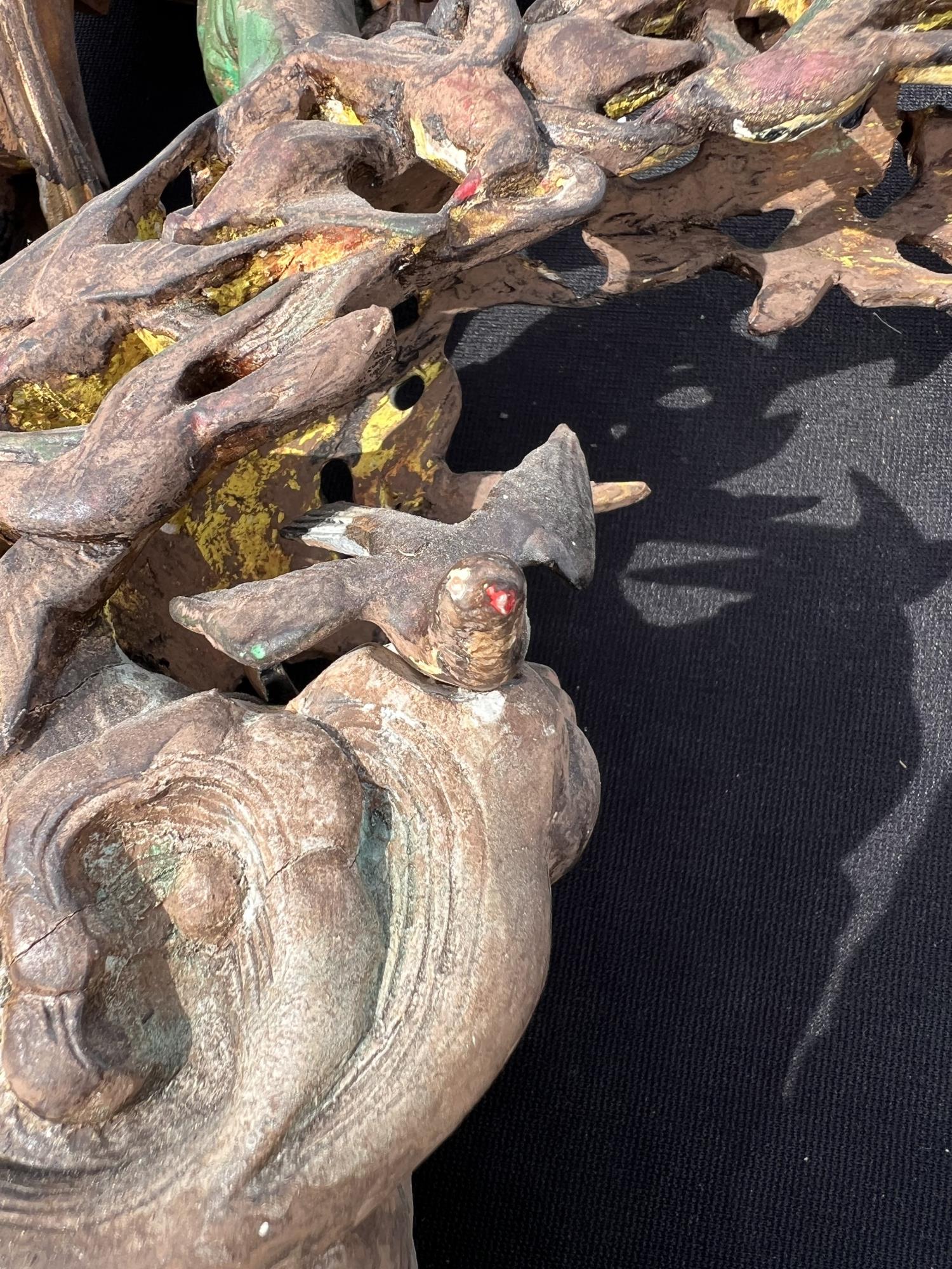 Appears to be gilt over carved and pierced exotic wood. 23 1/2" tall Condition: Scattered chips, cracks and repairs, see photos Temp No 6618