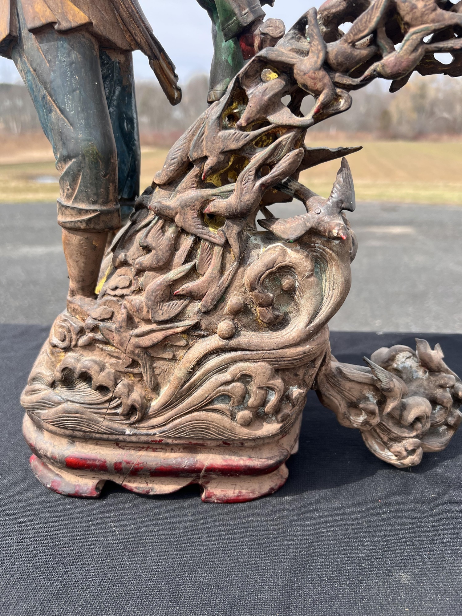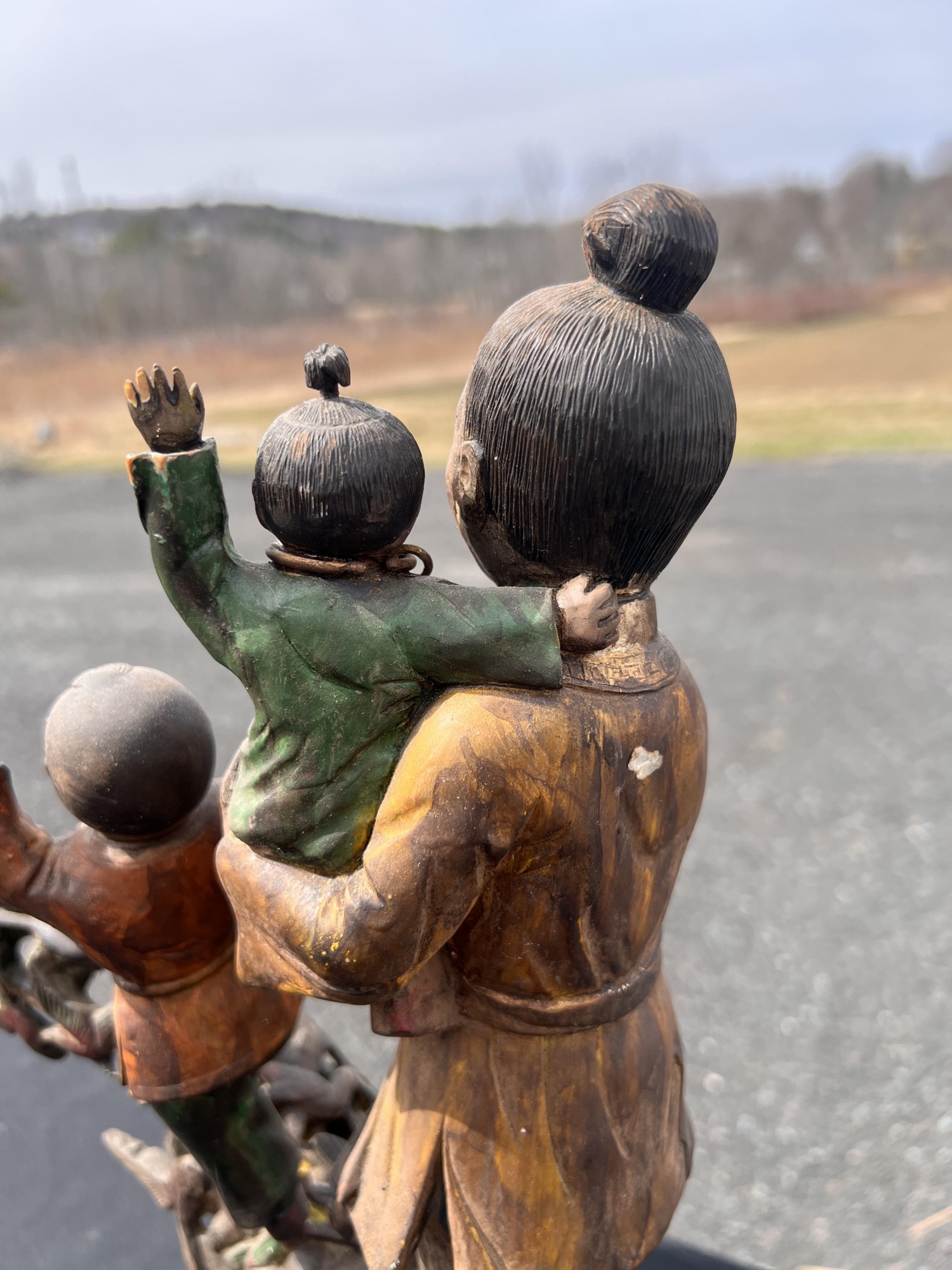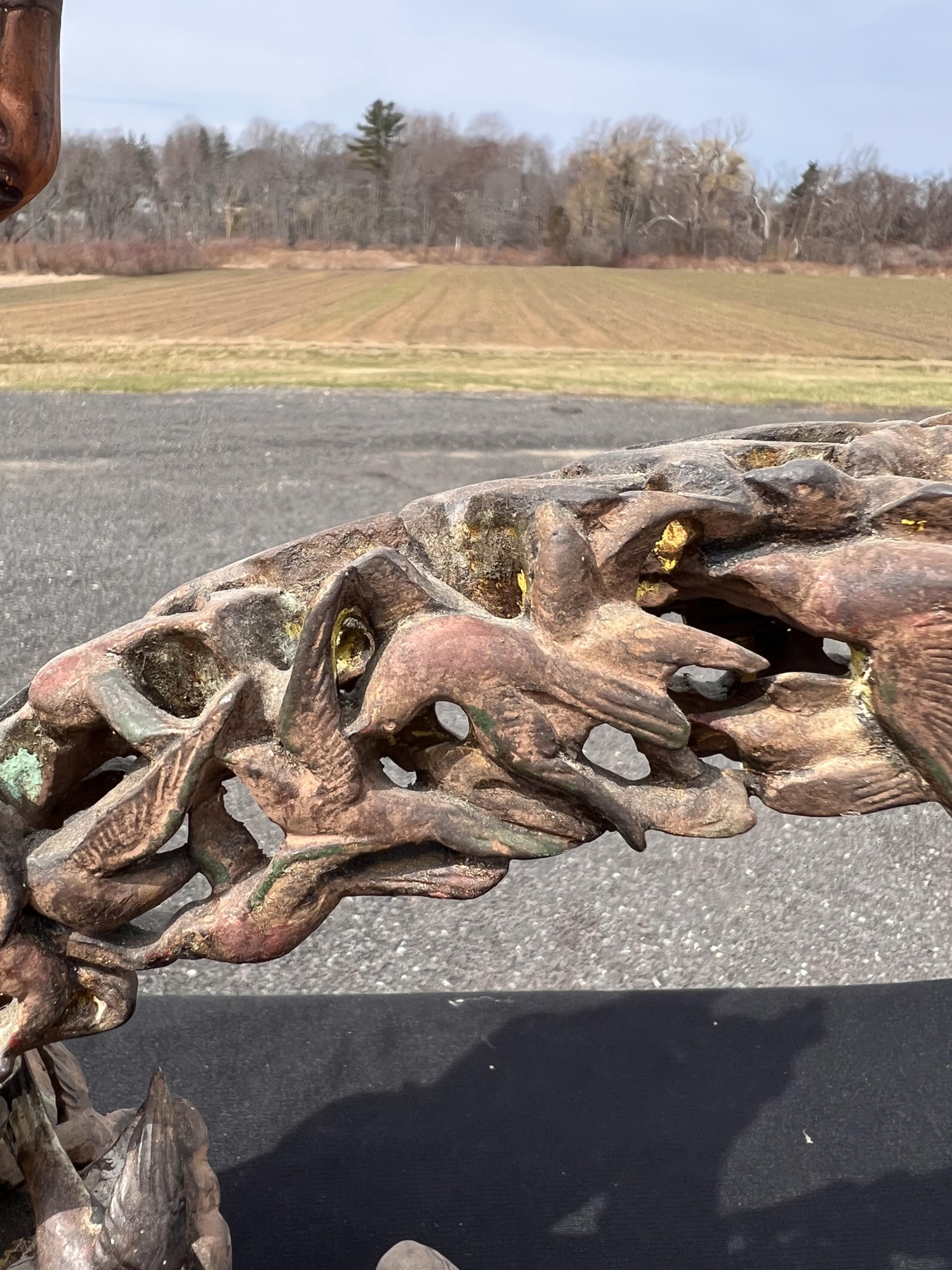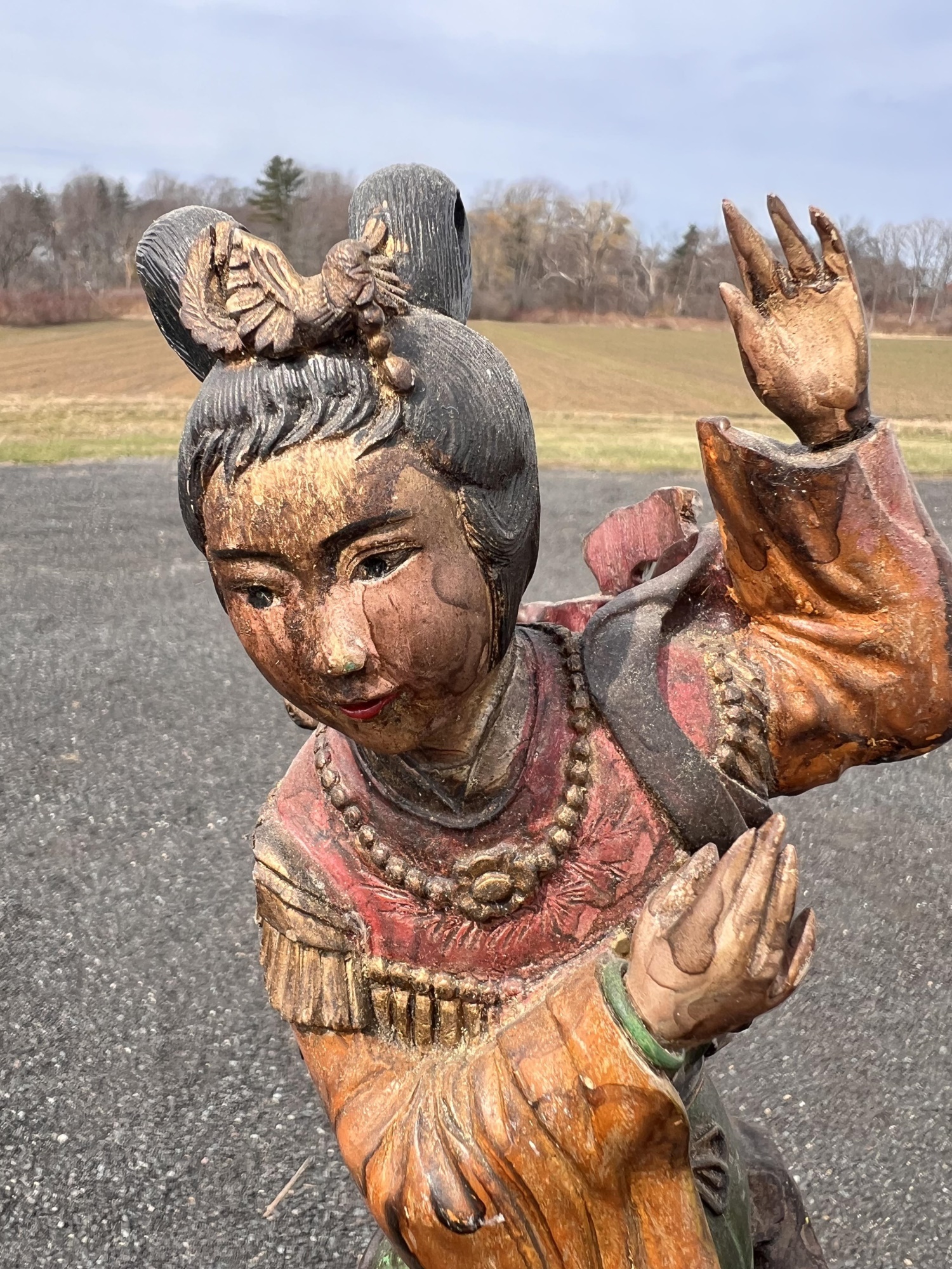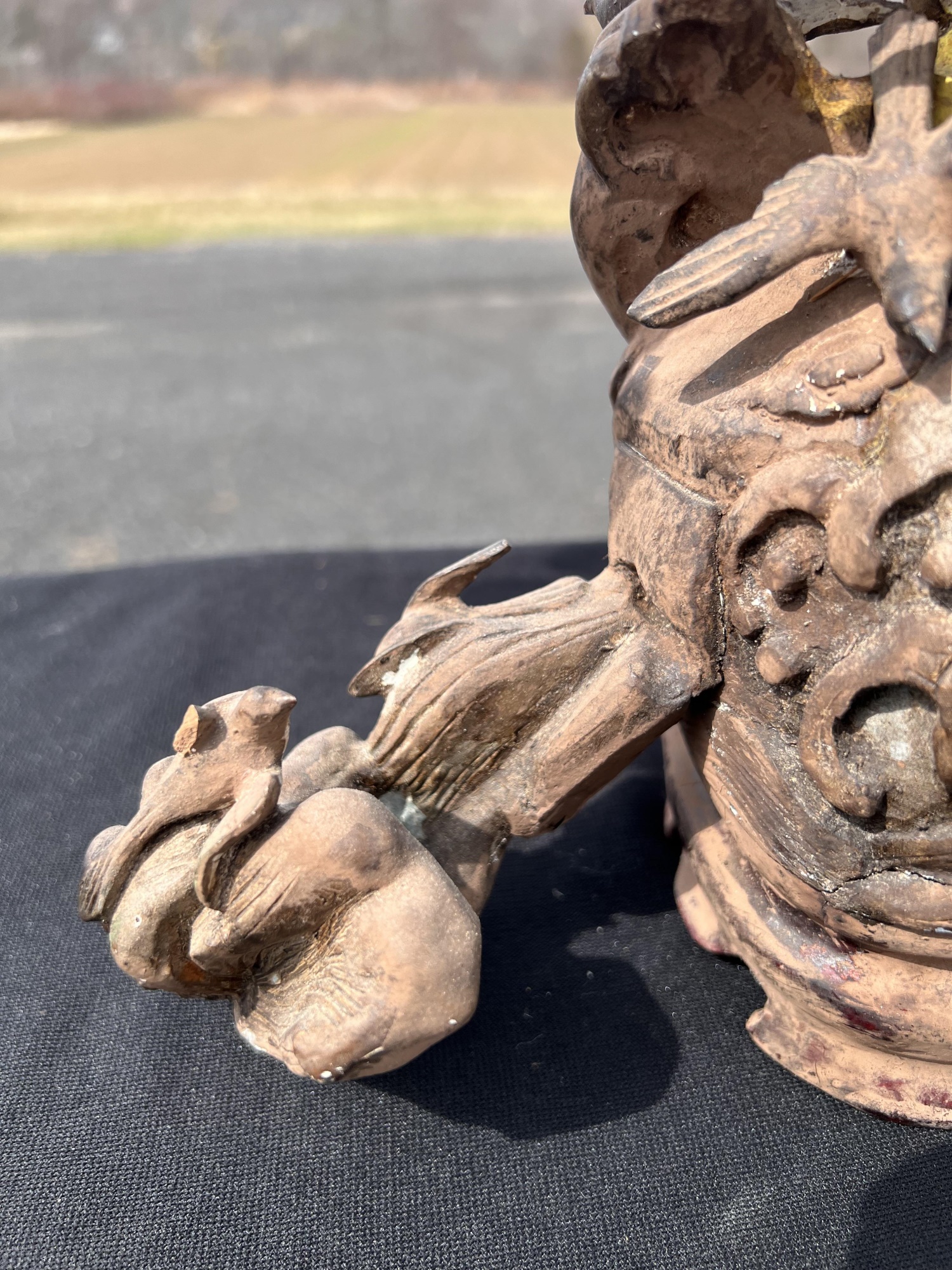 Appears to be gilt over carved and pierced exotic wood. 23 1/2" tall Condition: Scattered chips, cracks and repairs, see photos Temp No 6618