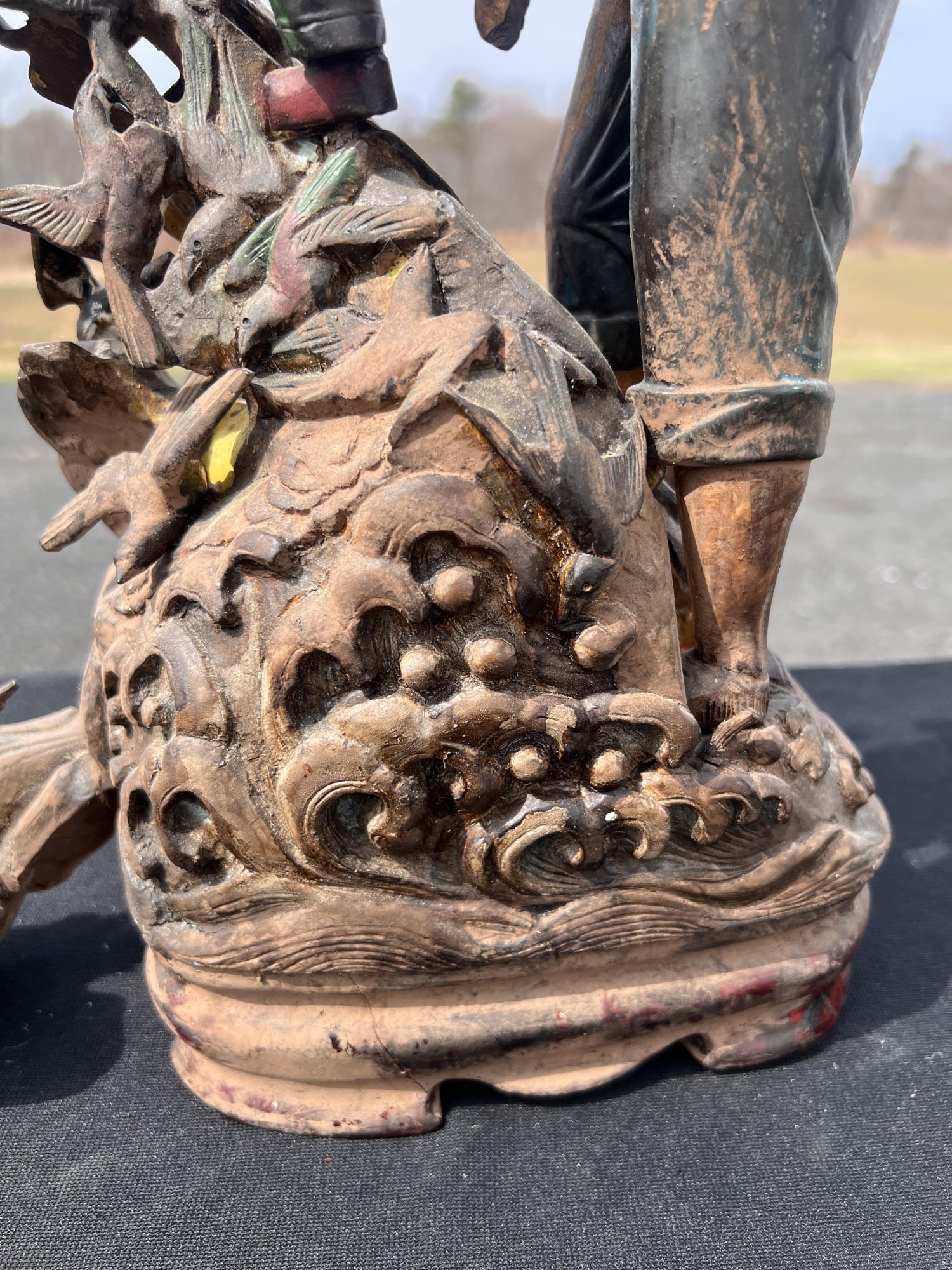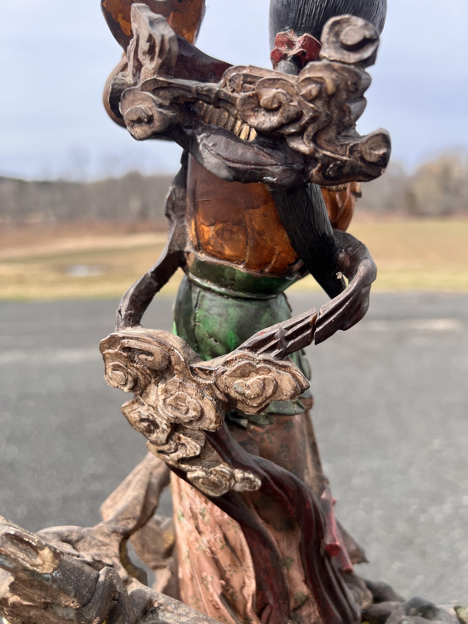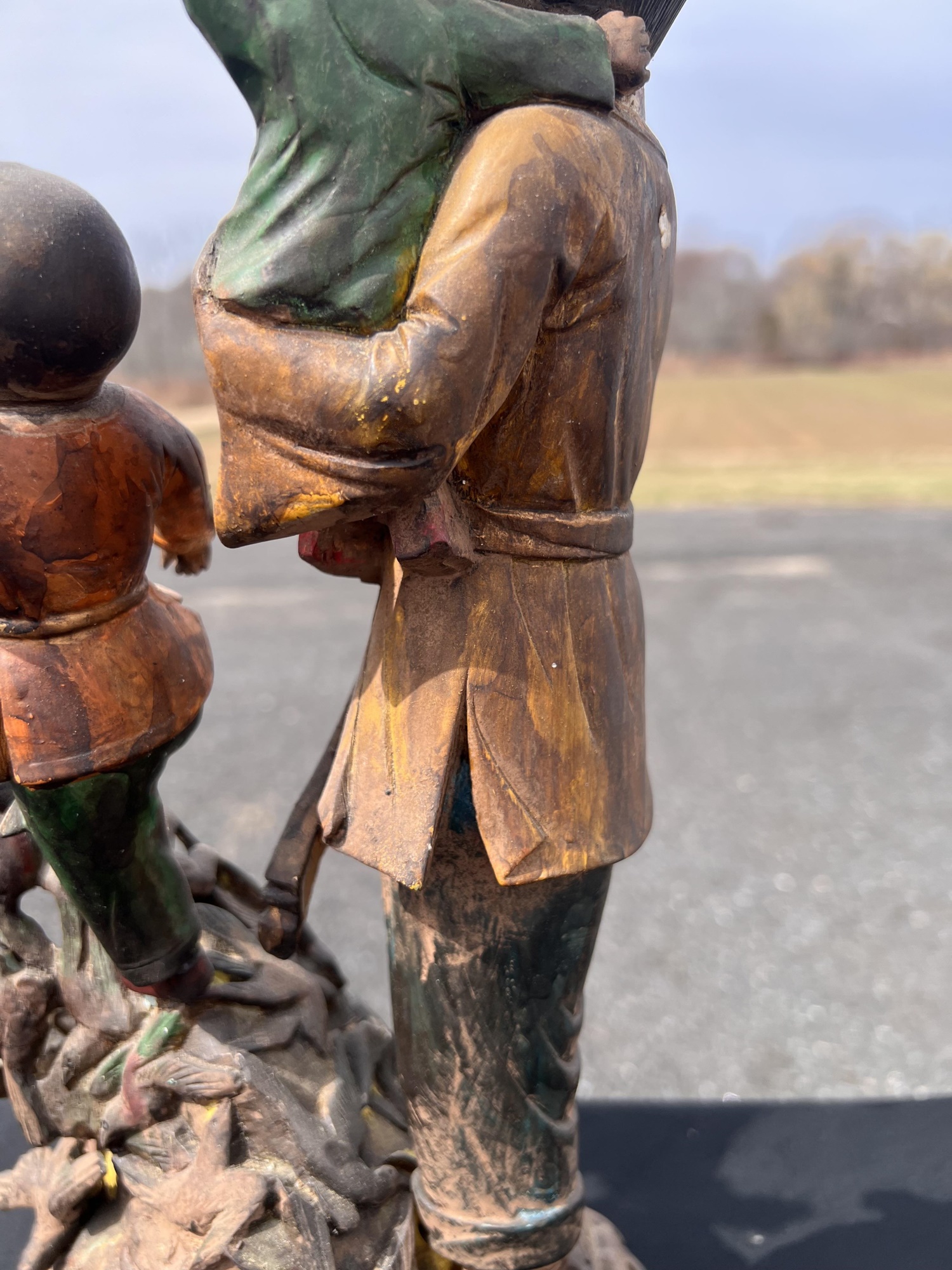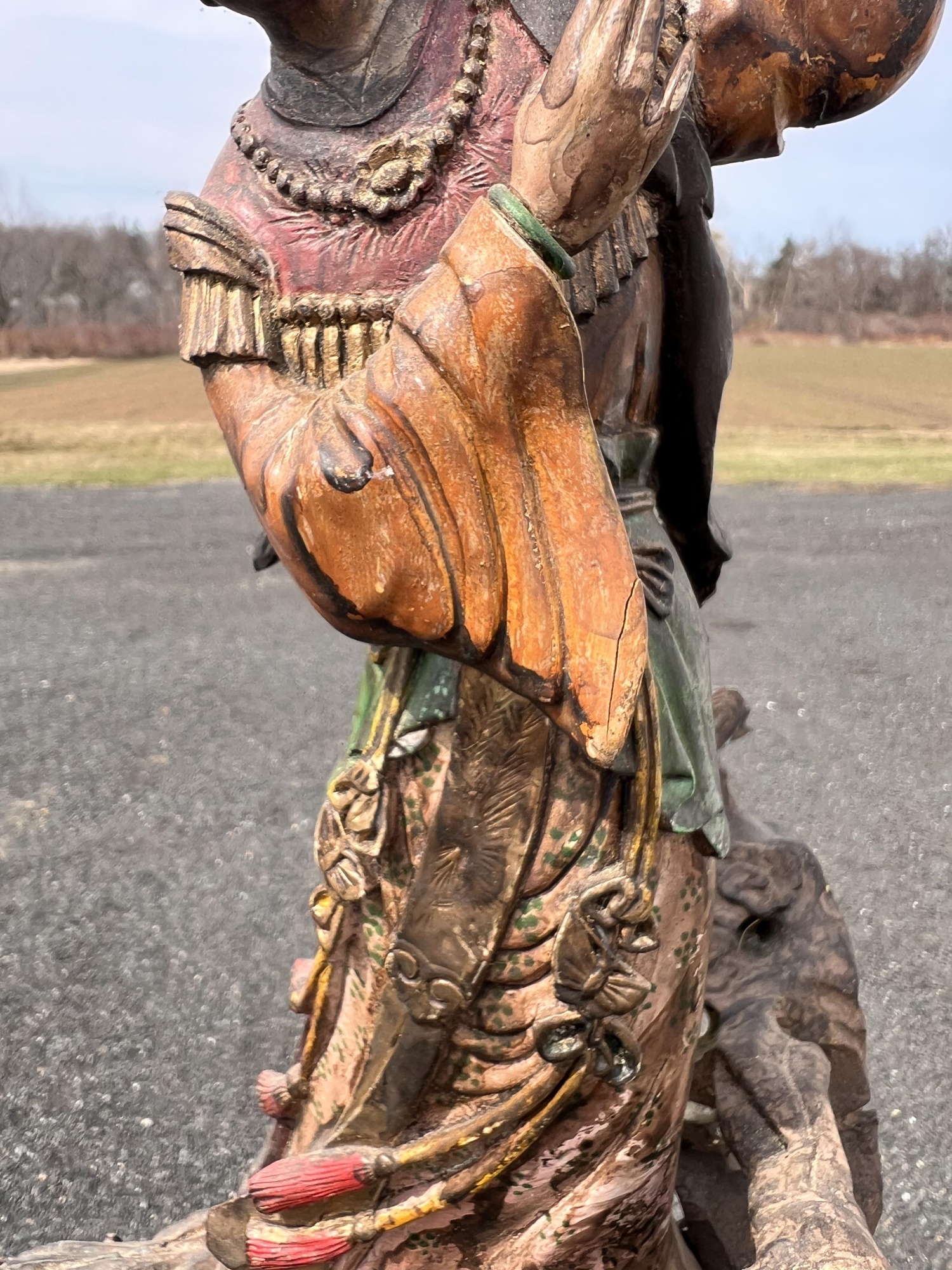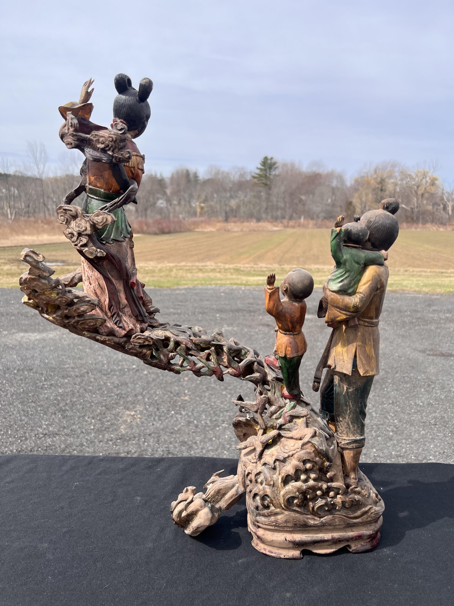 Appears to be gilt over carved and pierced exotic wood. 23 1/2" tall Condition: Scattered chips, cracks and repairs, see photos Temp No 6618