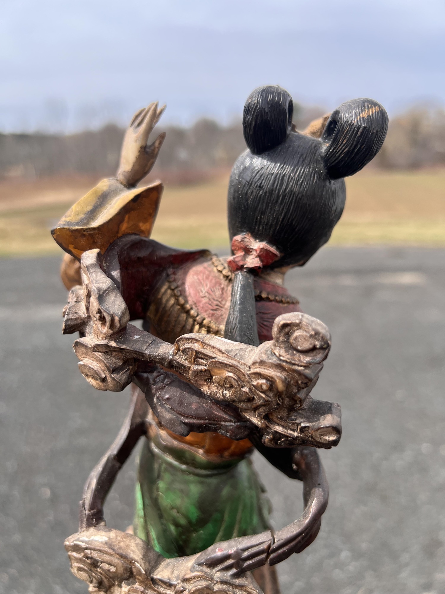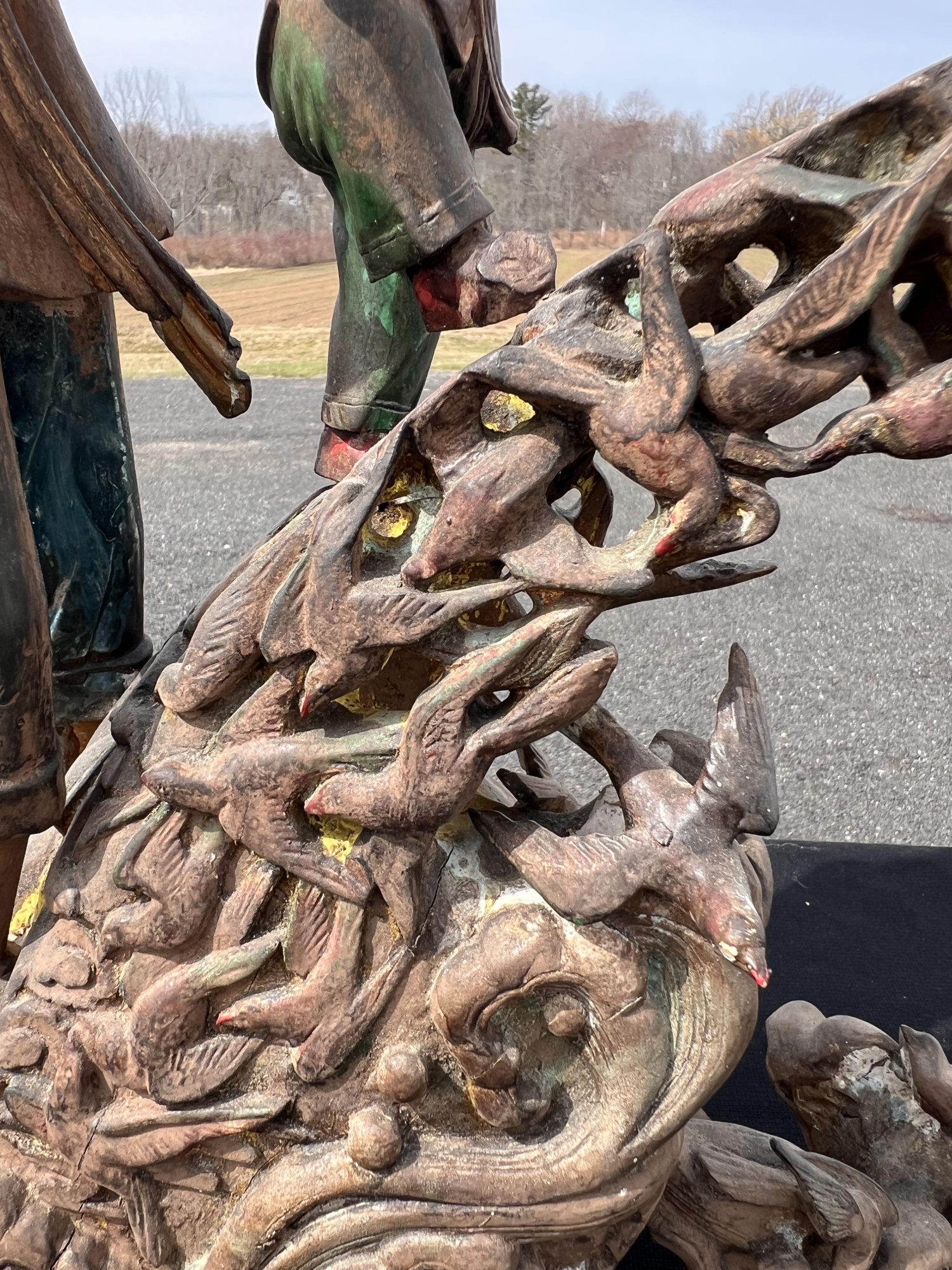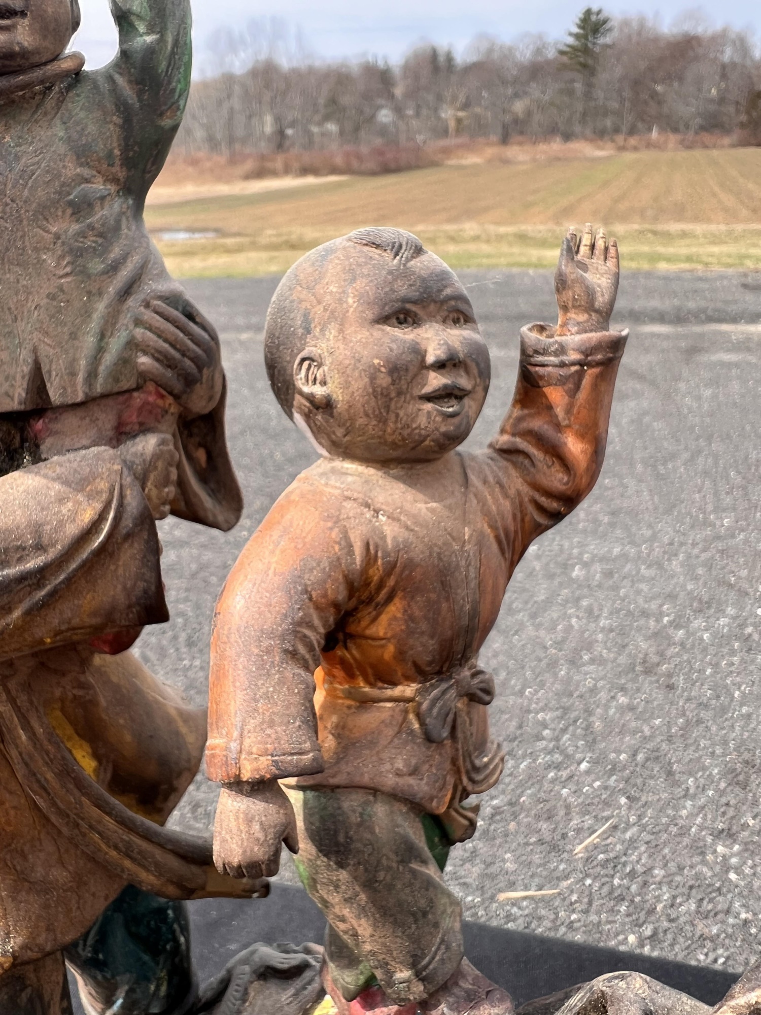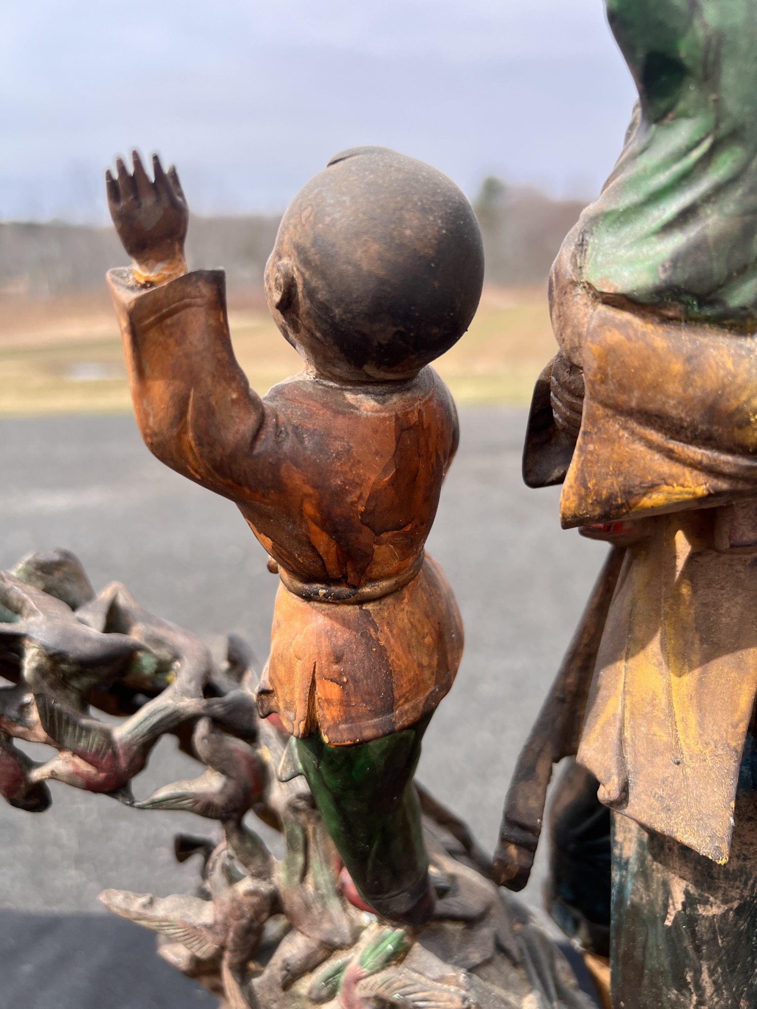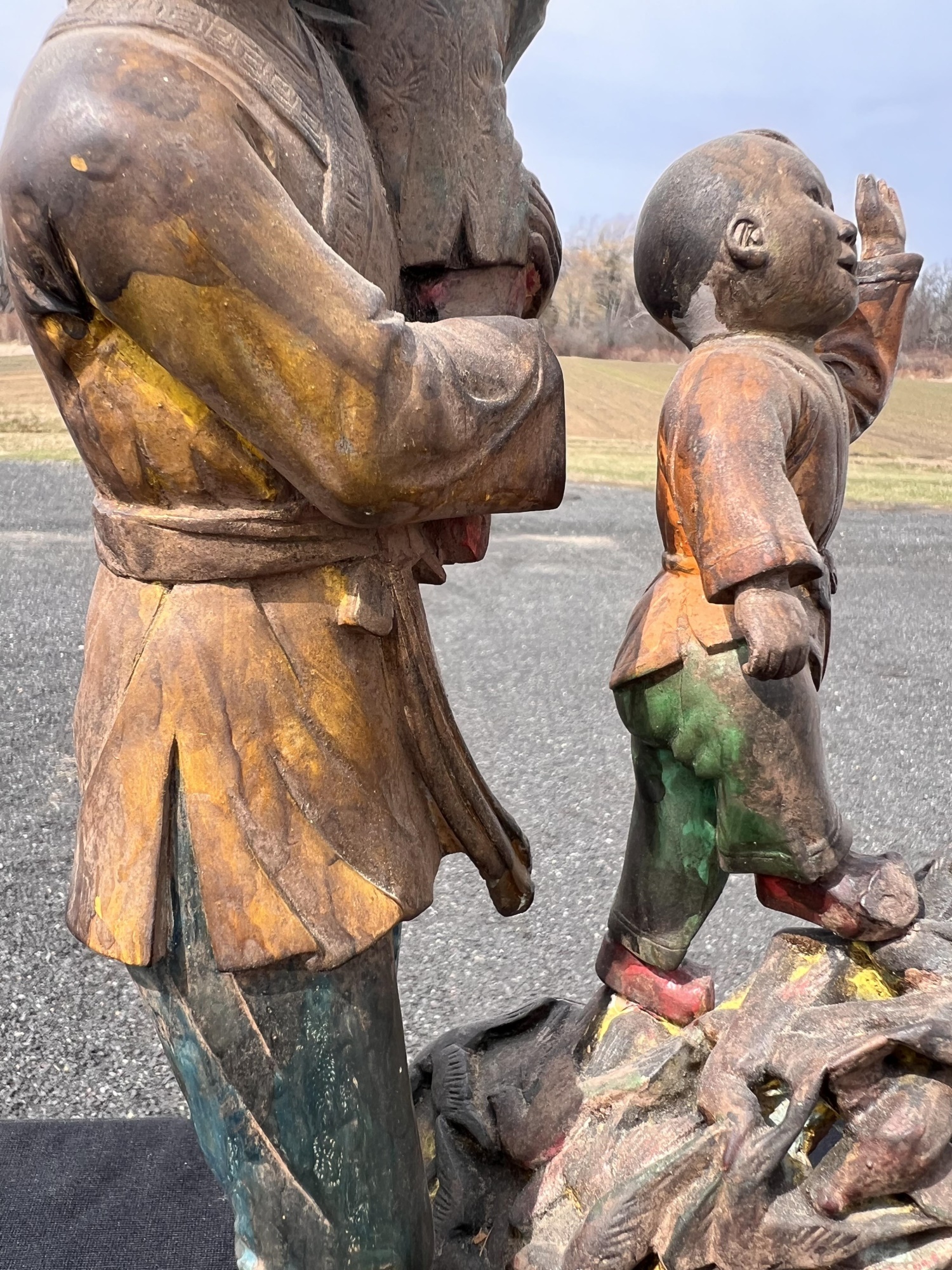 Appears to be gilt over carved and pierced exotic wood. 23 1/2" tall Condition: Scattered chips, cracks and repairs, see photos Temp No 6618