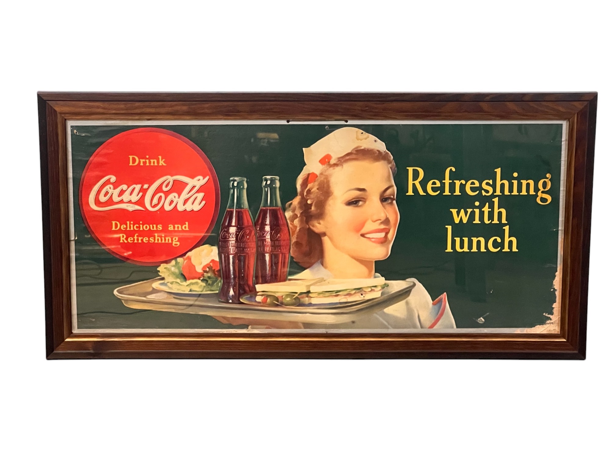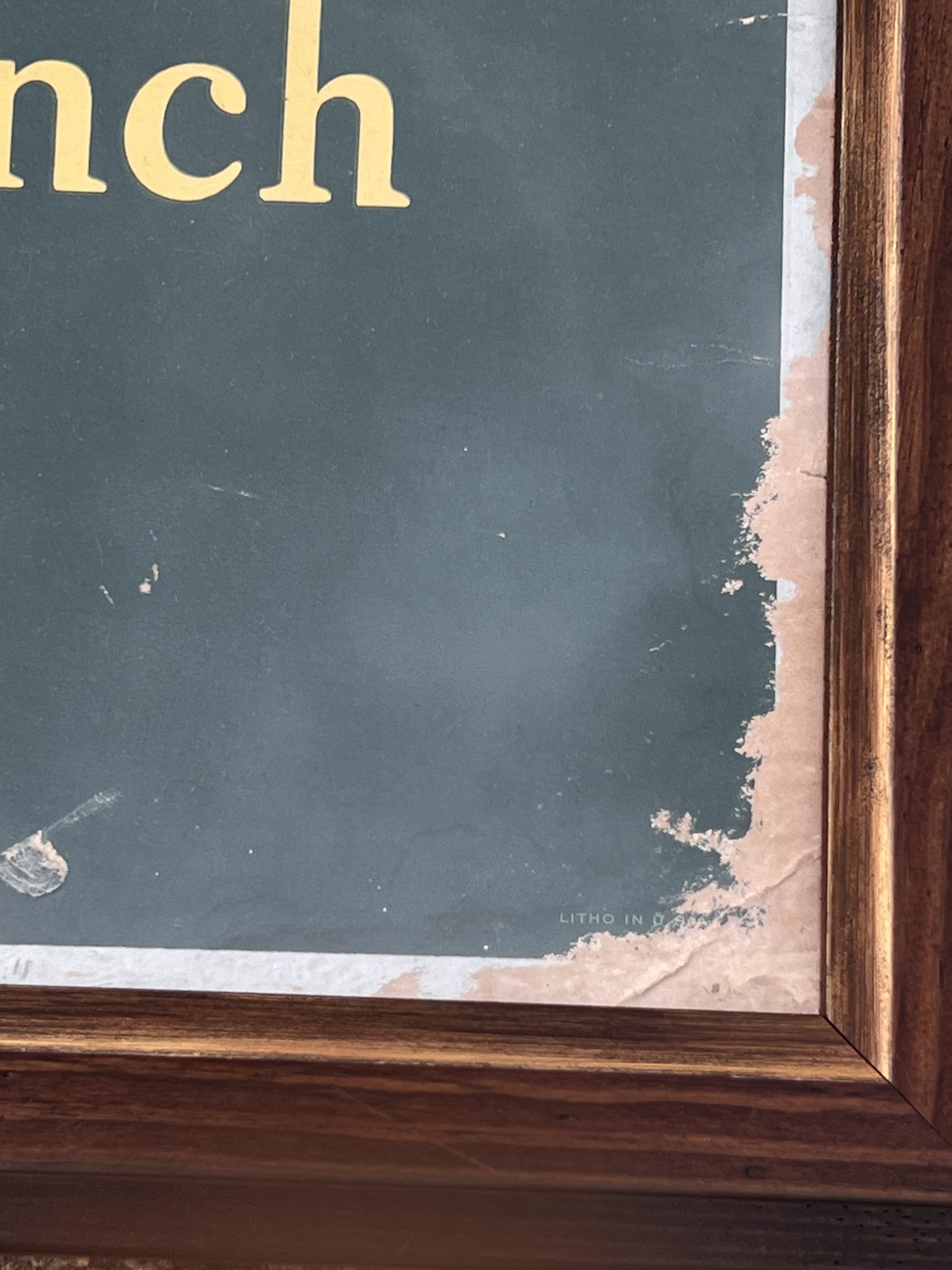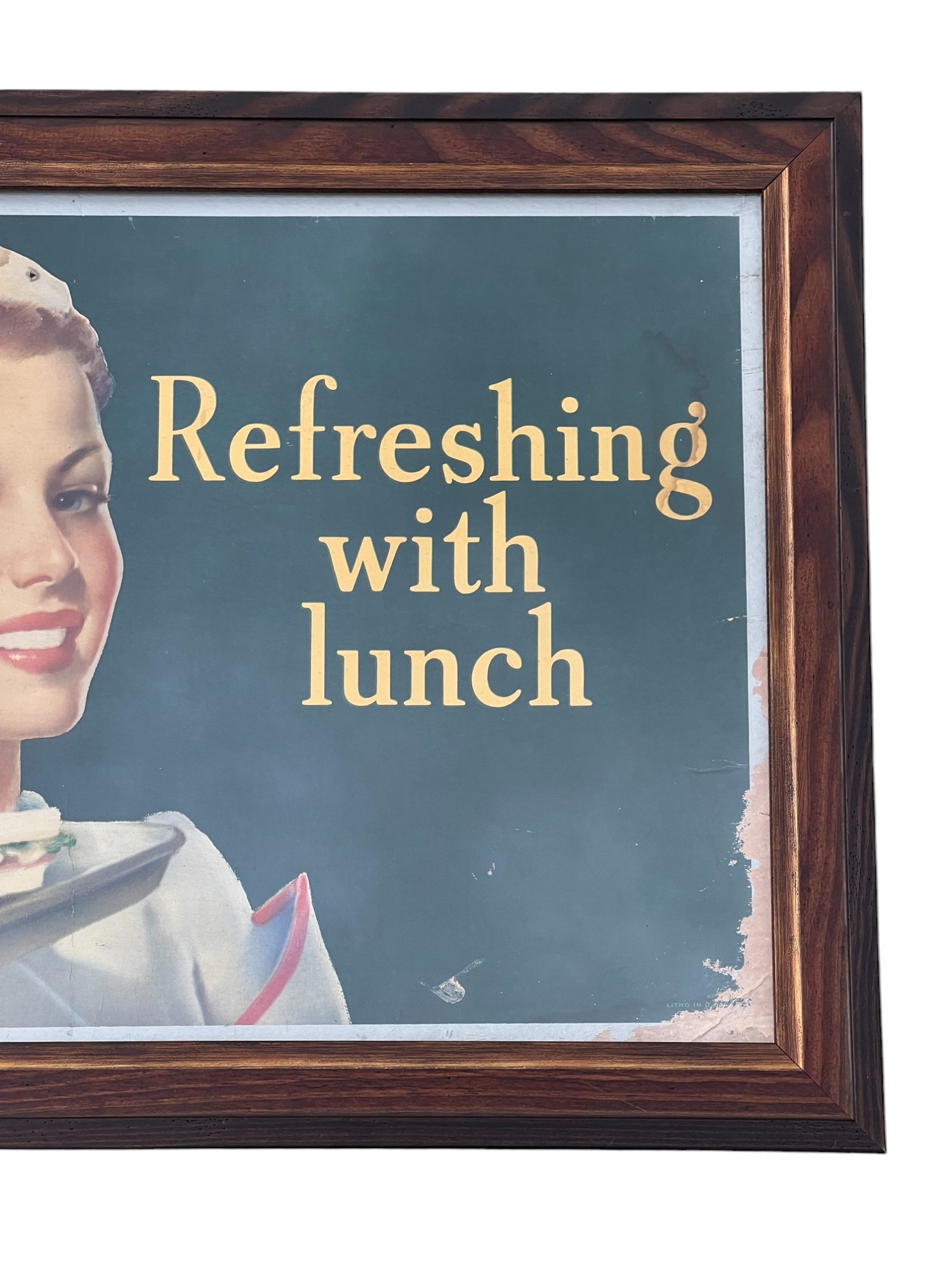Framed 1940 lithograph on poster board. 17" x 34 1/4" framed Condition: Loses to litho, scattered holes Temp No 6777
