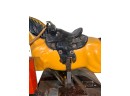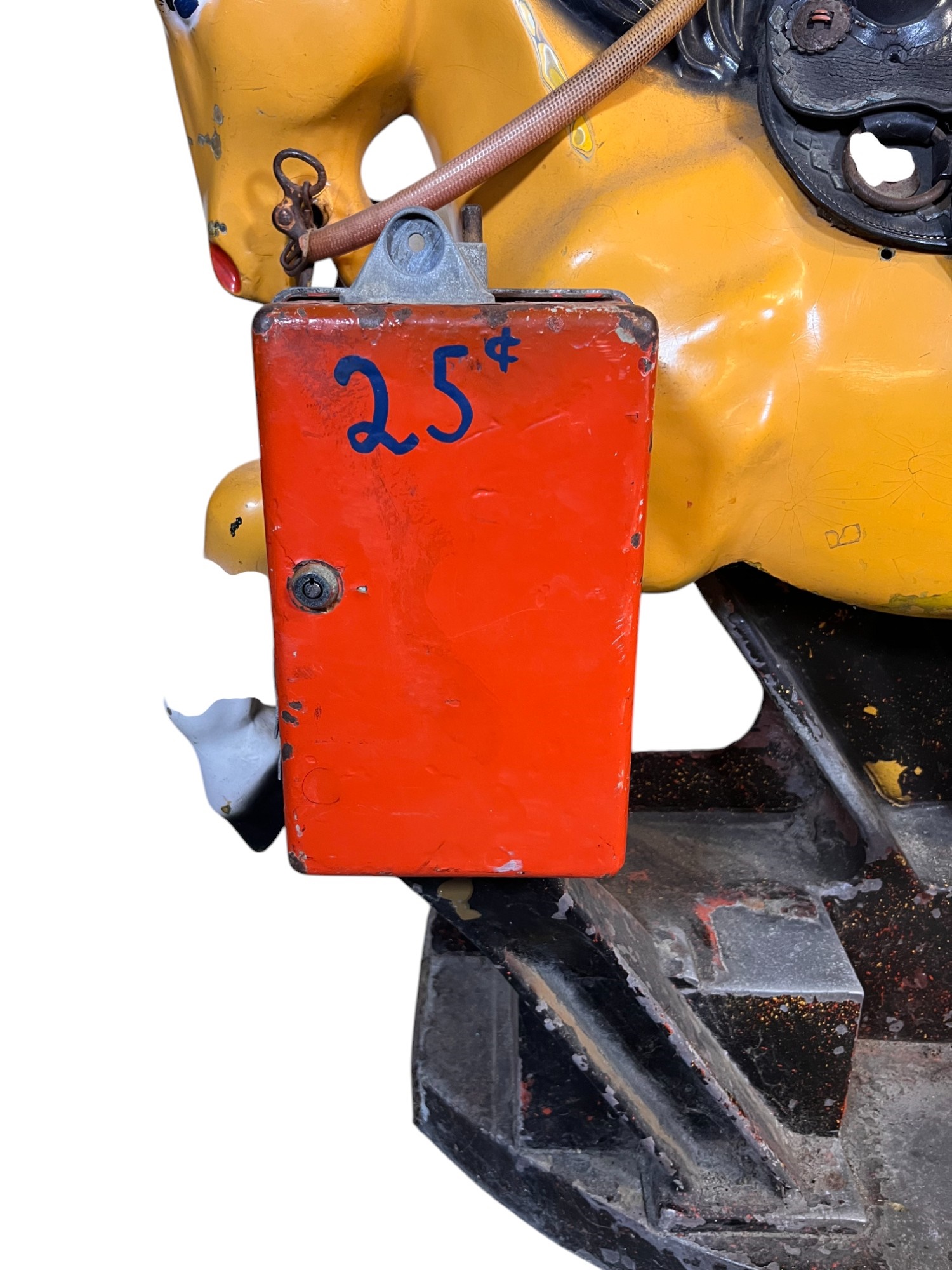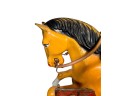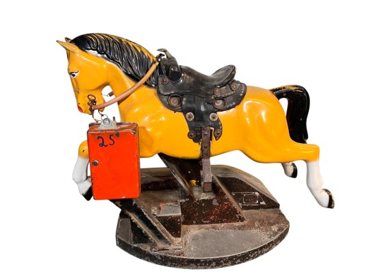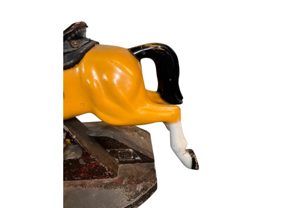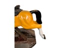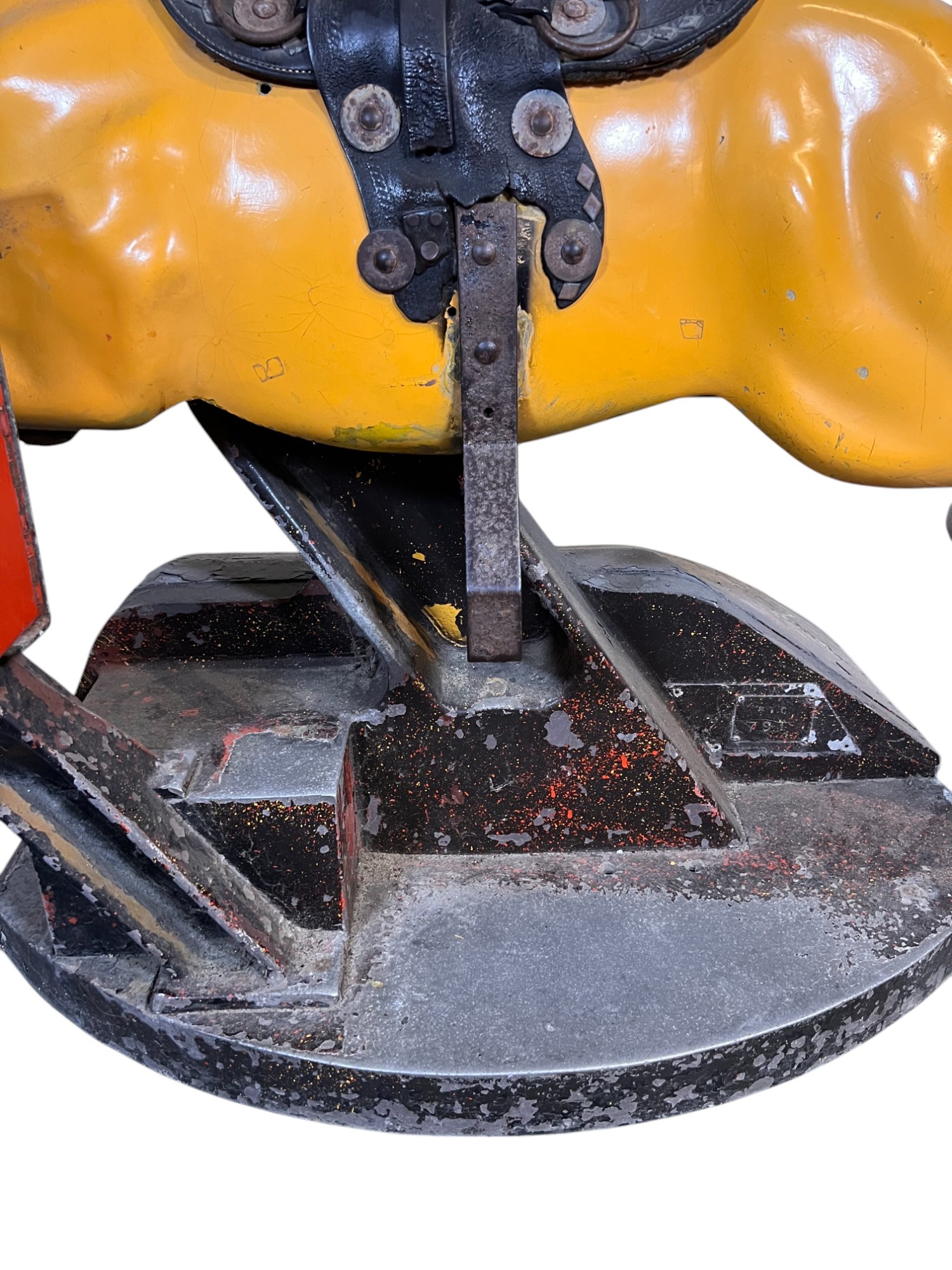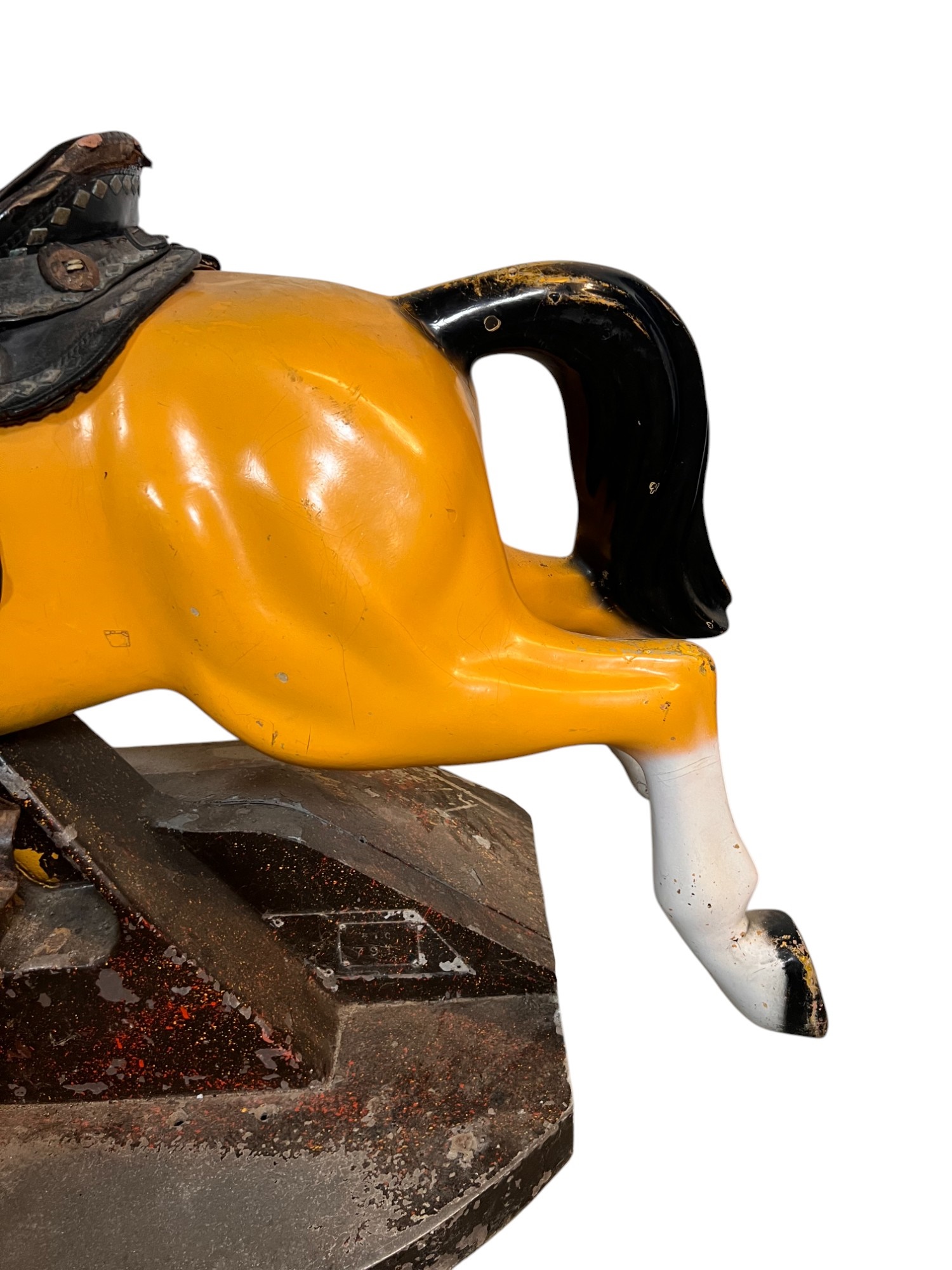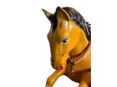 Mid century vintage fiberglass body with original leather saddle. Approx 50" long Condition: Scattered wear to surface and paint. Temp No 6764