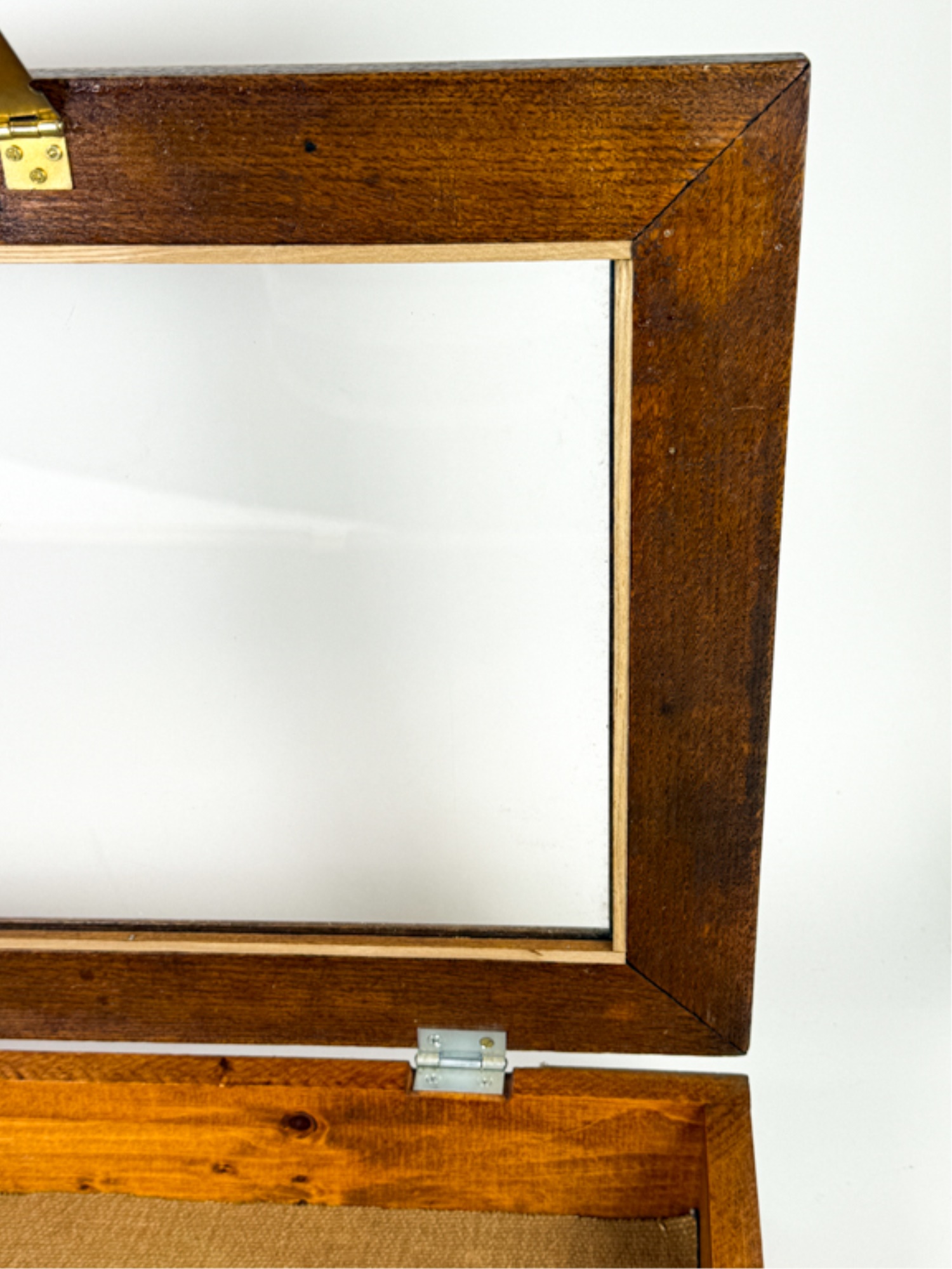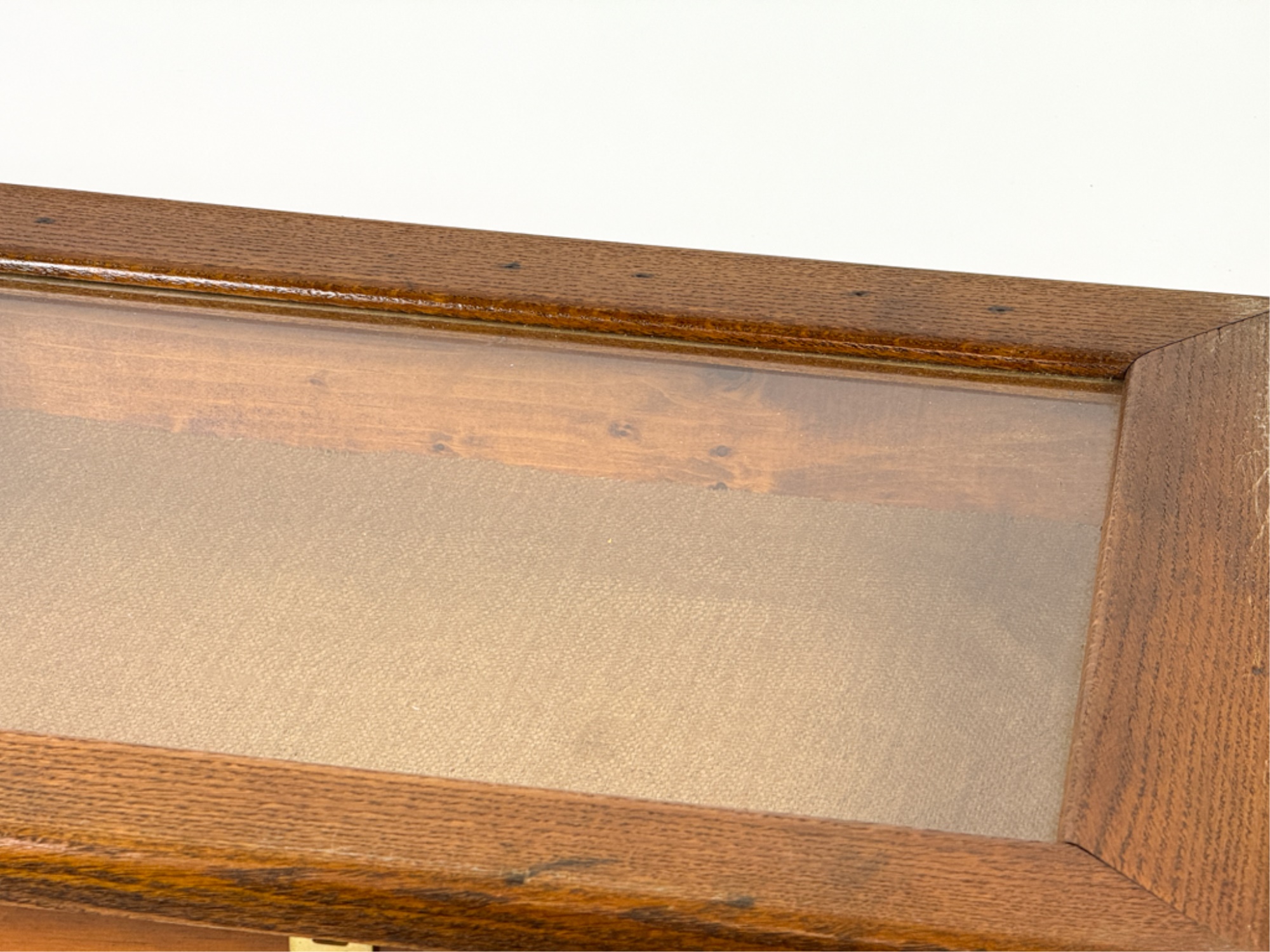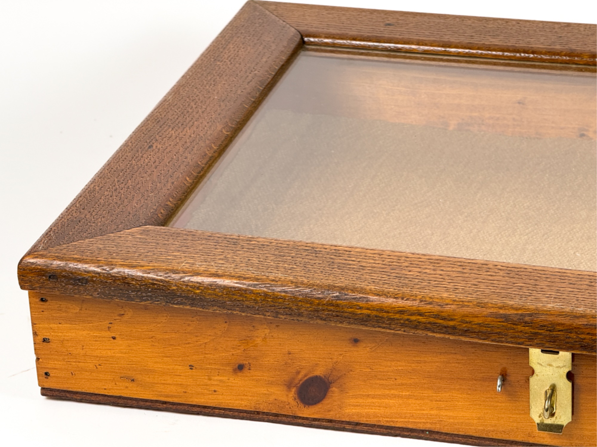 With glass top and locking mechanism. 4 x 21 x 16 inches. Condition: Good. Temp No 4240