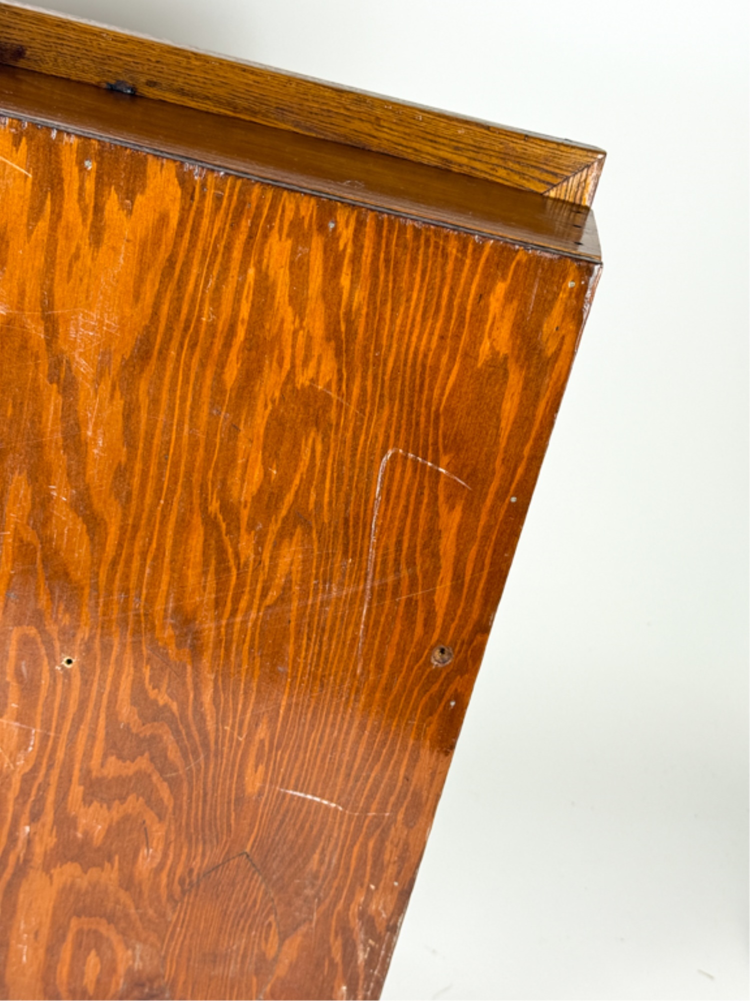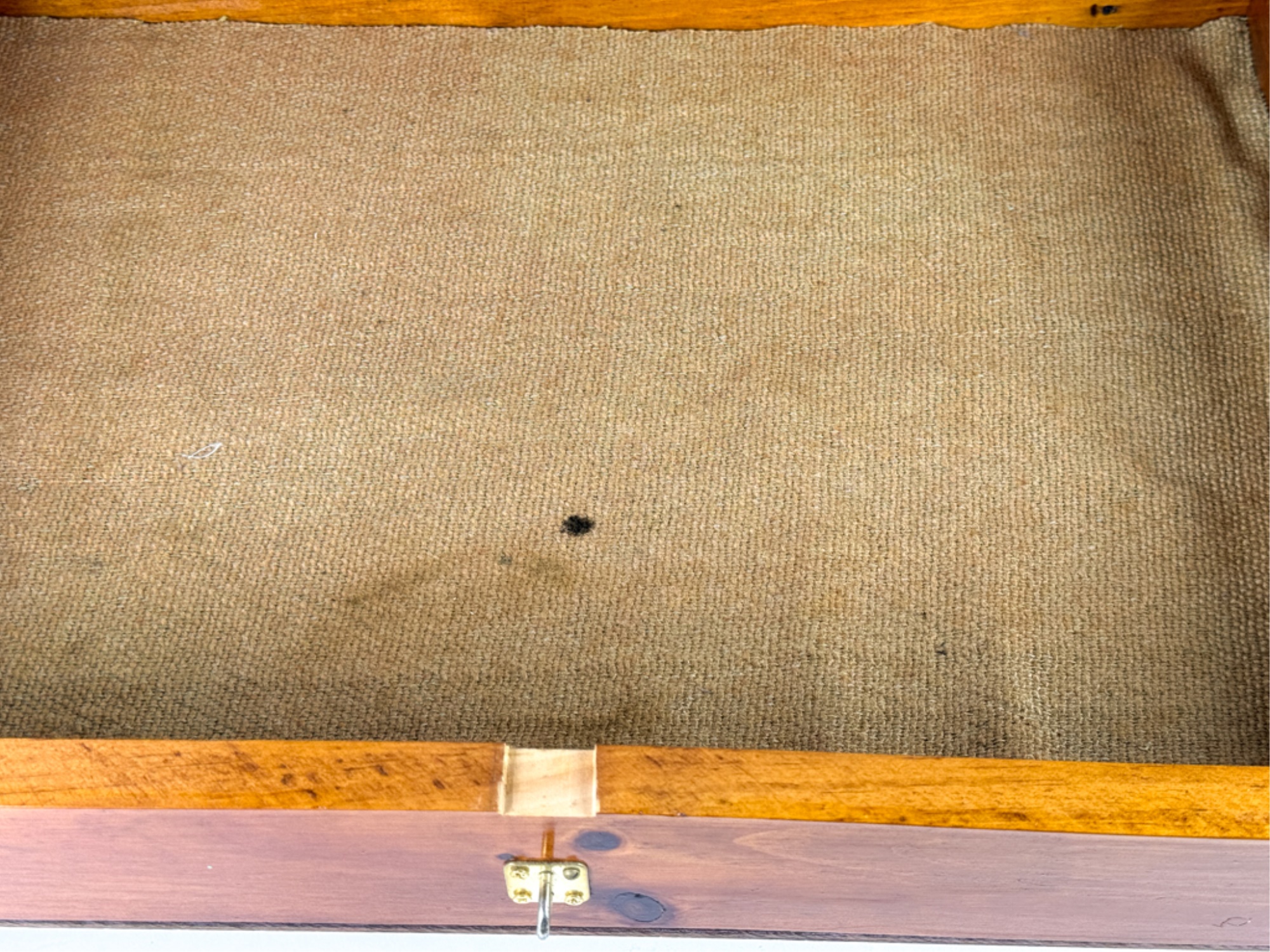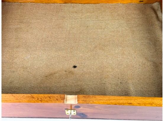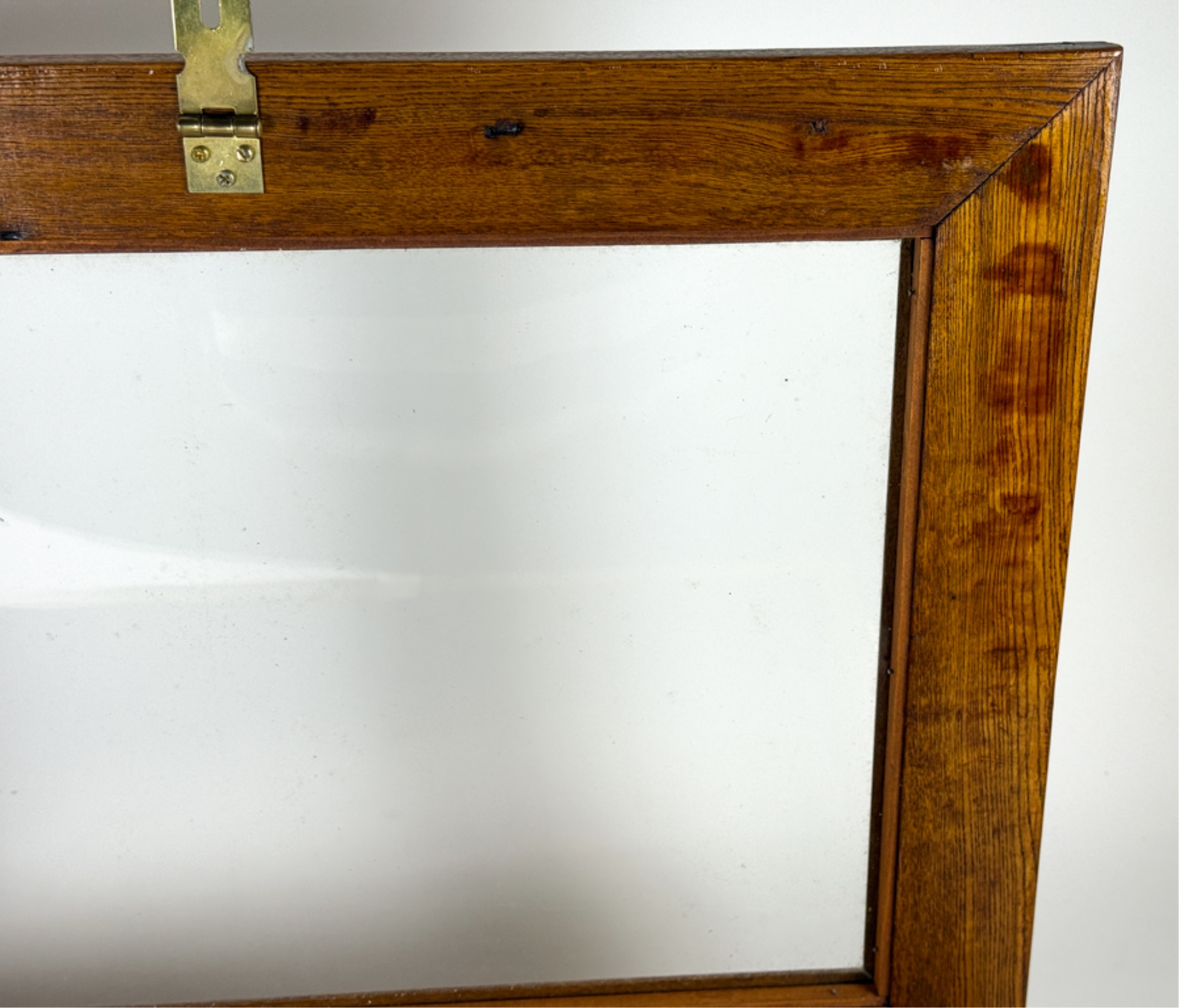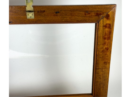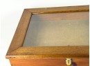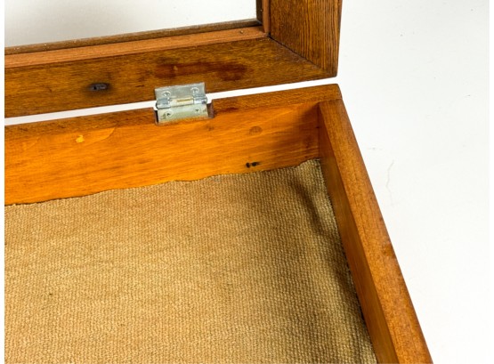 With glass top and locking mechanism. 4 x 21 x 16 inches. Condition: Good. Temp No 4241