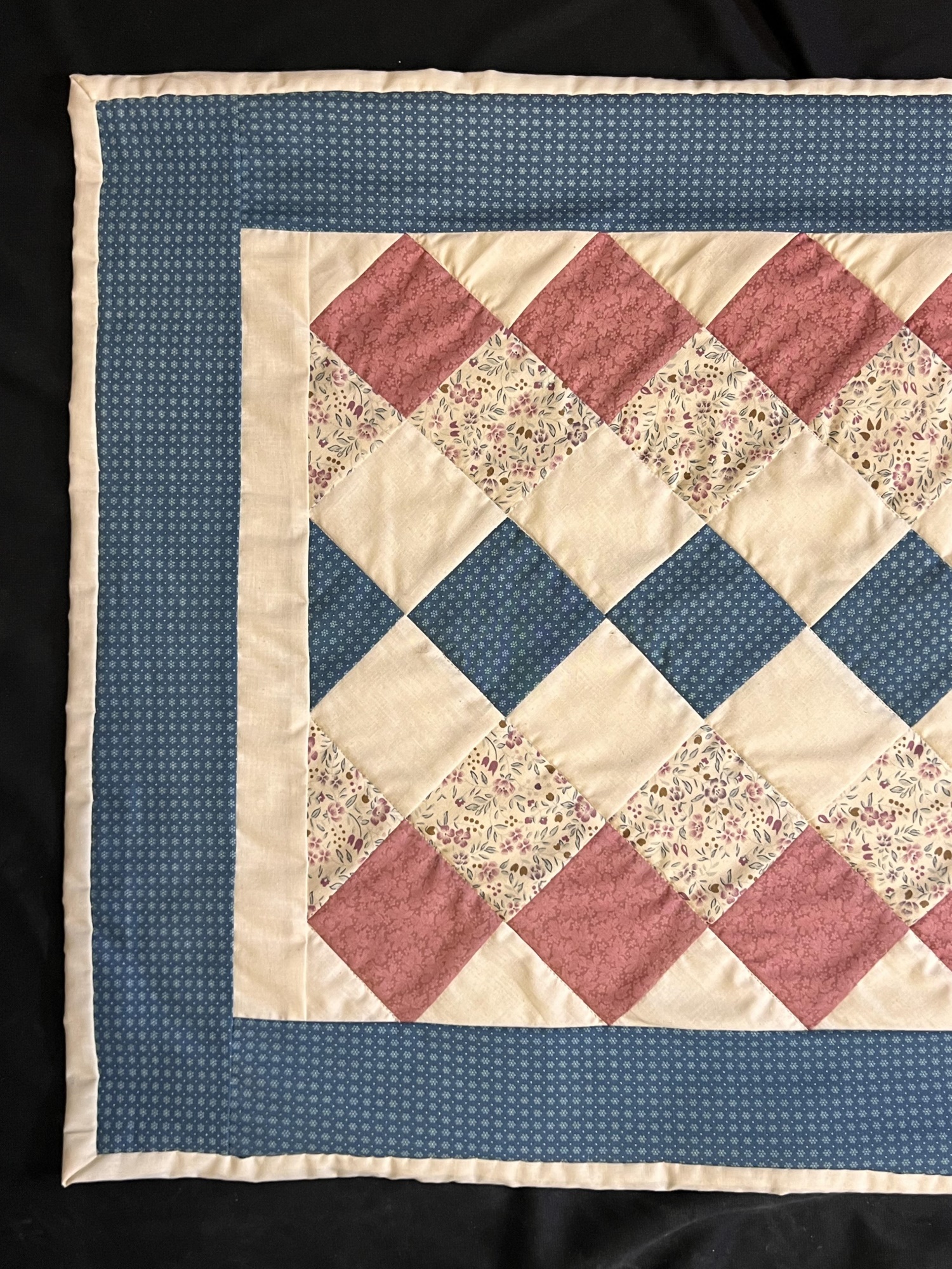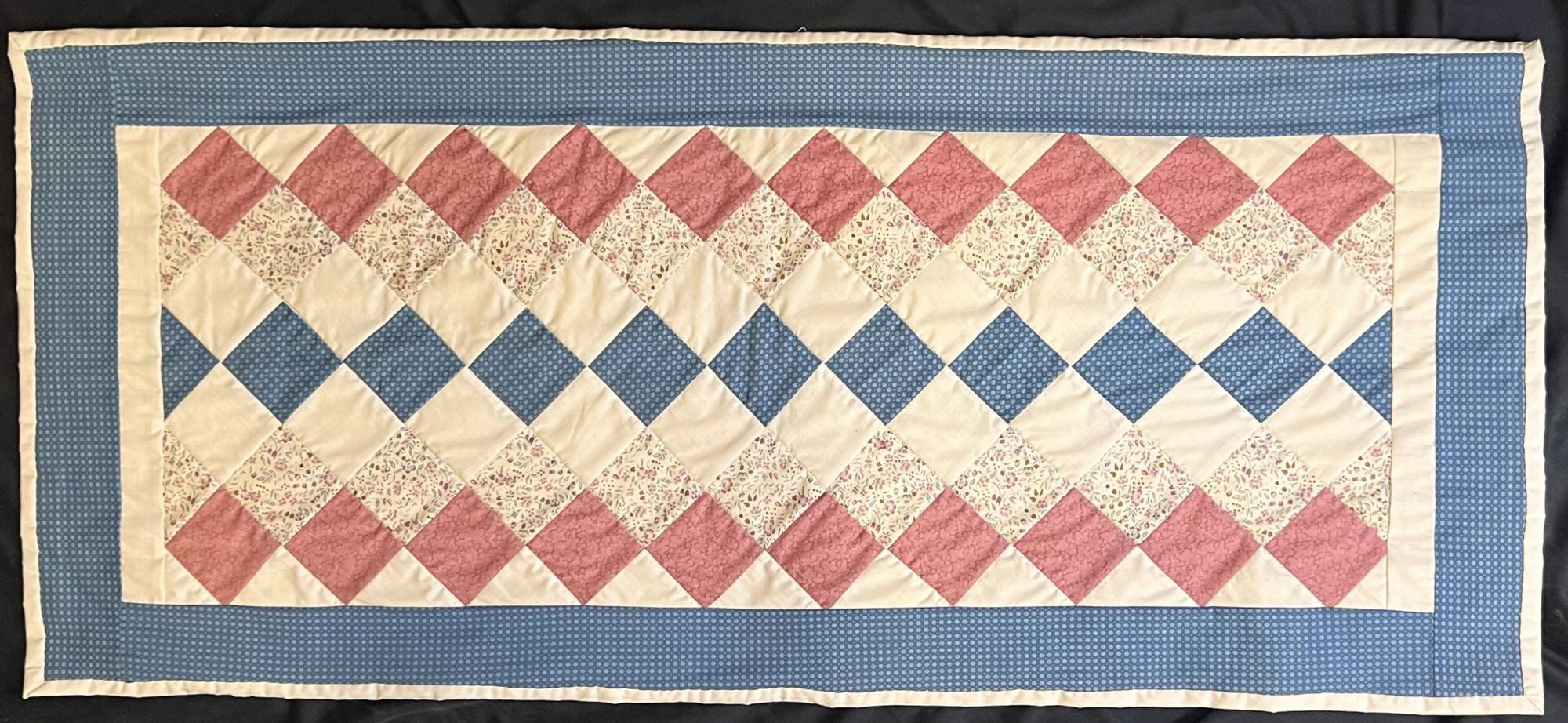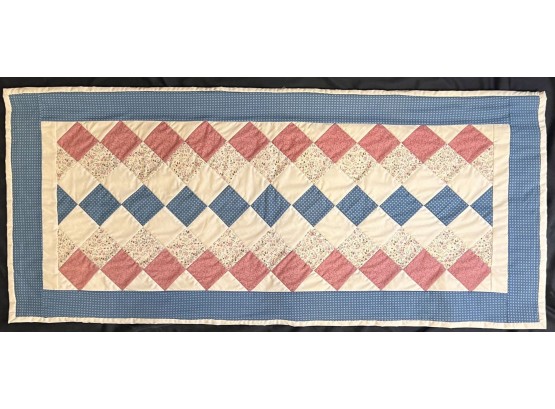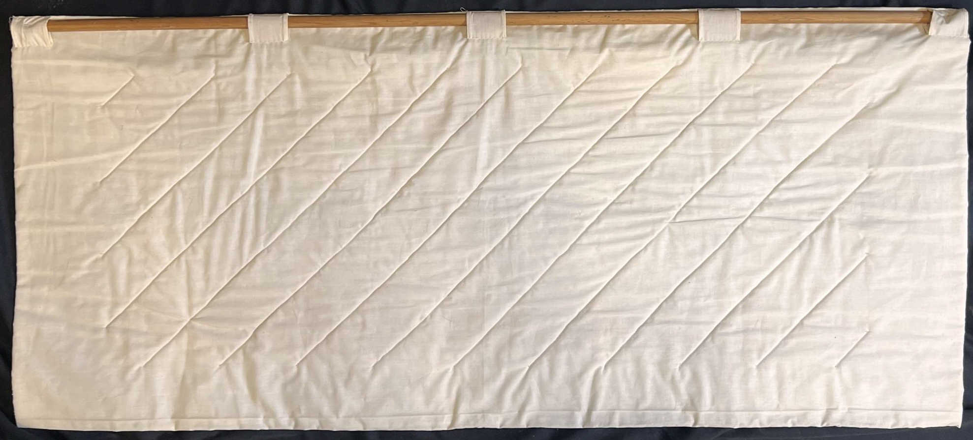 Mounted for hanging with a wooden dowel. 22" x 49 1/2" Condition: Good