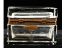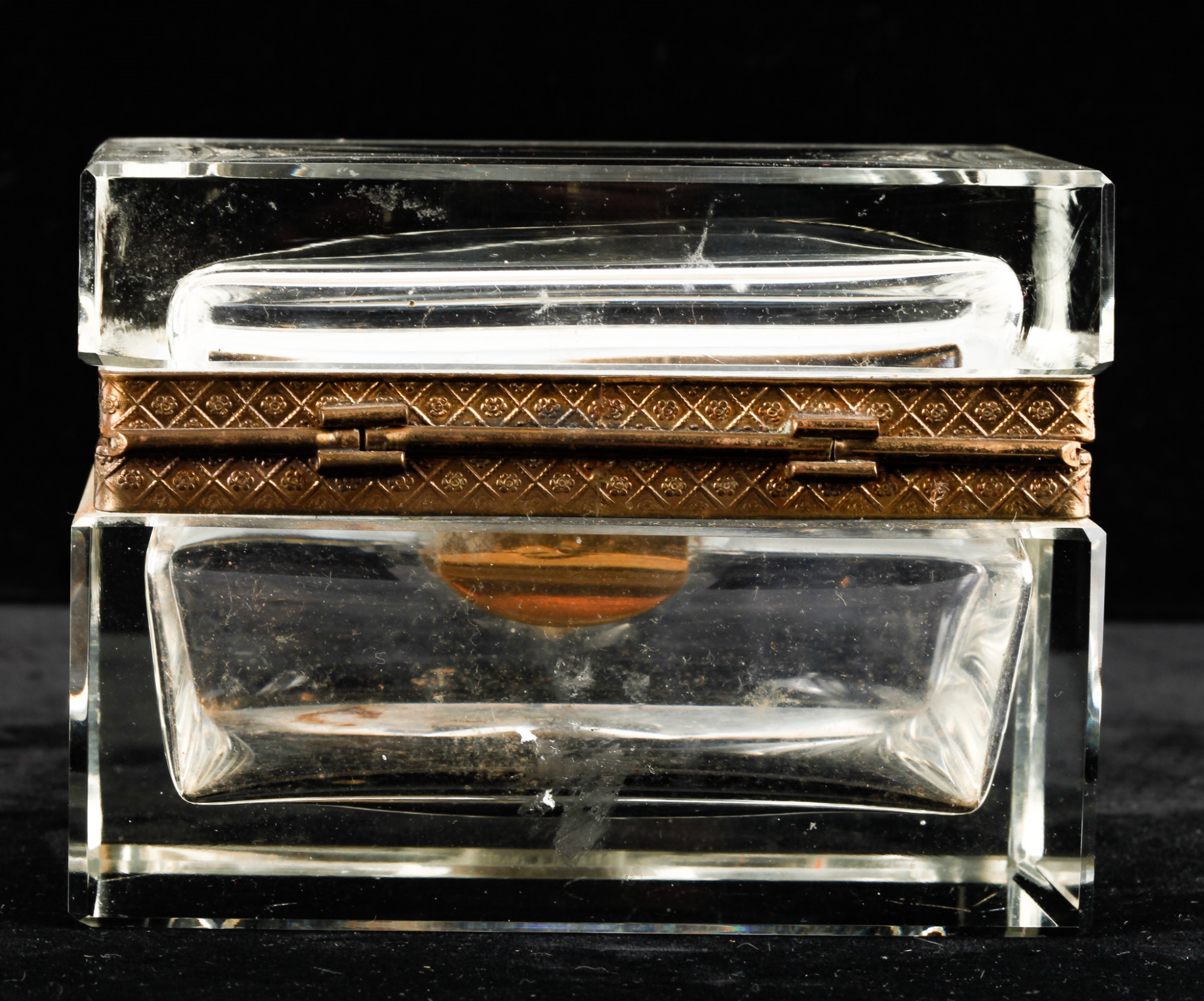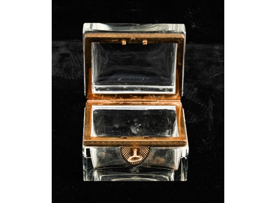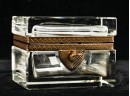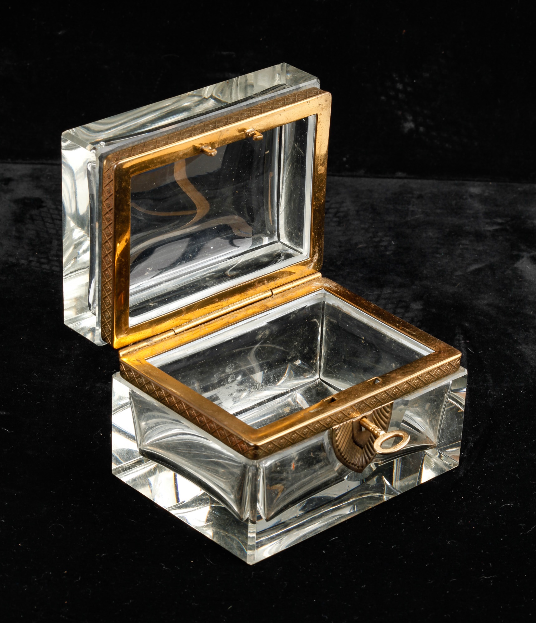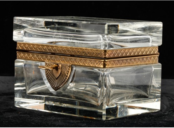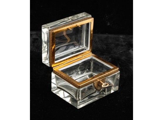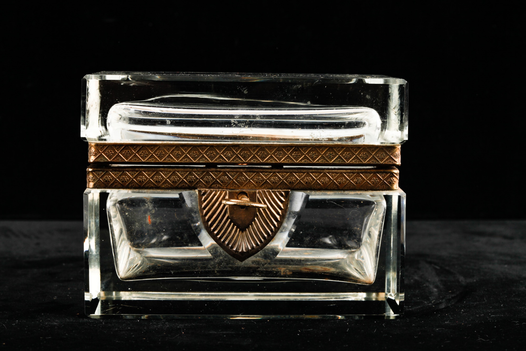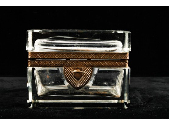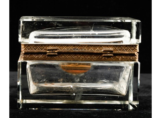 With lock and key. Unsigned. 3 1/2" x 4 3/4" x 3 1/2". Heavy