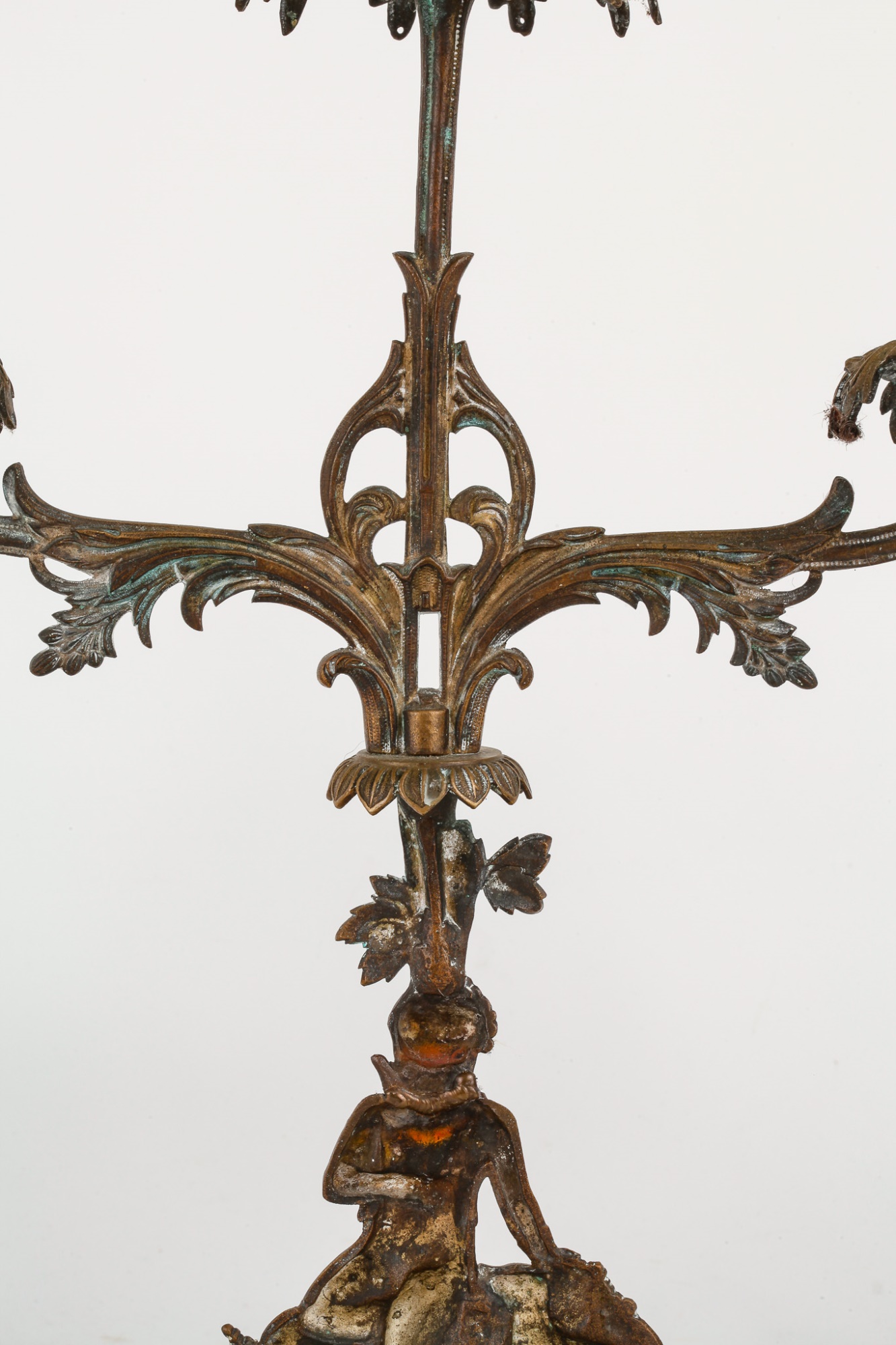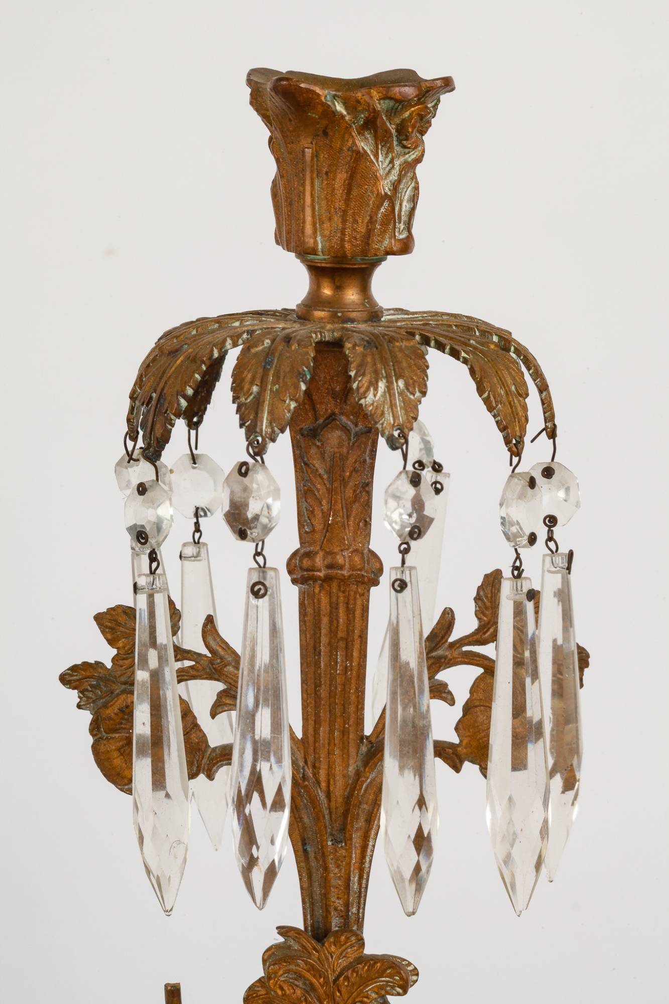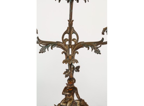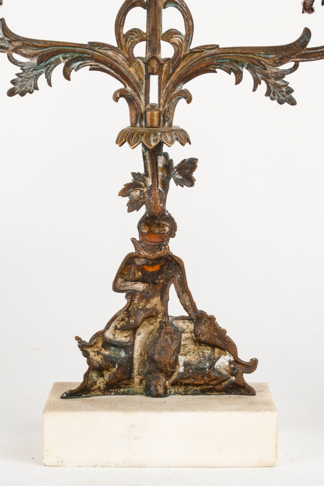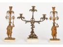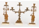 Brass/bronze Native American standing outside pair with a boy and his dog. All on marble. Some prisms present, not all. Center 18" x 15" x 4"