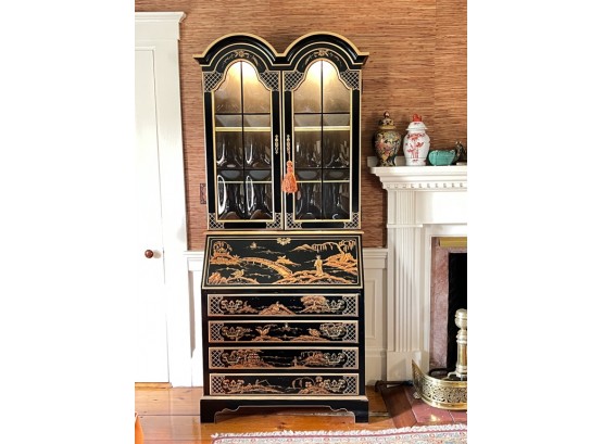 Bookcase top over slant front, (4) drawer base. 79 x 34 3/4 x 15 1/2 inches. Condition: Good. Pull on slant front loose.