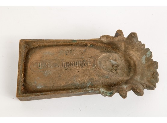 From USS Argonne. Marked on reverse. 1 3/4" x 3 1/2" x 6 1/2"