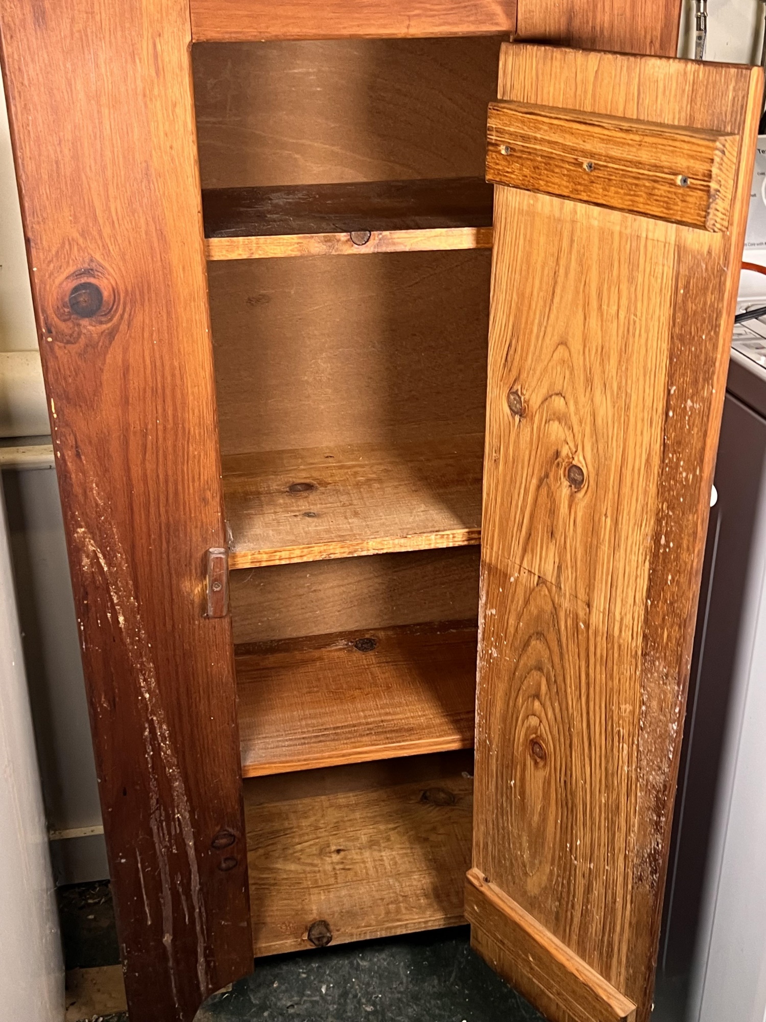 With four shelves, 51 x 27 x 13 inches Condition: Wear consistent with age and use, see photos