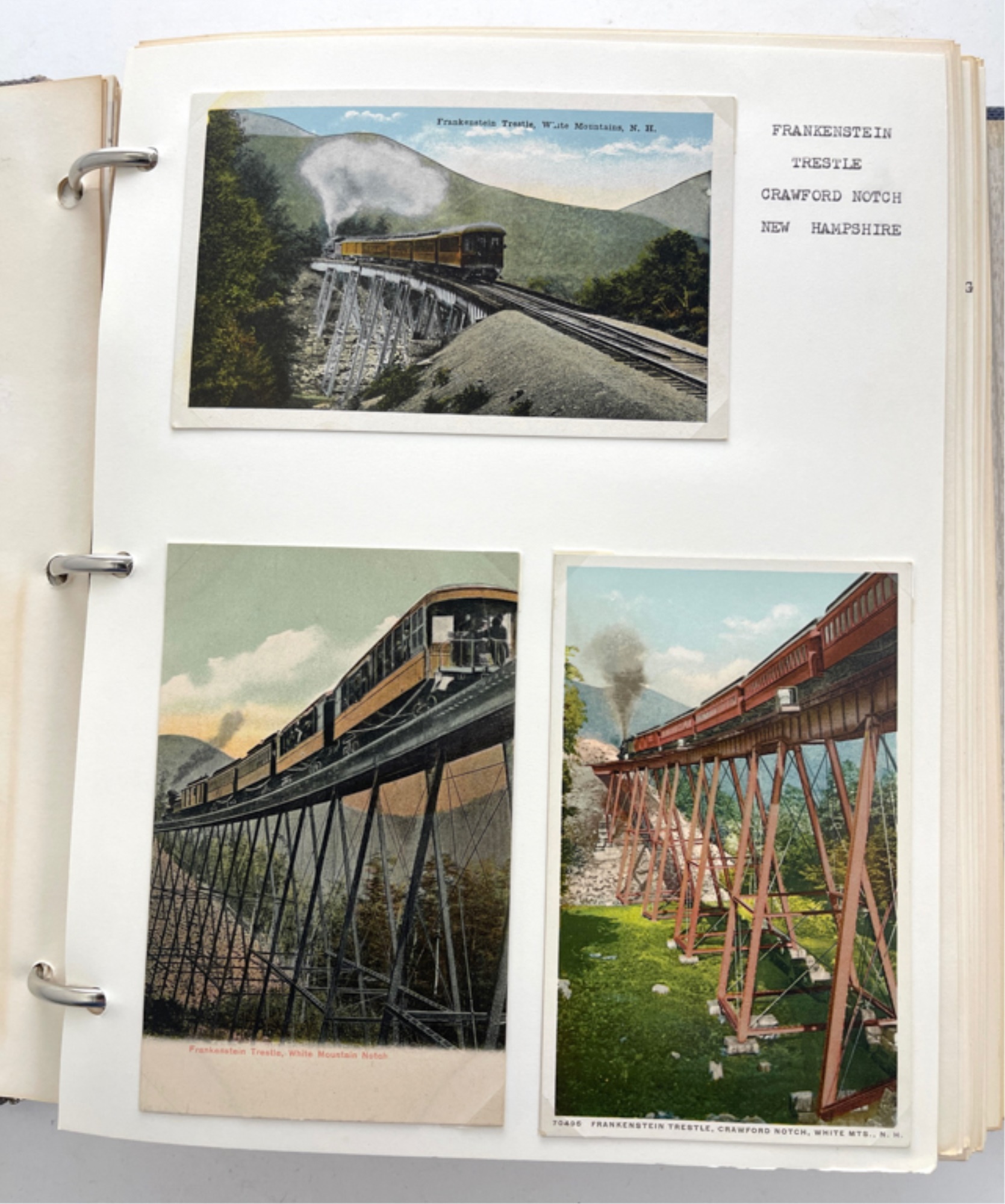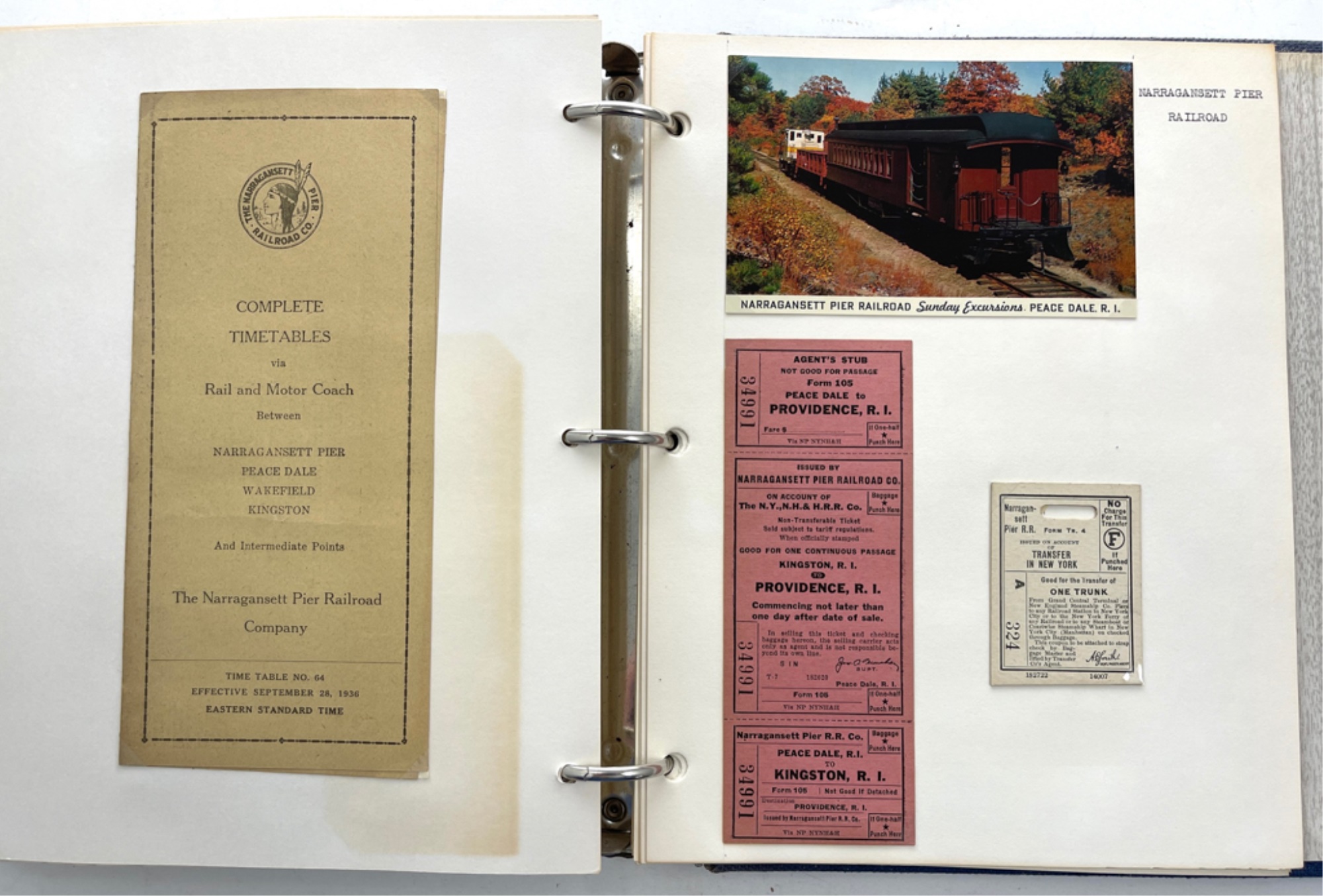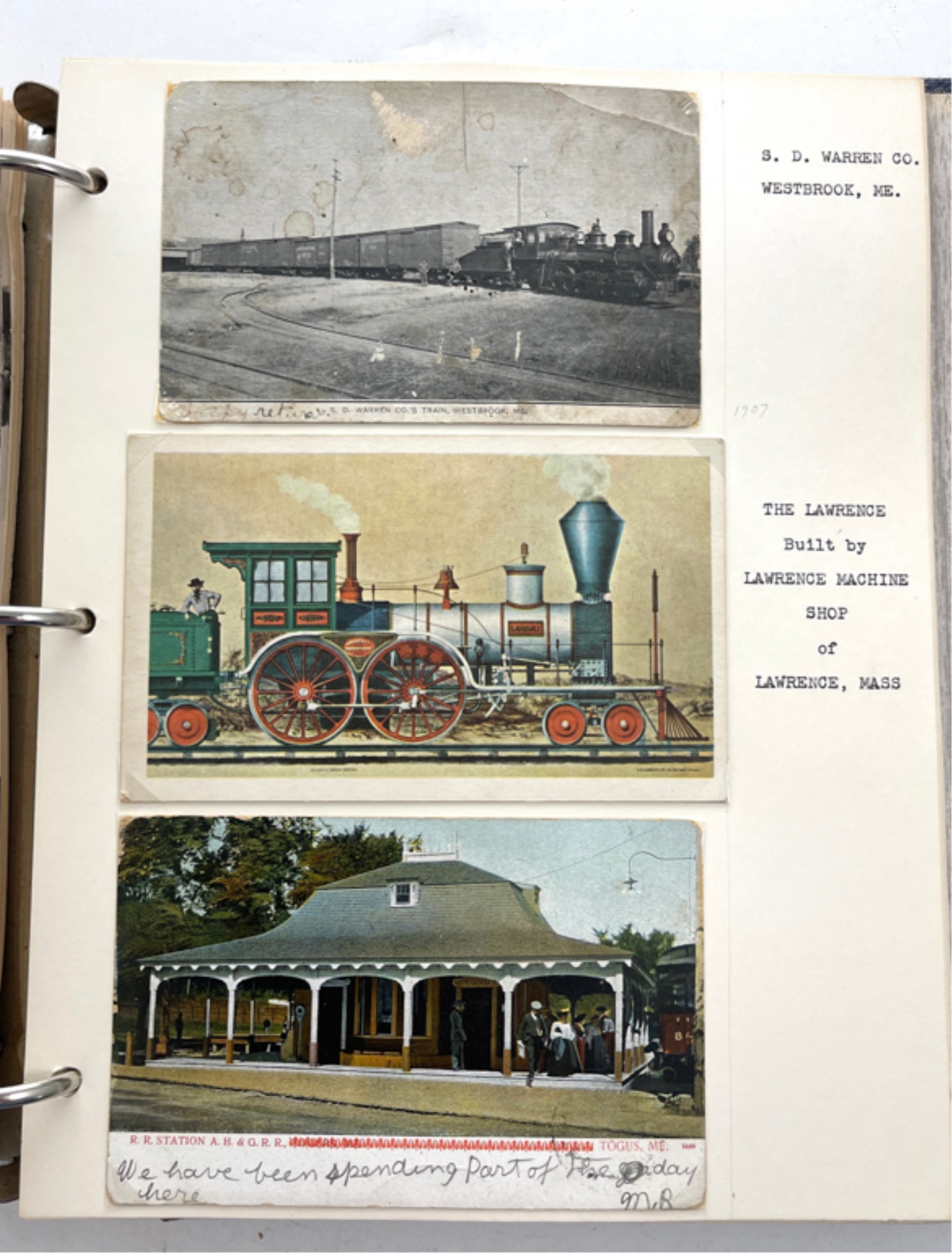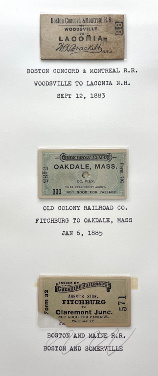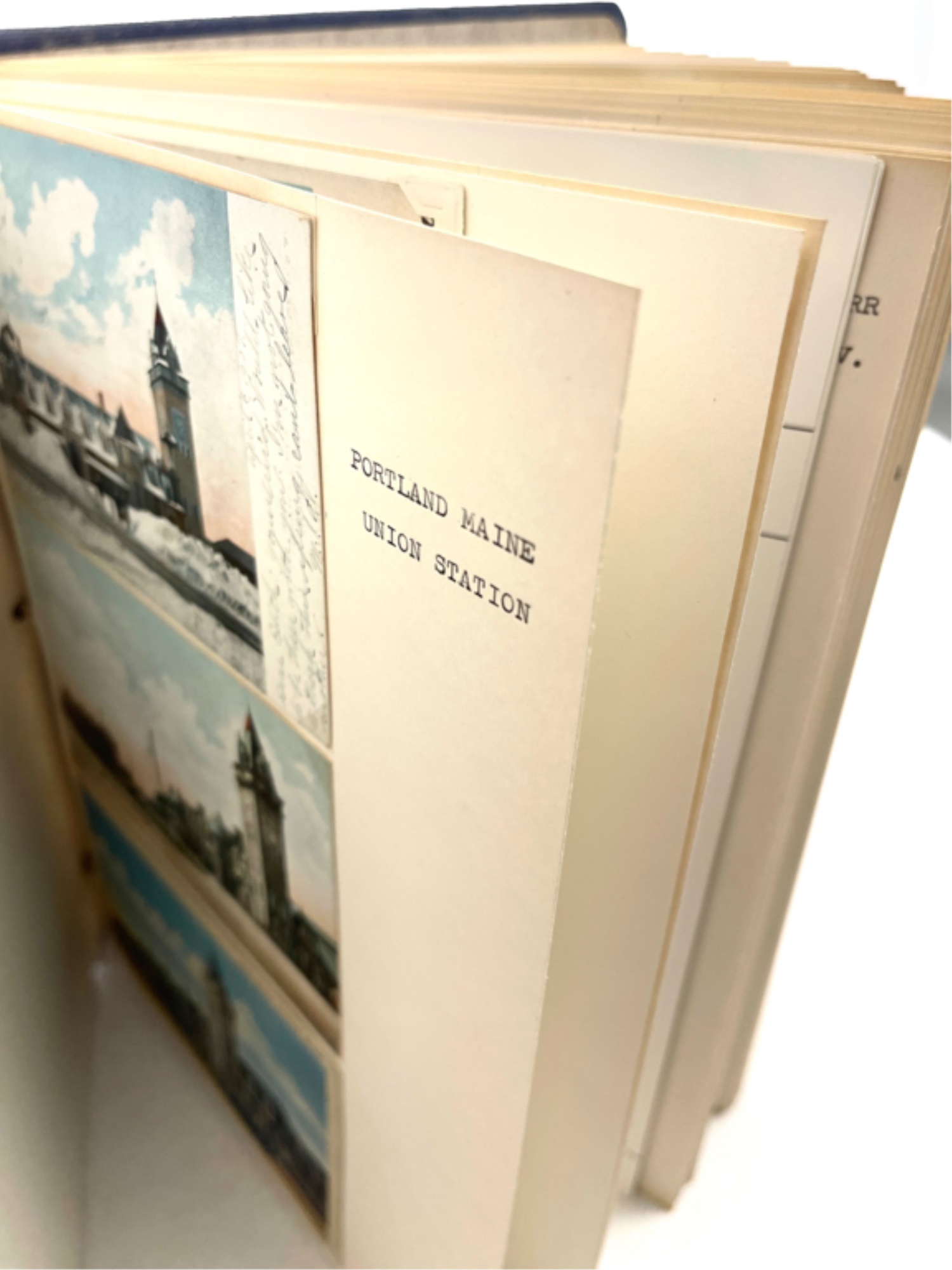 Containing (159) postcards, tickets, time tables and clippings. 11 1/2" x 10 1/2" x 2 1/2"