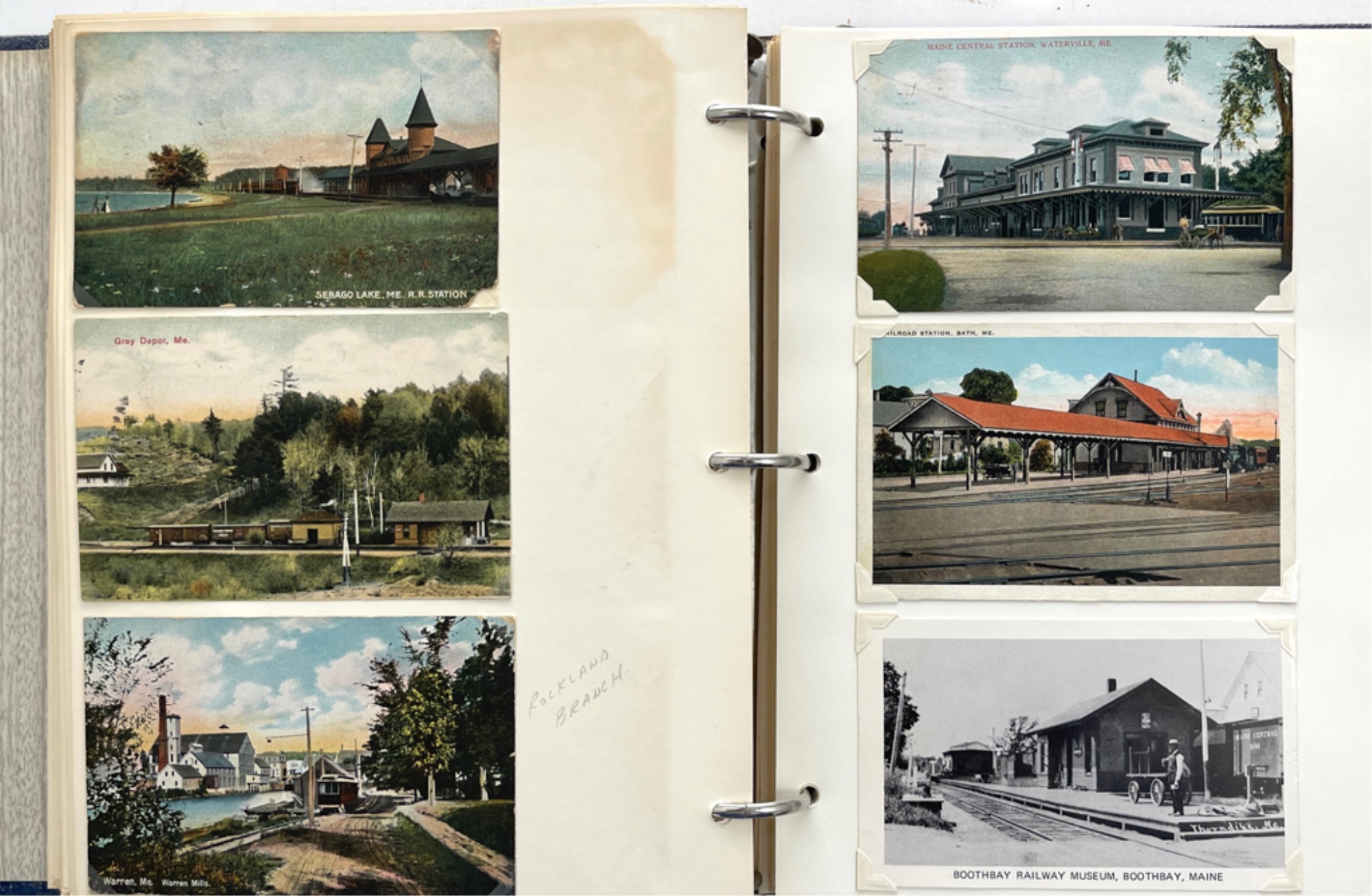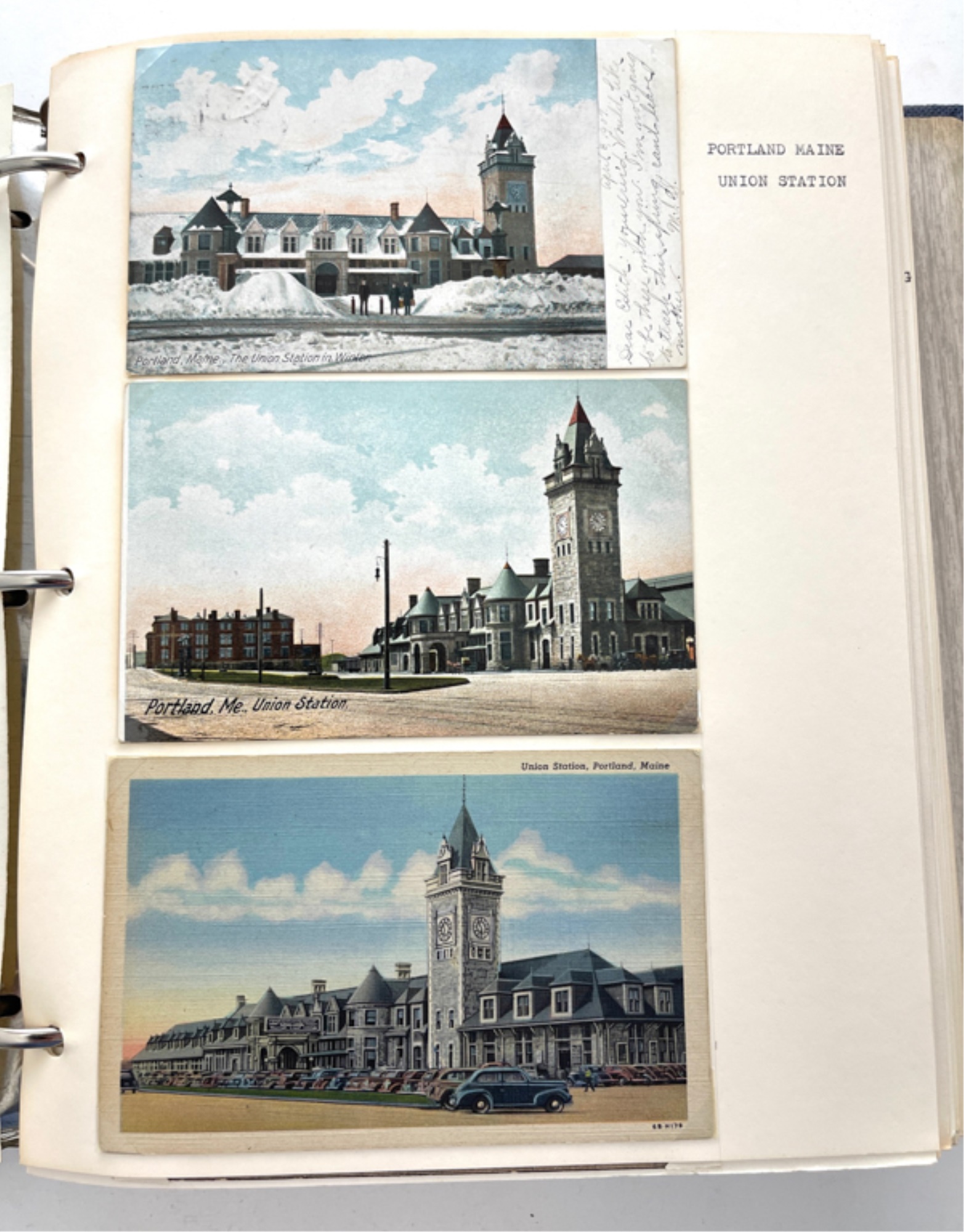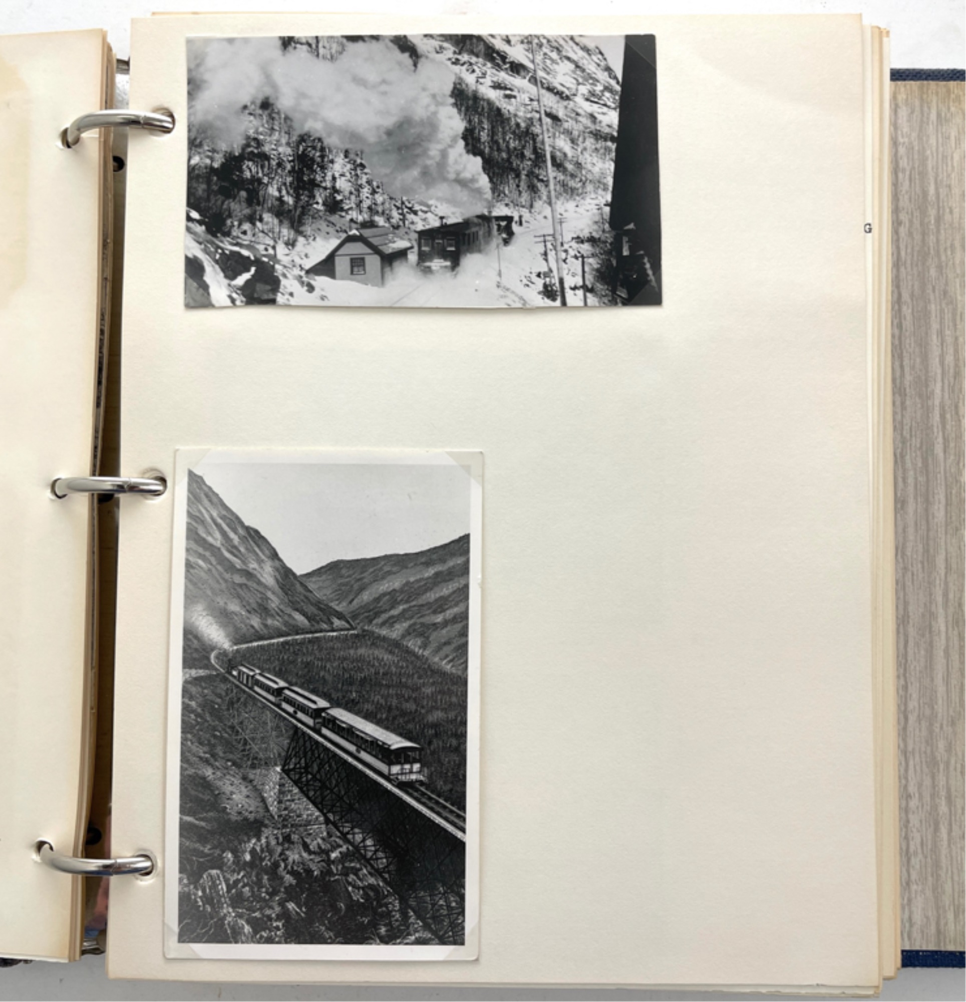 Containing (159) postcards, tickets, time tables and clippings. 11 1/2" x 10 1/2" x 2 1/2"