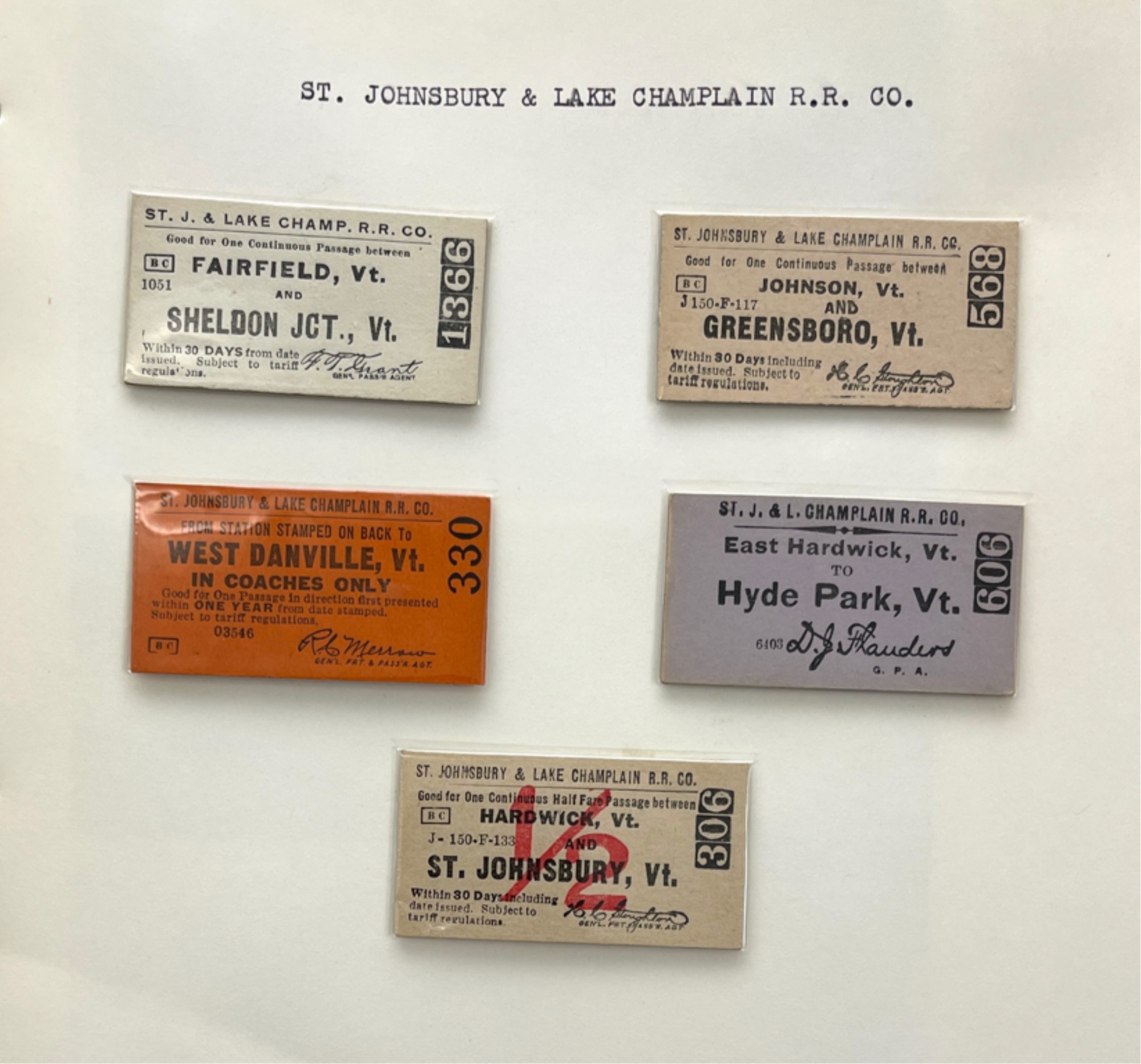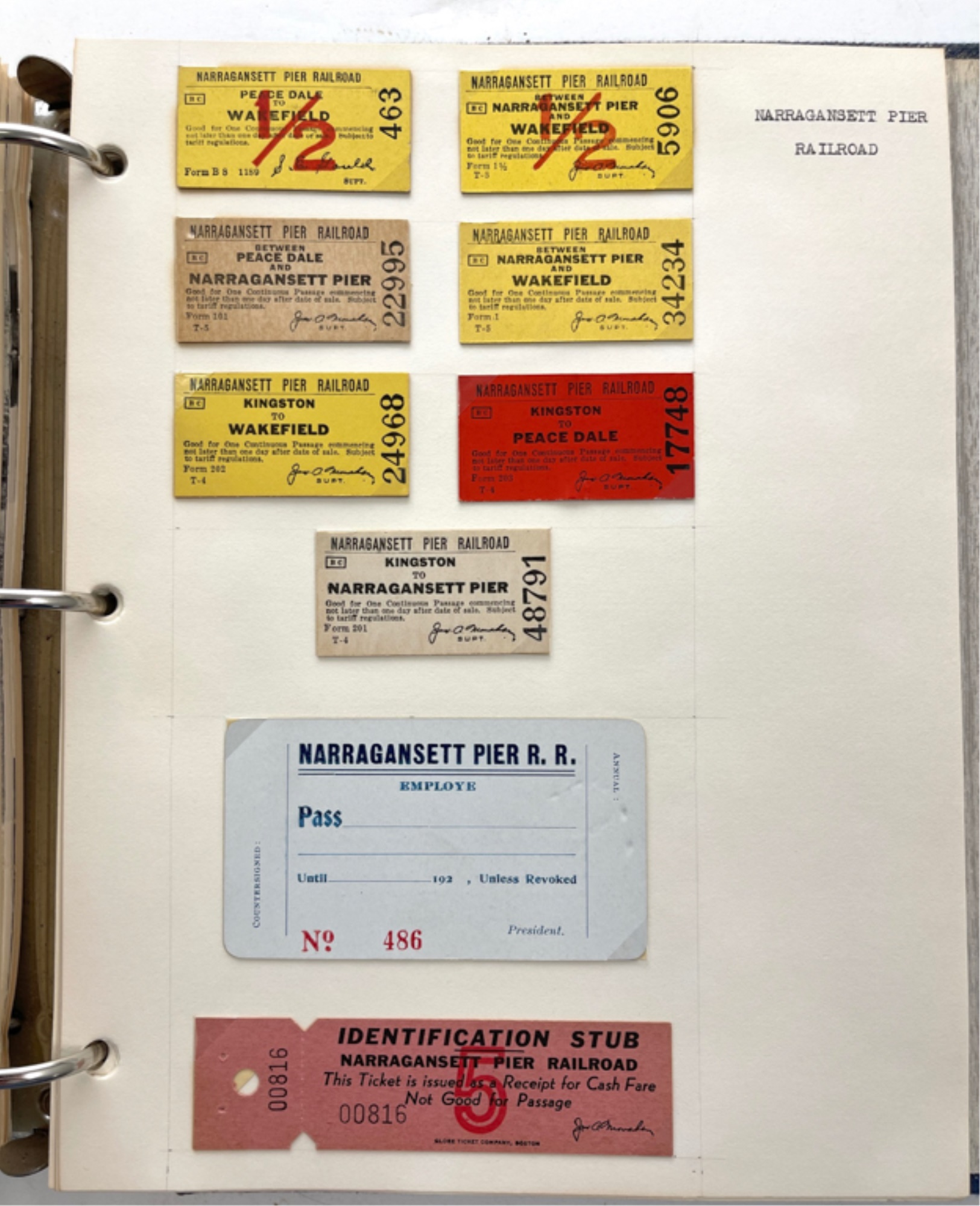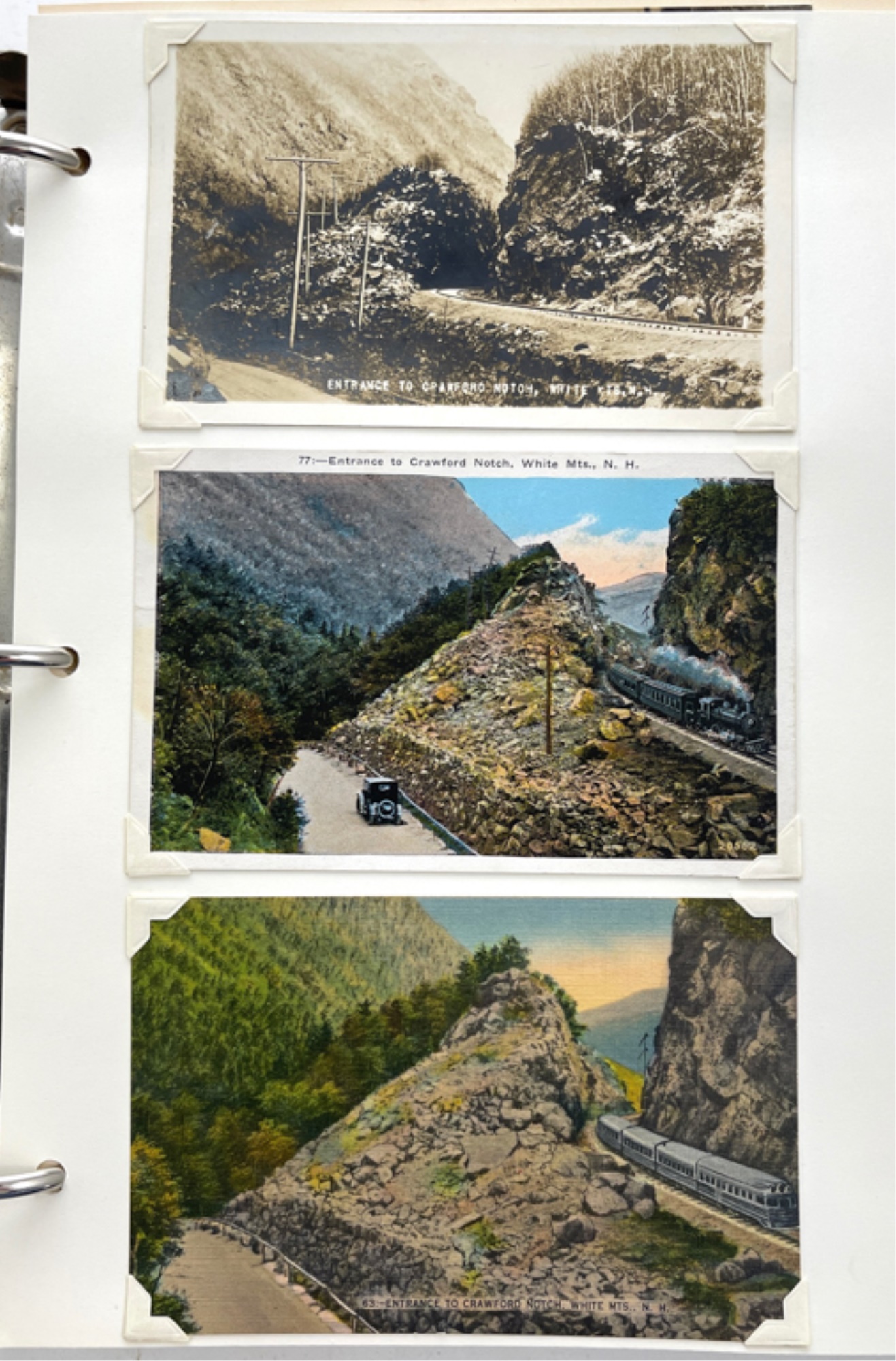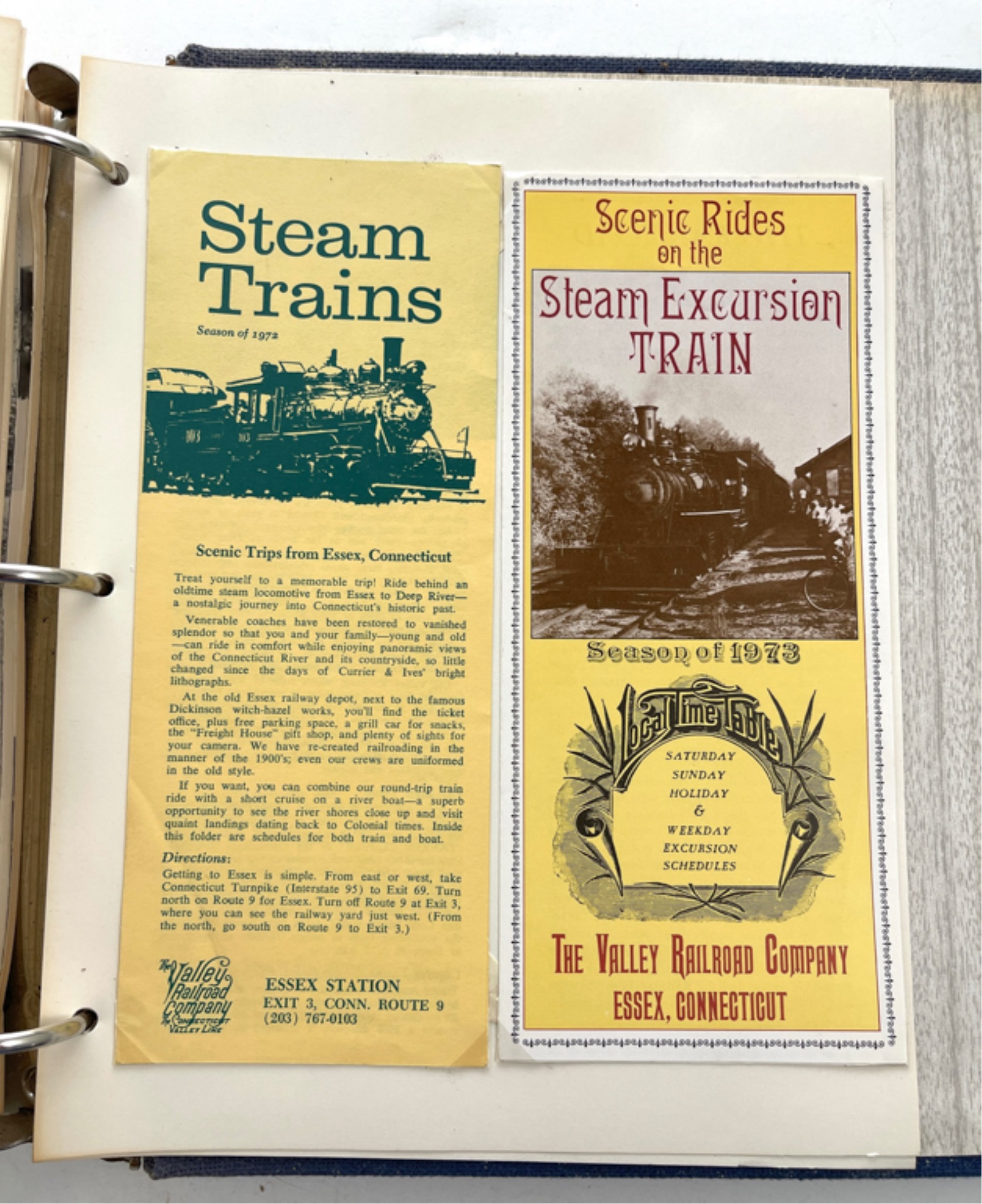 Containing (159) postcards, tickets, time tables and clippings. 11 1/2" x 10 1/2" x 2 1/2"