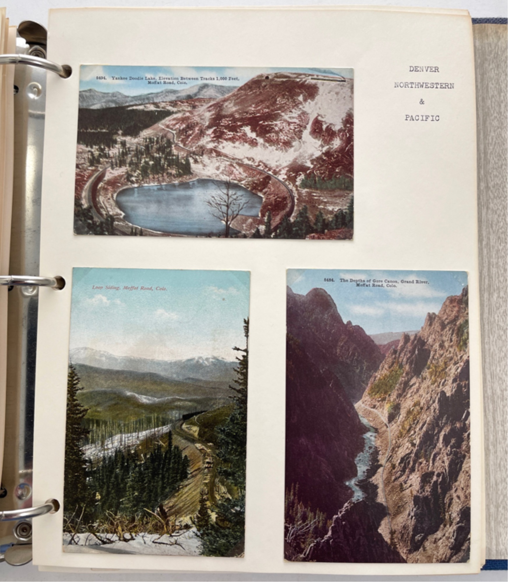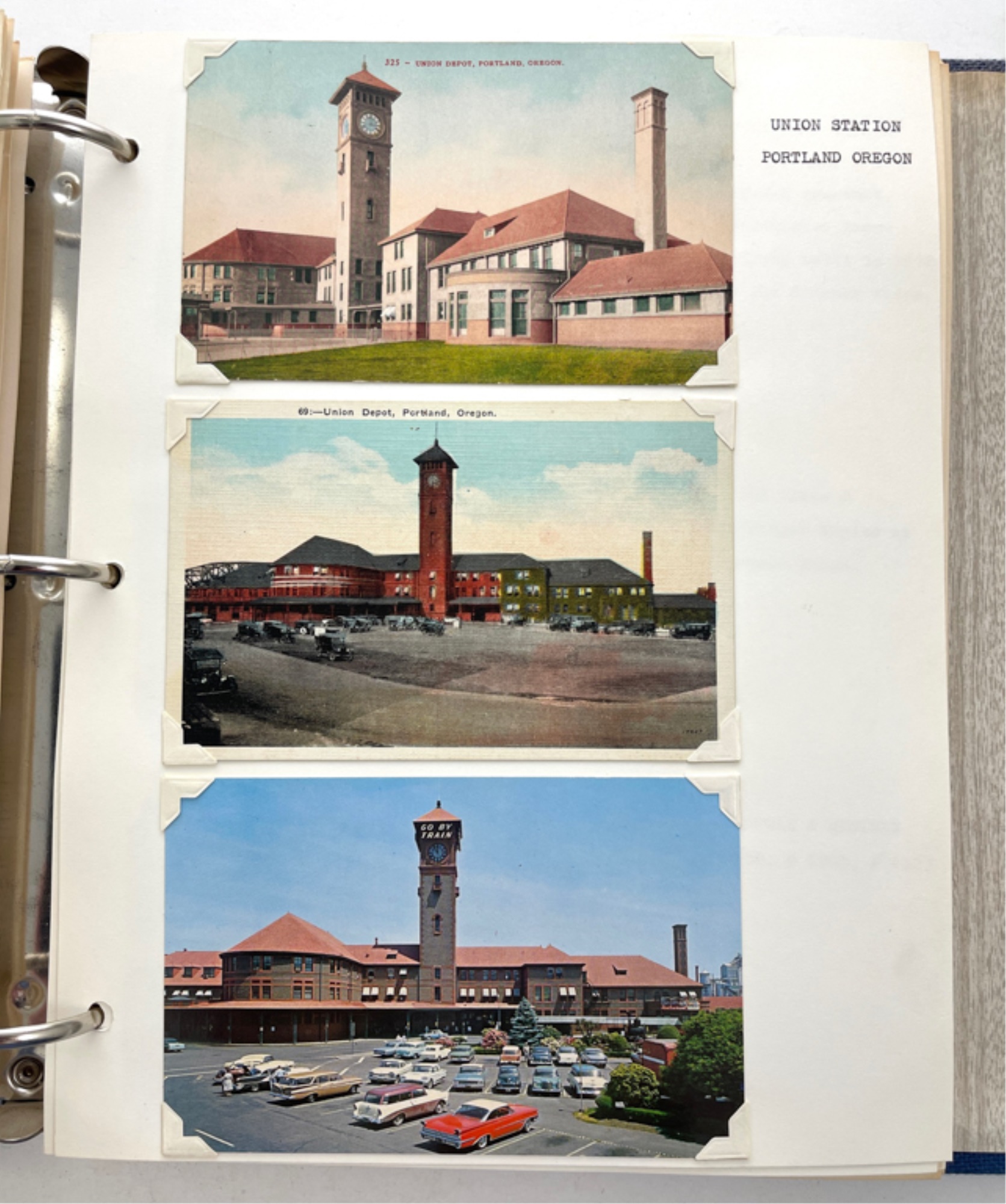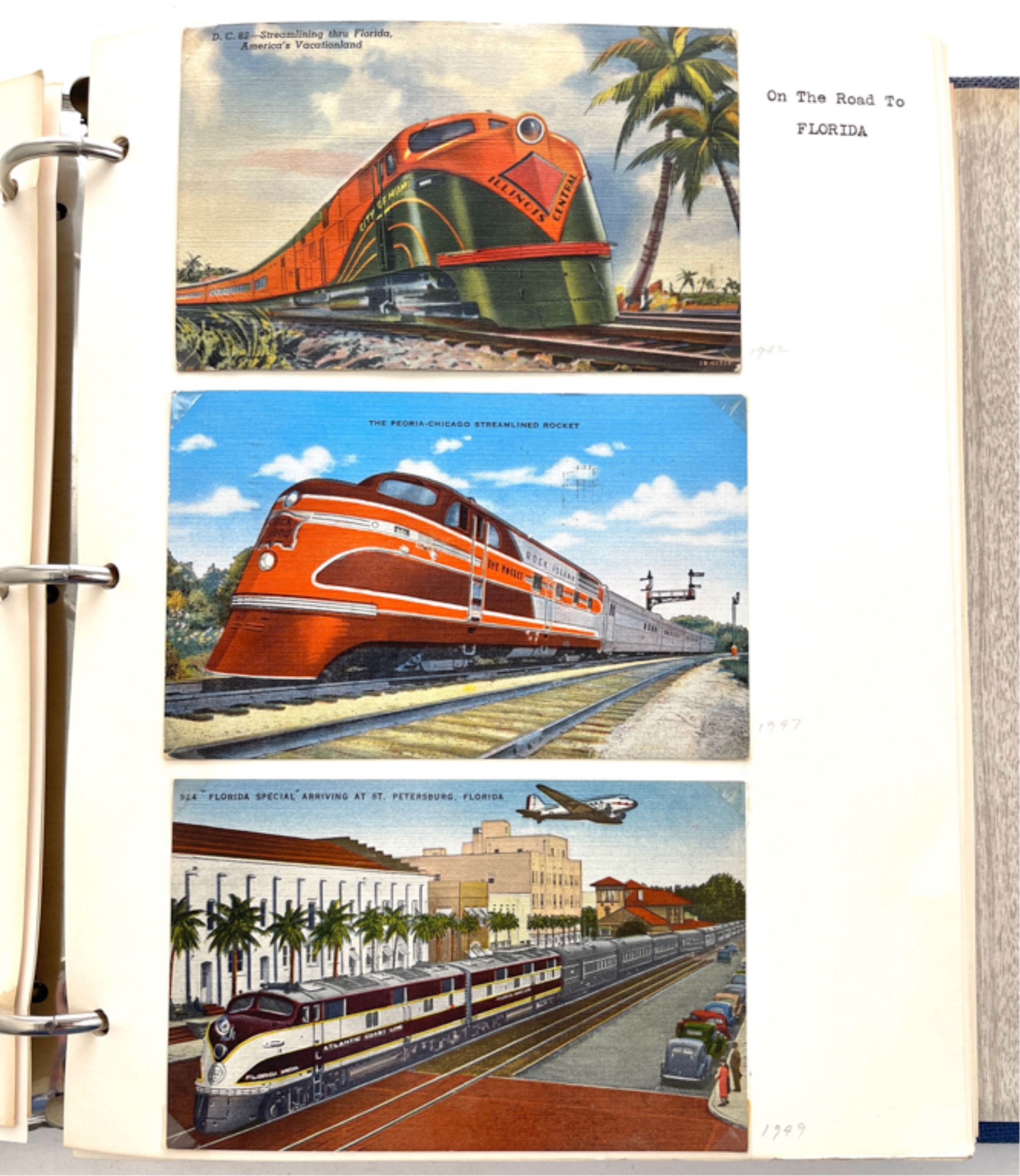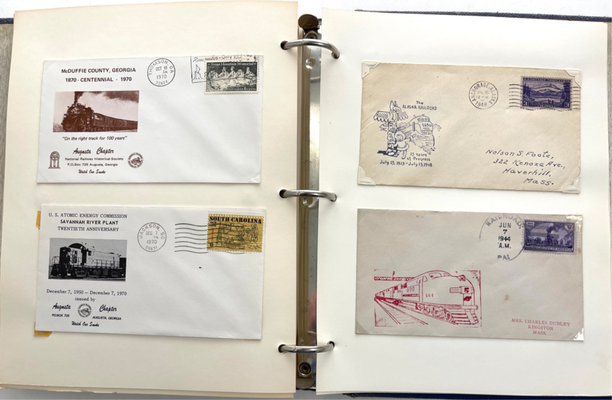 Contains (114) postcards, (17) first day covers. 11 1/2" x 10 1/2" x 2 1/2"