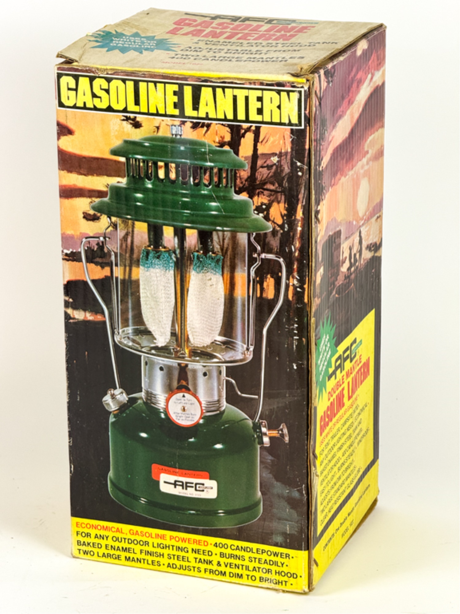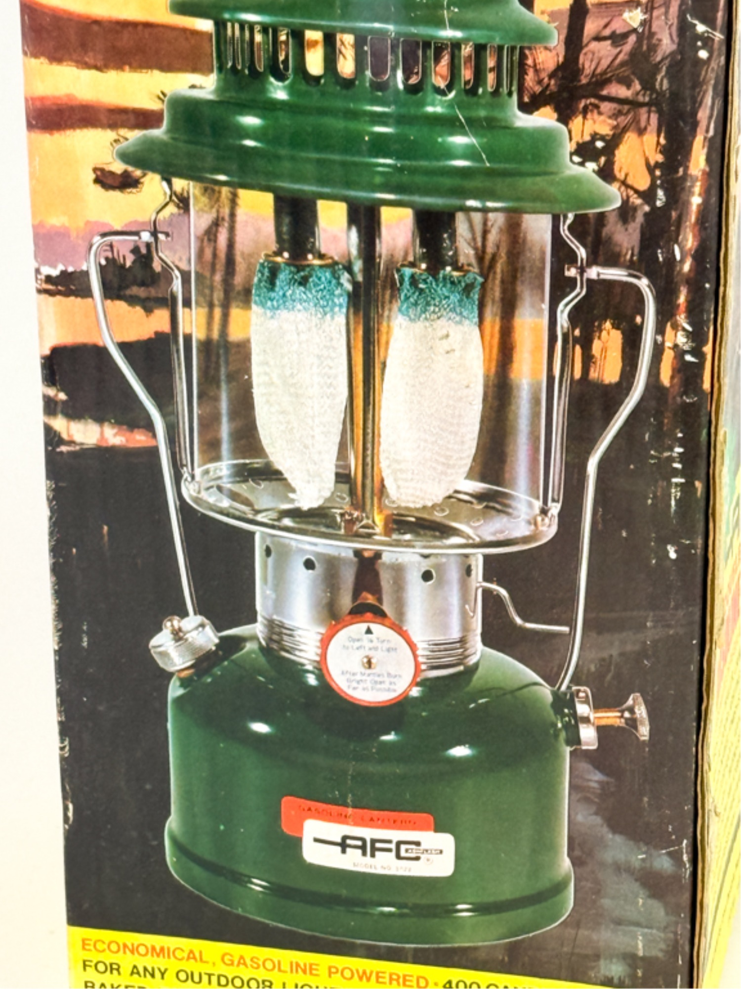 Double mantle AFC lantern new in box model 1022, Sears model 476.72211. 19 inches. Condition: Untested. Temp No 4050