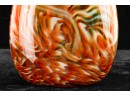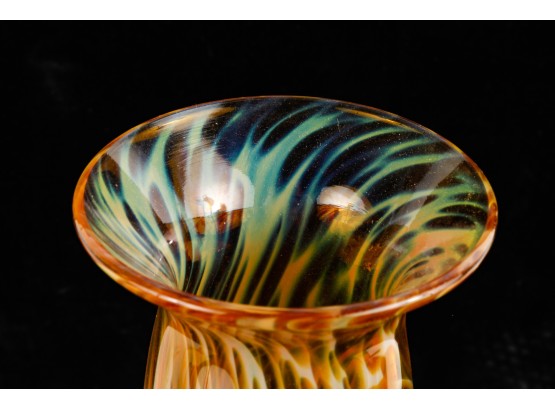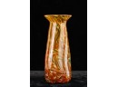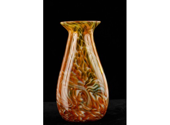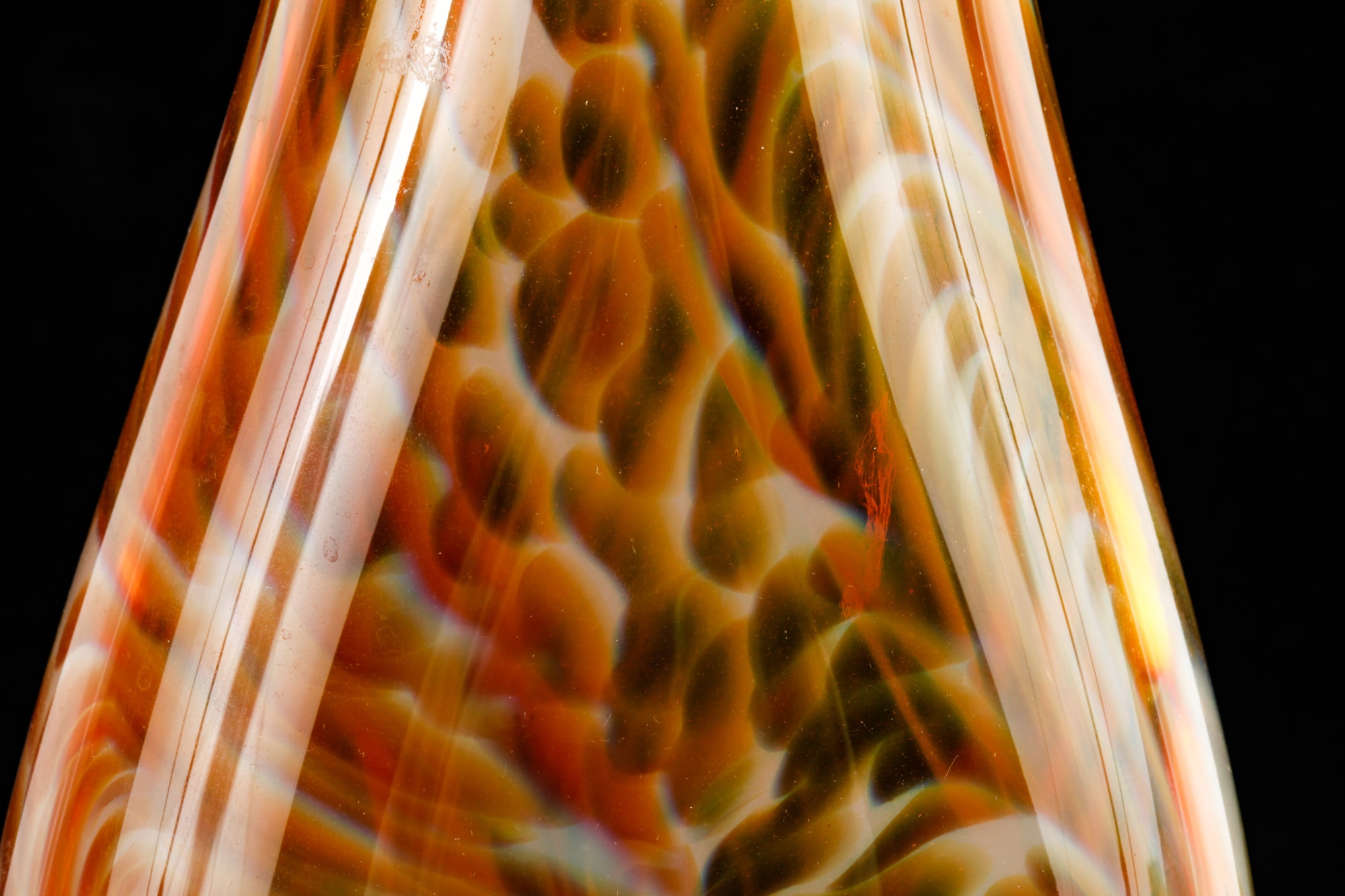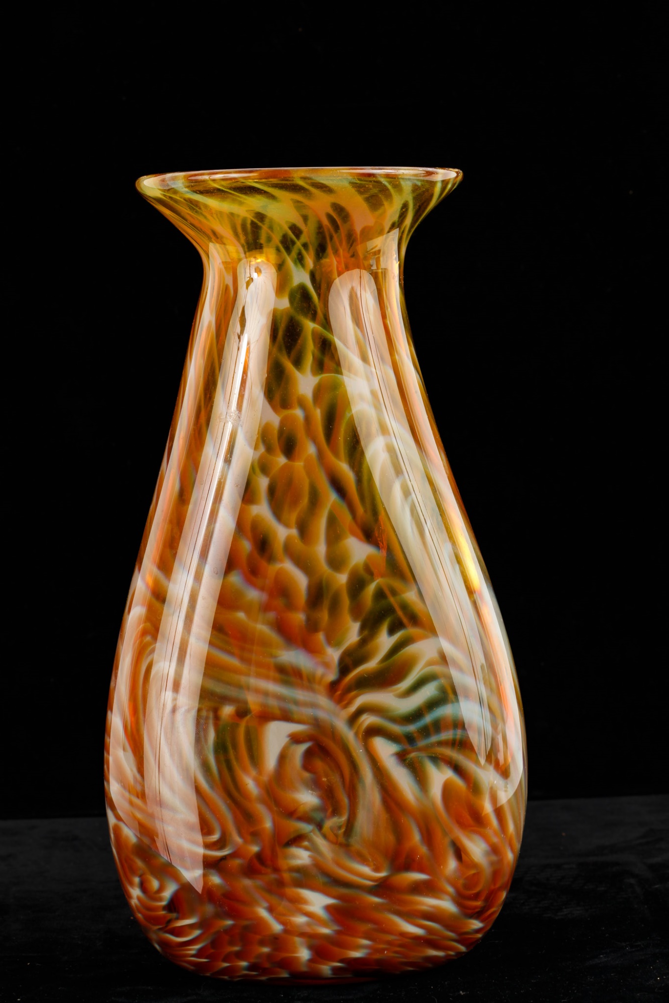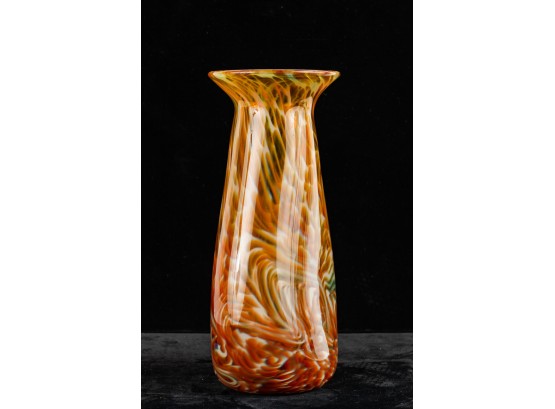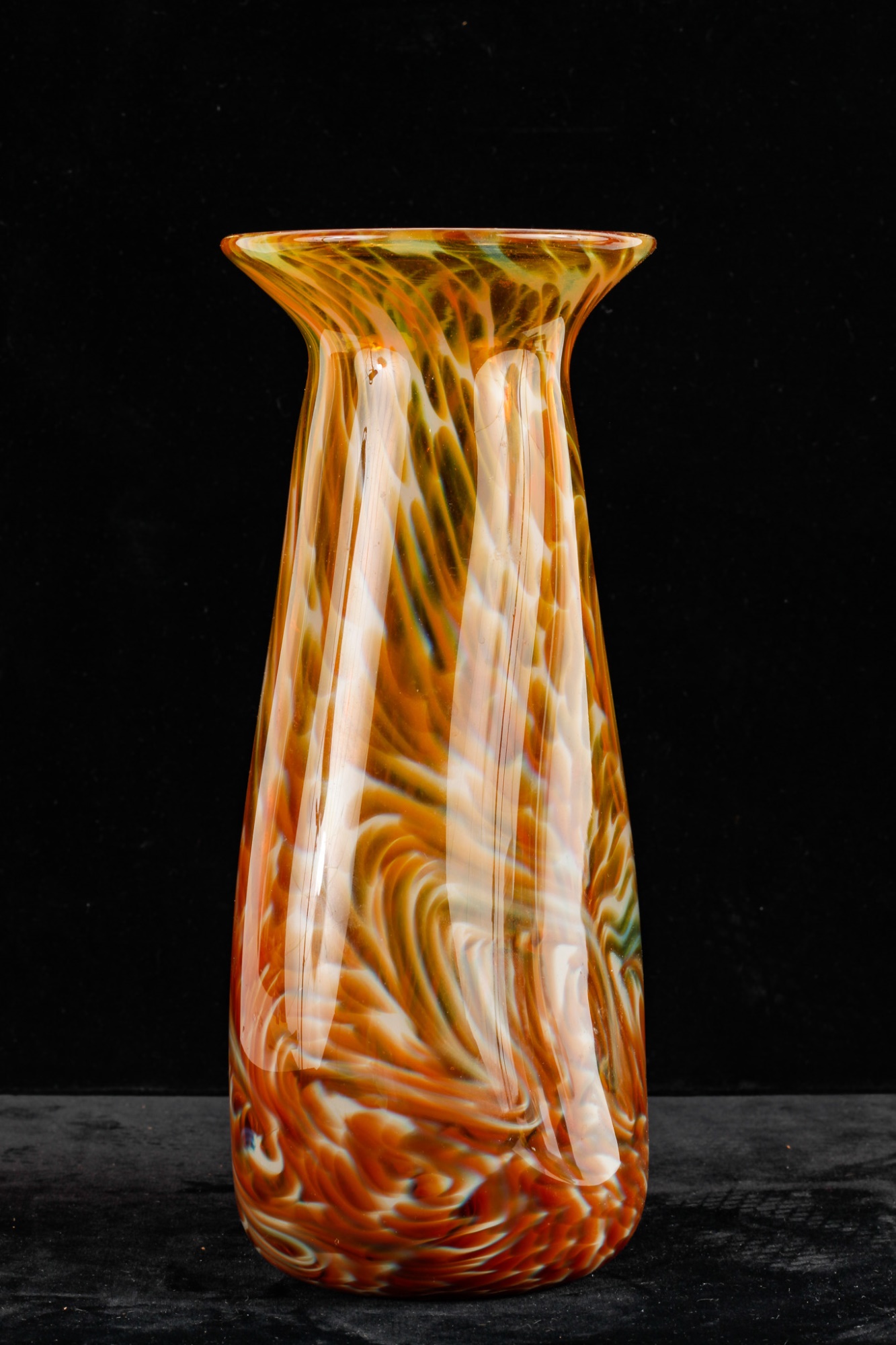 Hand made. Amber with white swirl pattern. 9 3/4" x 4" dia