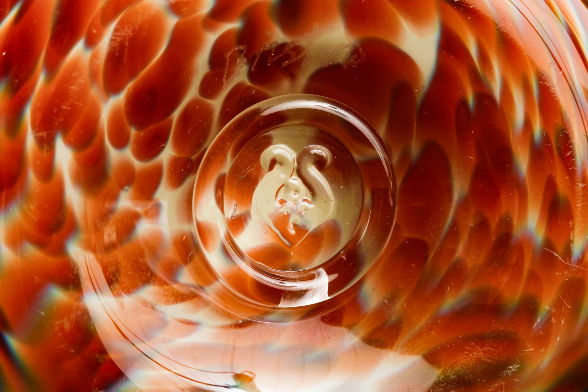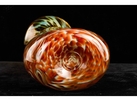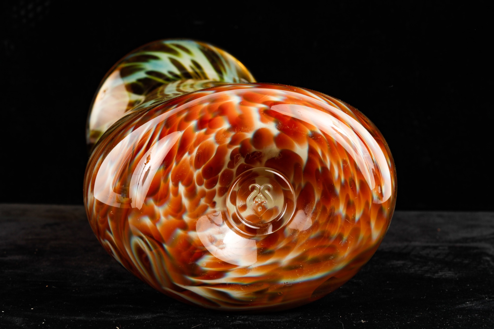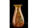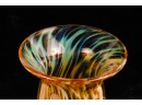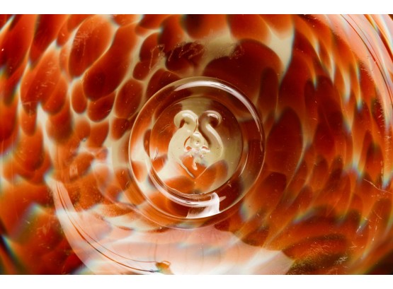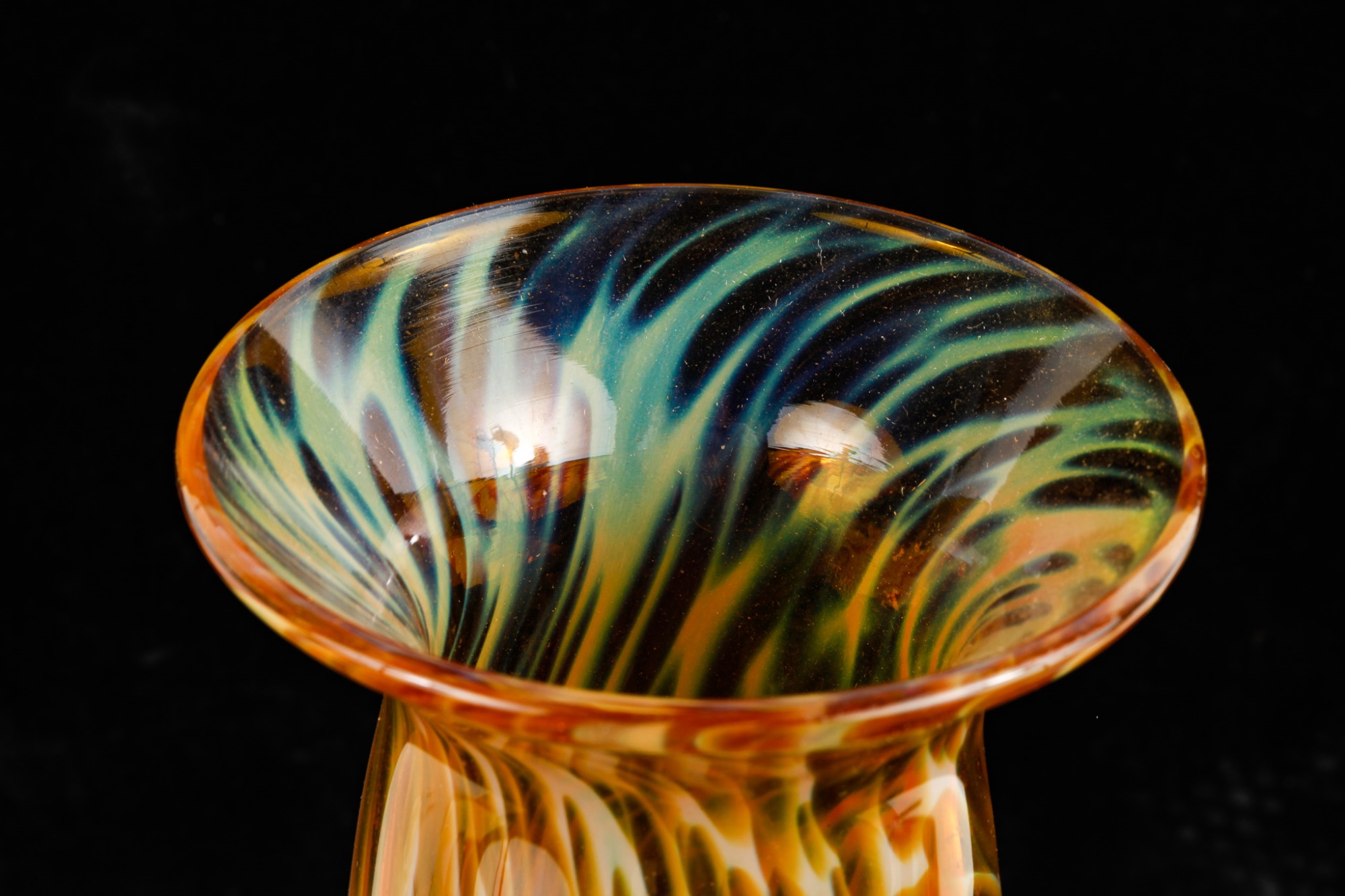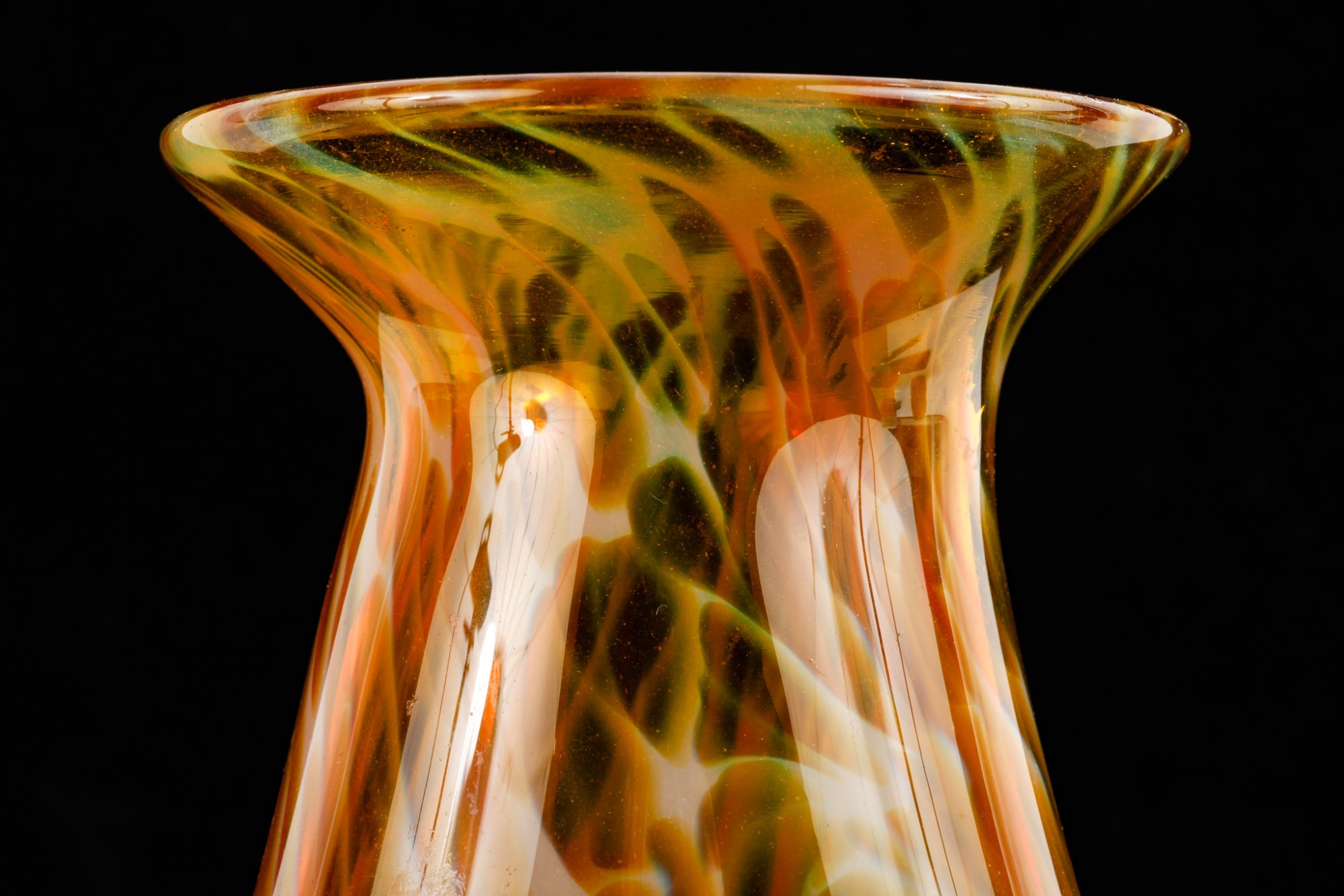 Hand made. Amber with white swirl pattern. 9 3/4" x 4" dia