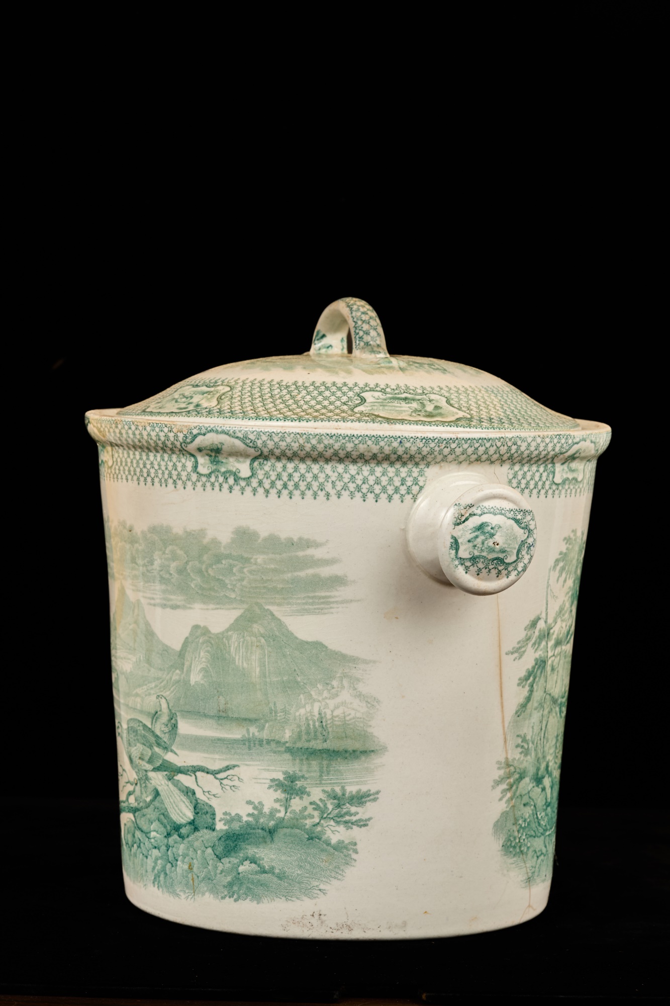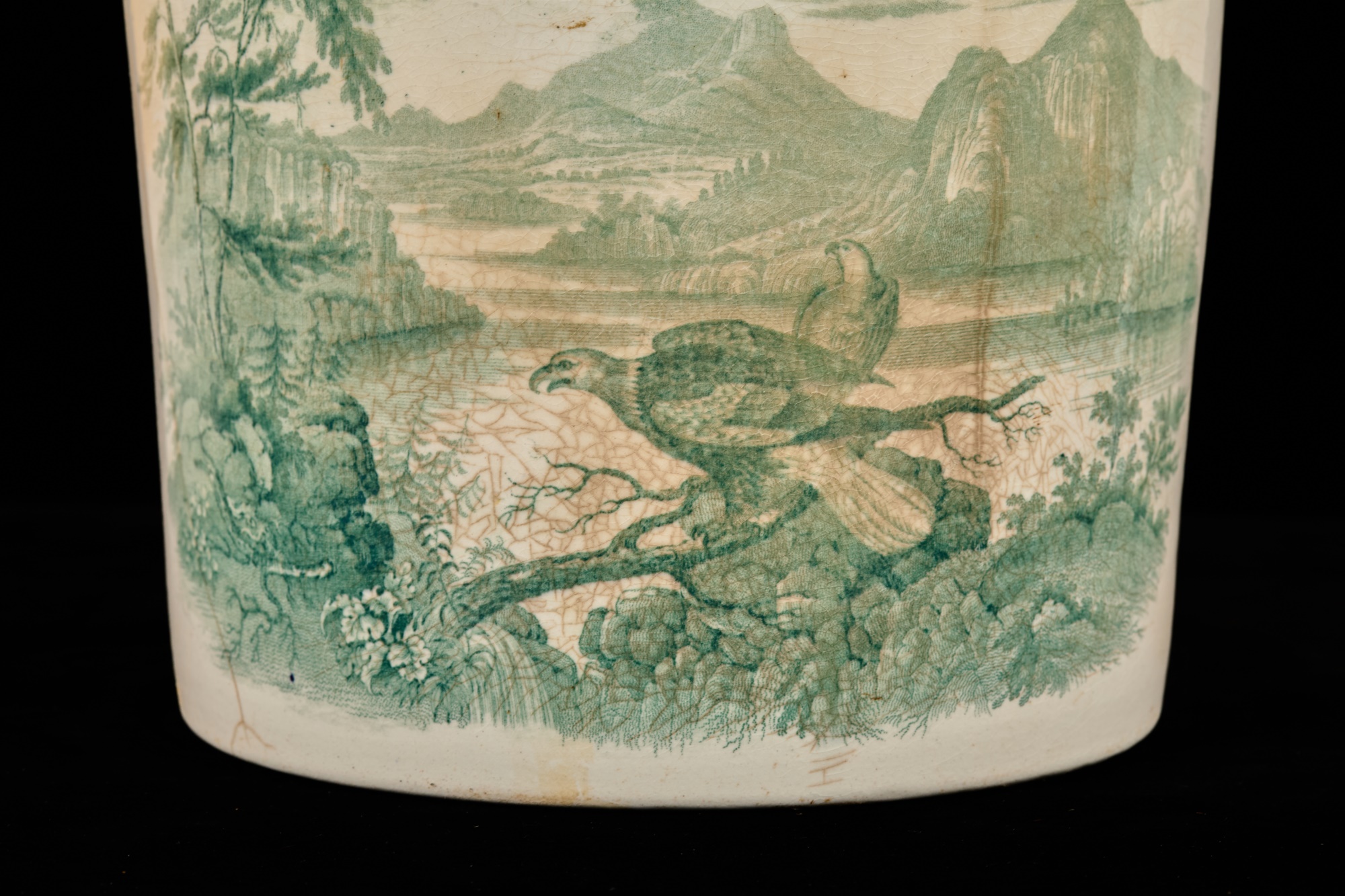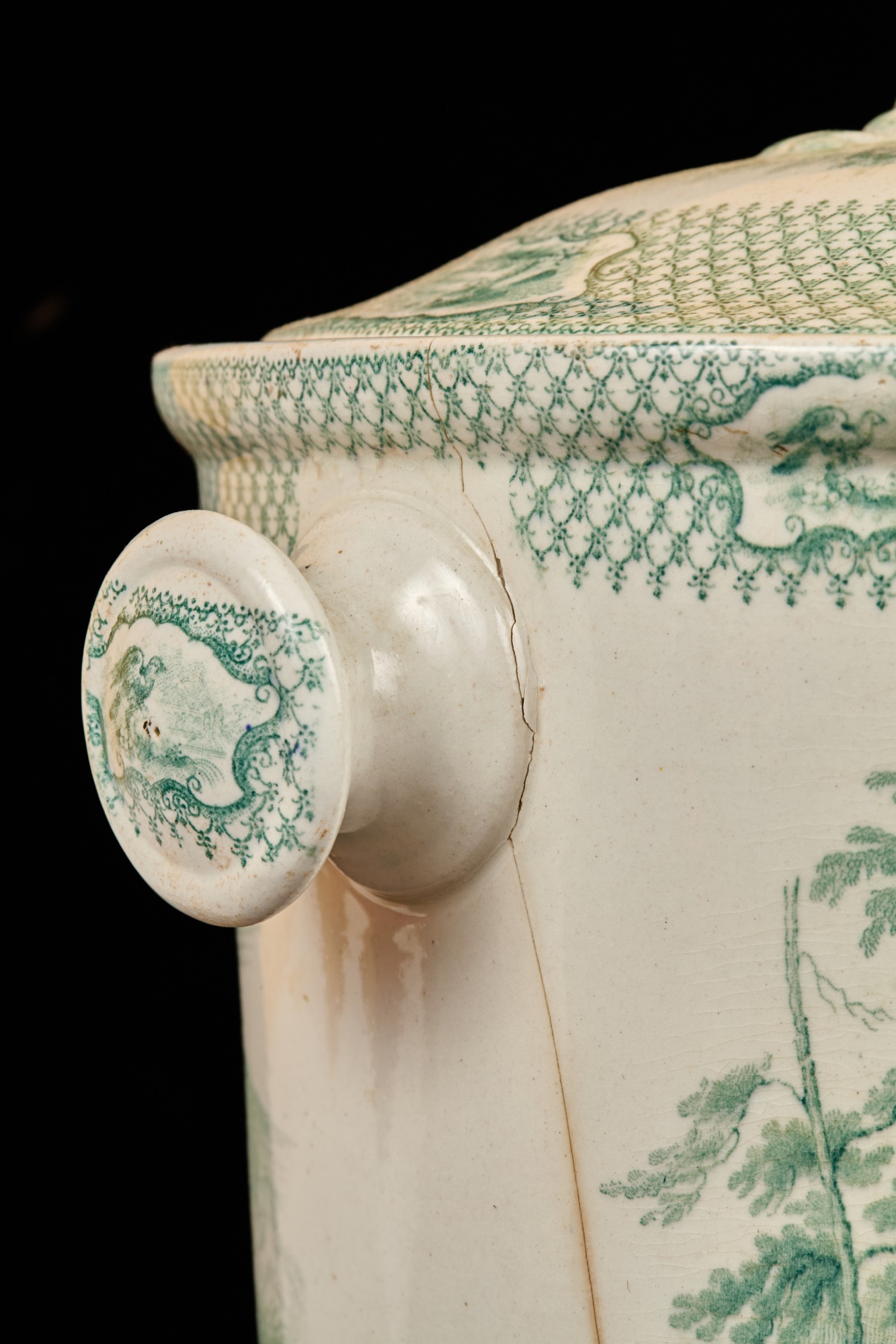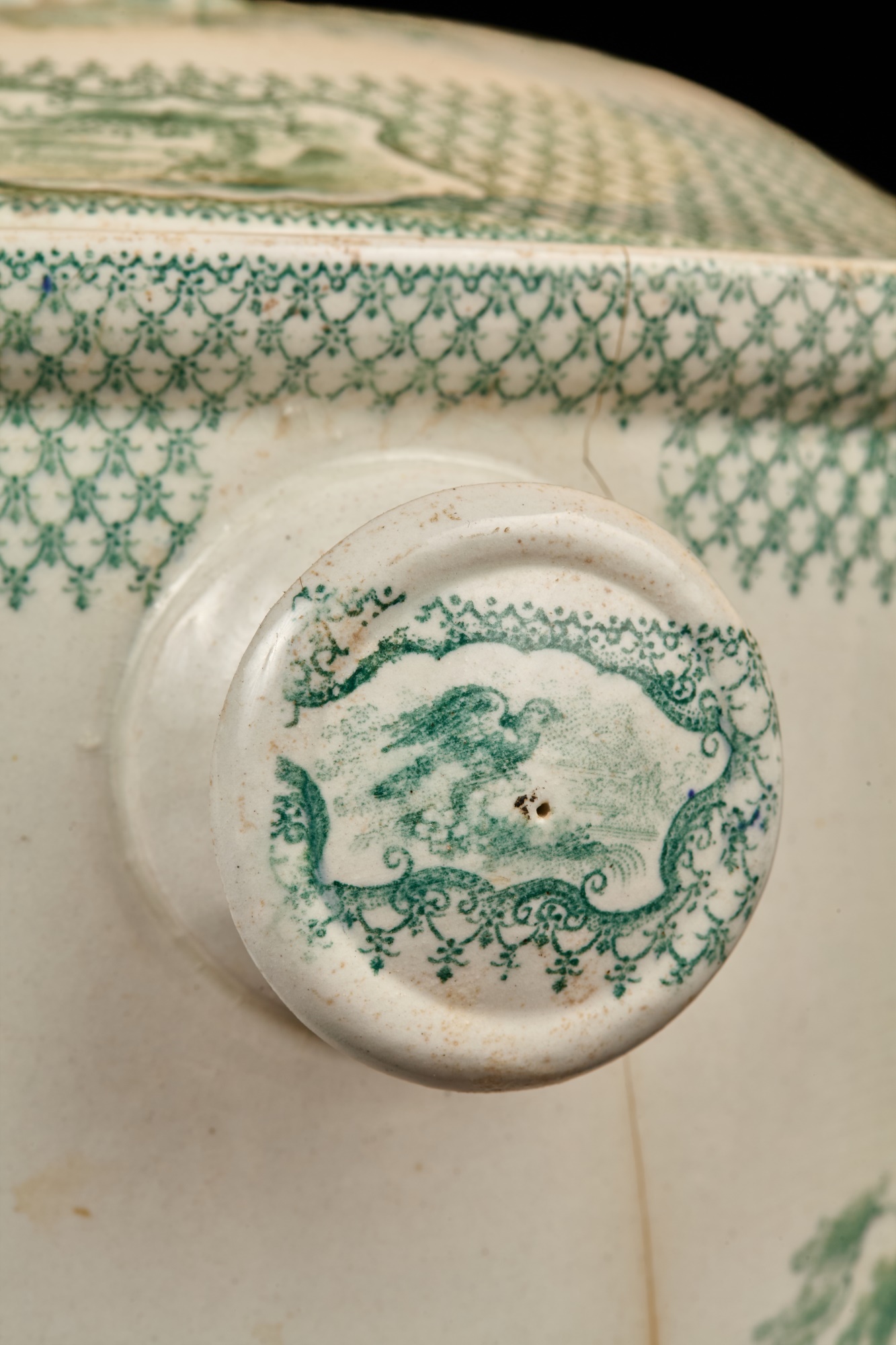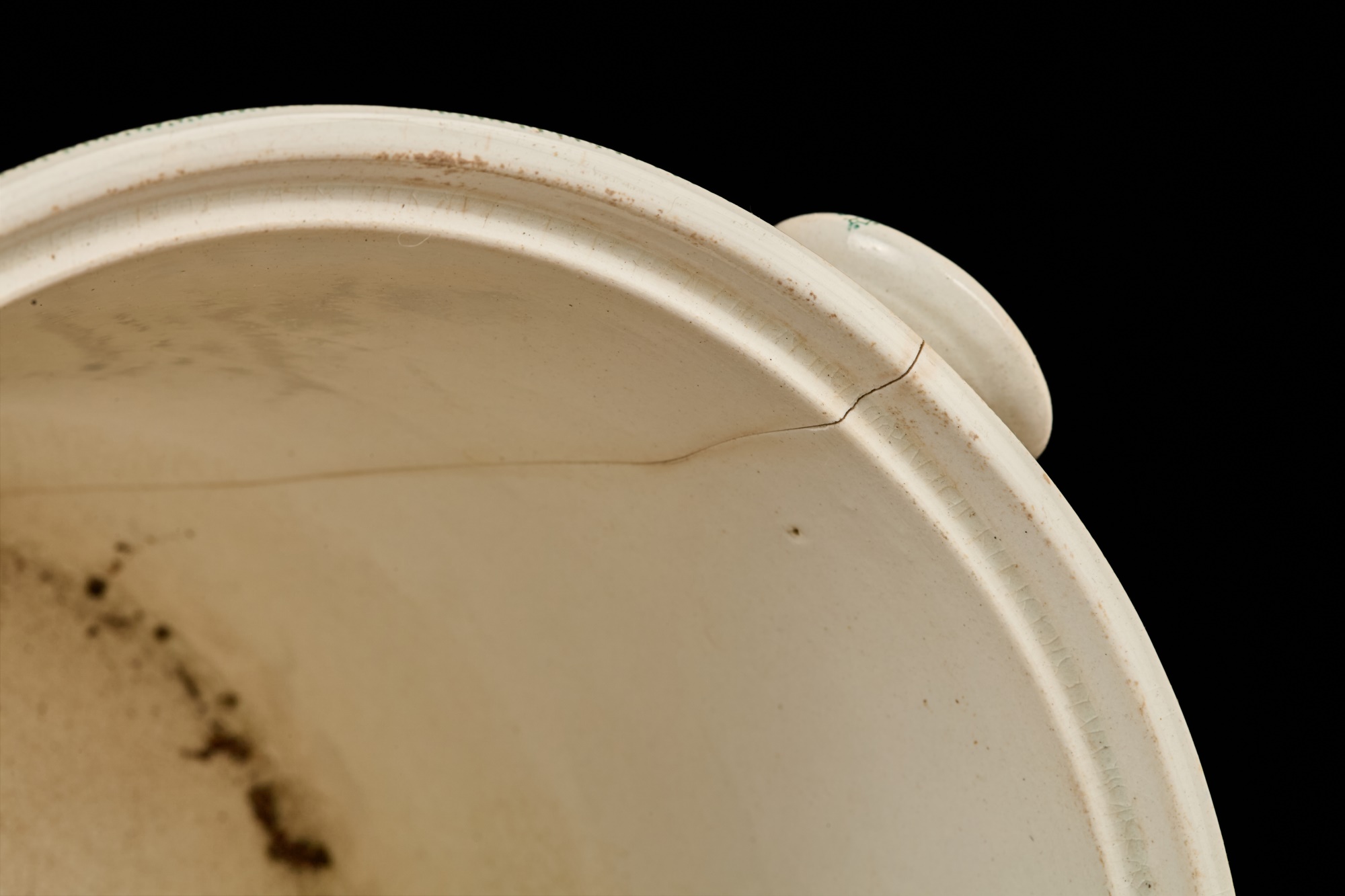Notes: Urinal cracked and repaired, crack to font
