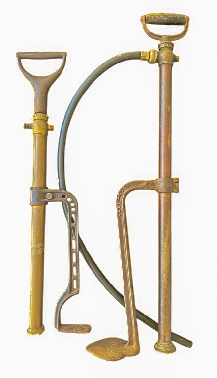 Antique bronze & cast iron hand bilge pump marked "W & B Douglas Midd’tn, Conn", other example unmarked. 29 inches. Condition: Wear expected from use. Temp No 4169