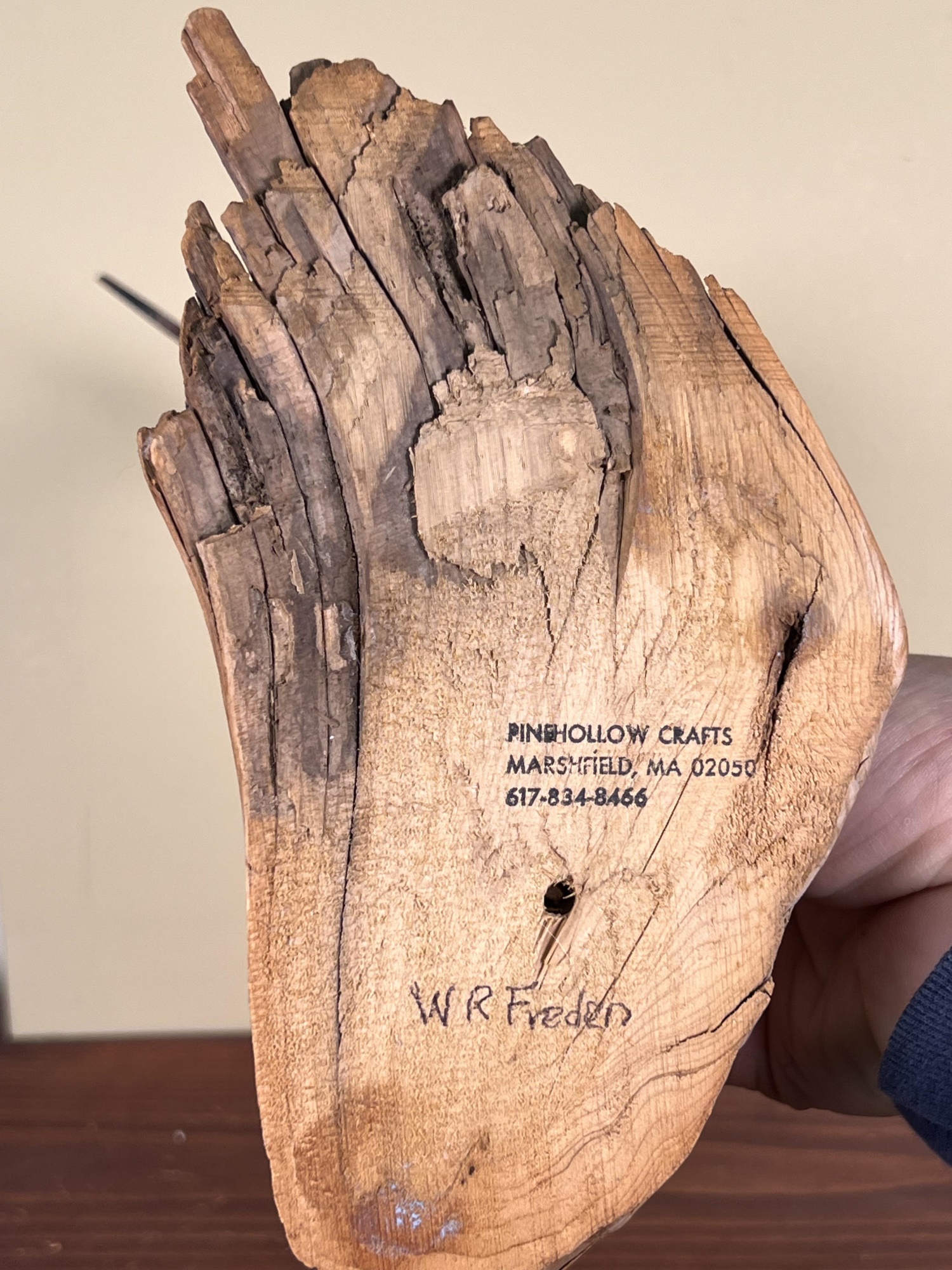 Signed in two places. Pinhollow Crafts, Marshfield, MA stamp. 11 1/2" tall