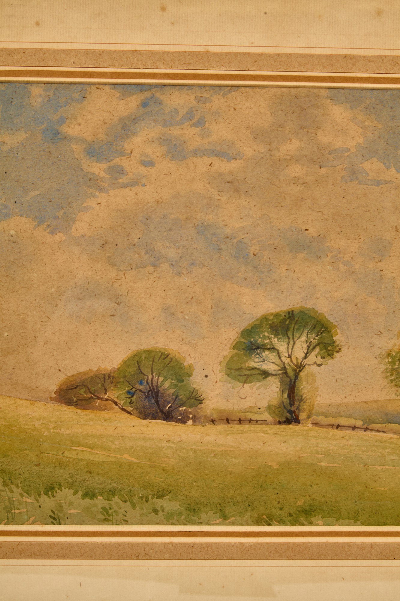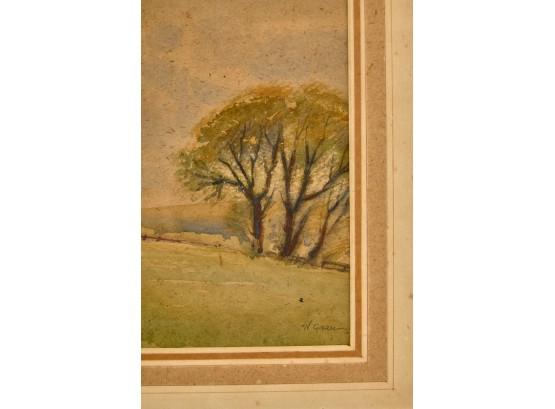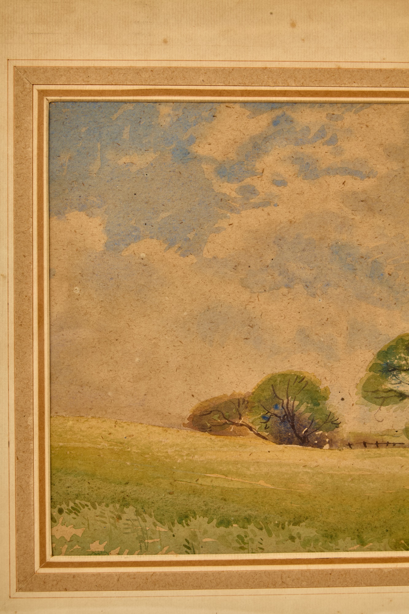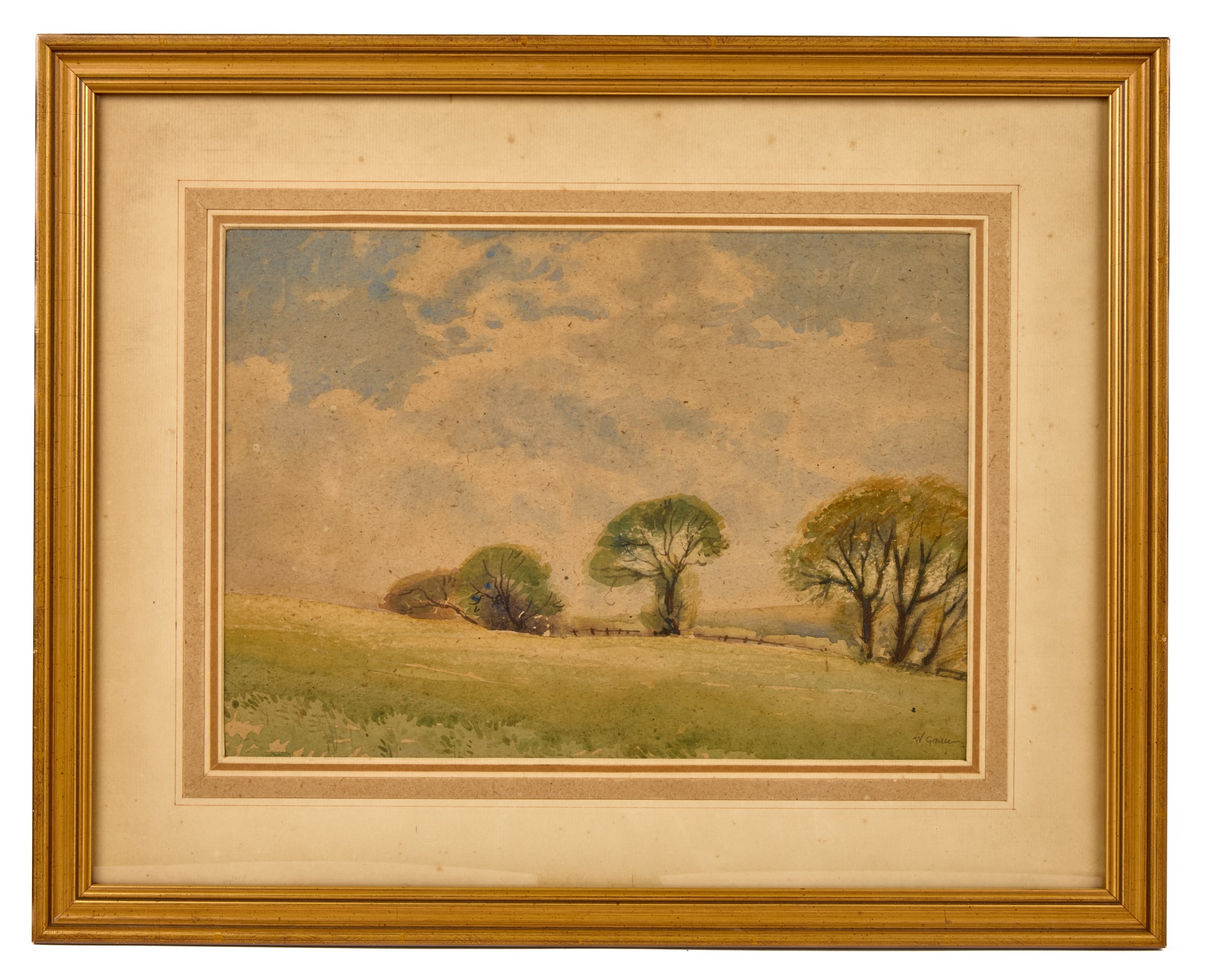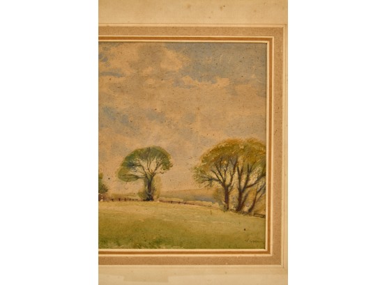 (Summer Day with Fair Weather Clouds) watercolor 9.5 x 13.5 inches. signed. framed 16.5 x 20.5 inches (overall) Condition: Toning Temp No 6099