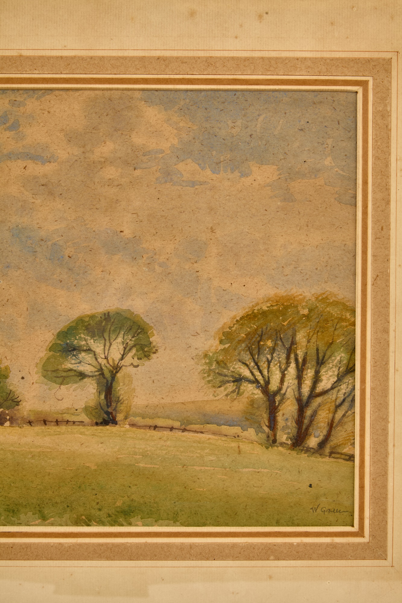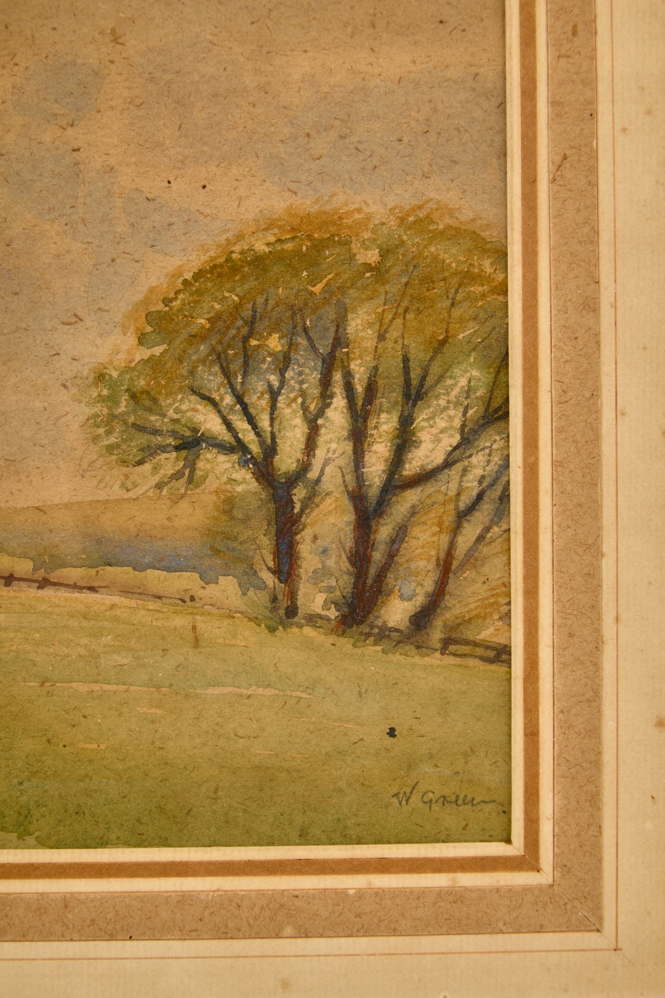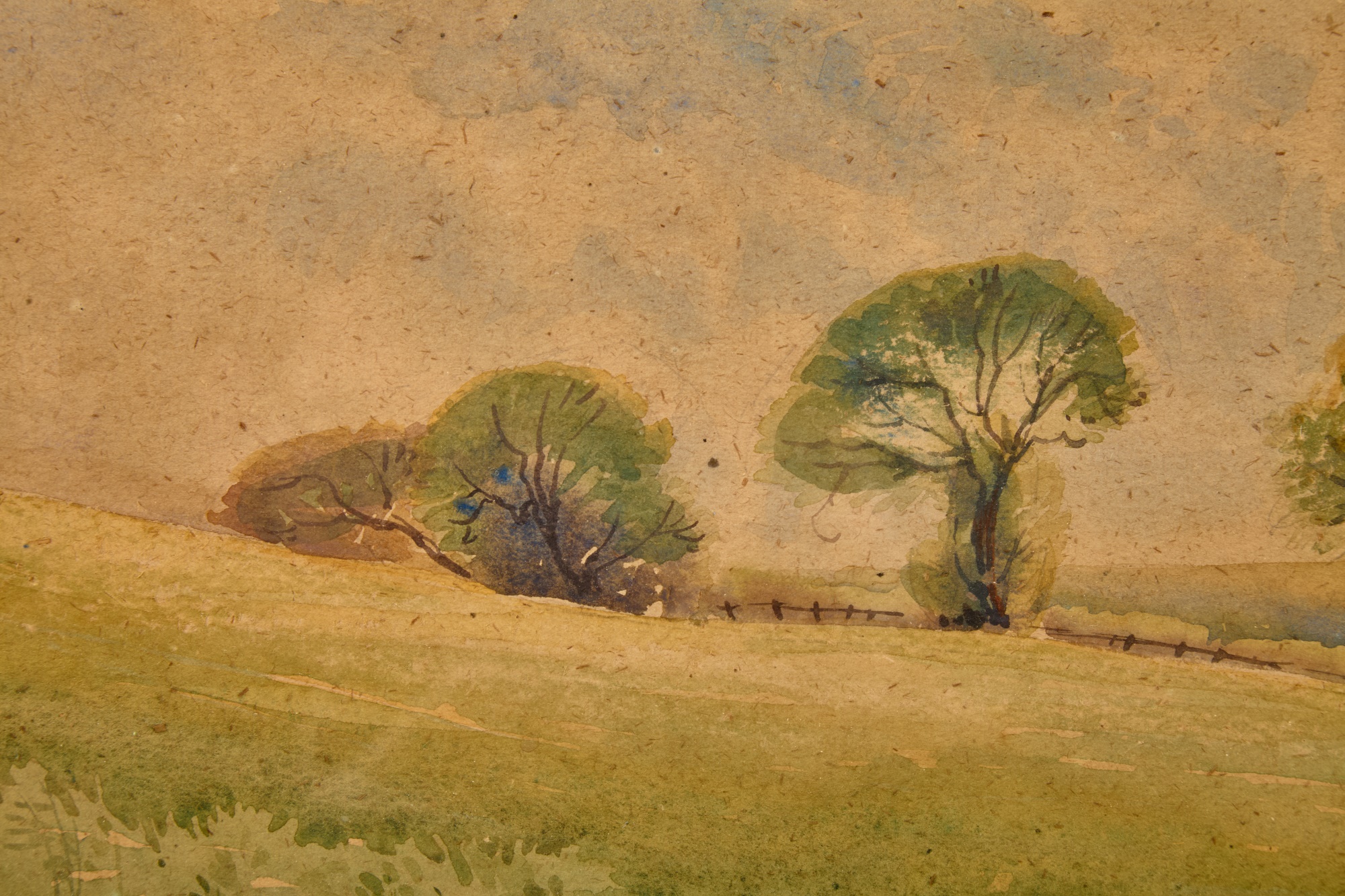(Summer Day with Fair Weather Clouds) watercolor 9.5 x 13.5 inches. signed. framed 16.5 x 20.5 inches (overall) Condition: Toning Temp No 6099