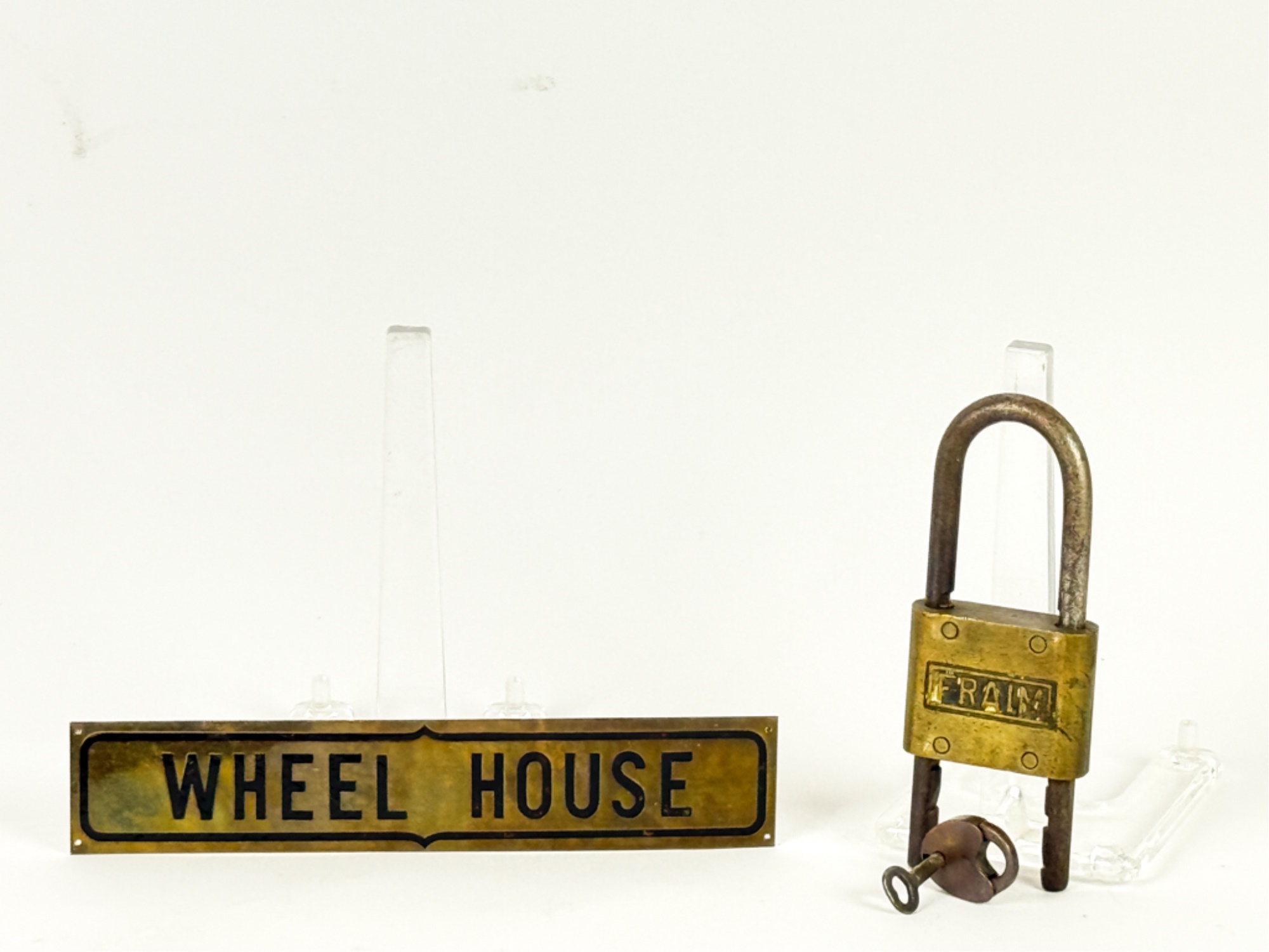 Key absent from seabag lock. sign measures 7 5/8 inches. Condition: Good. See photos. Temp No 4283