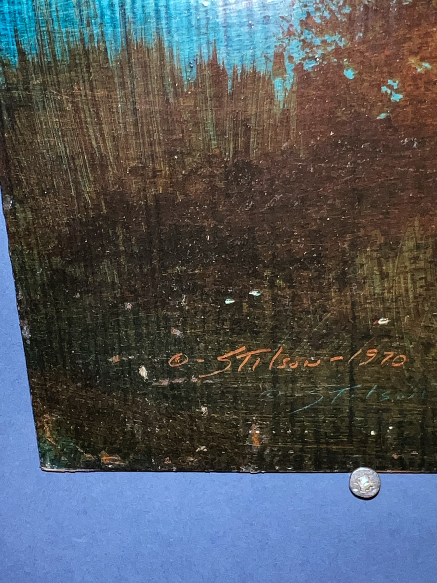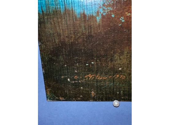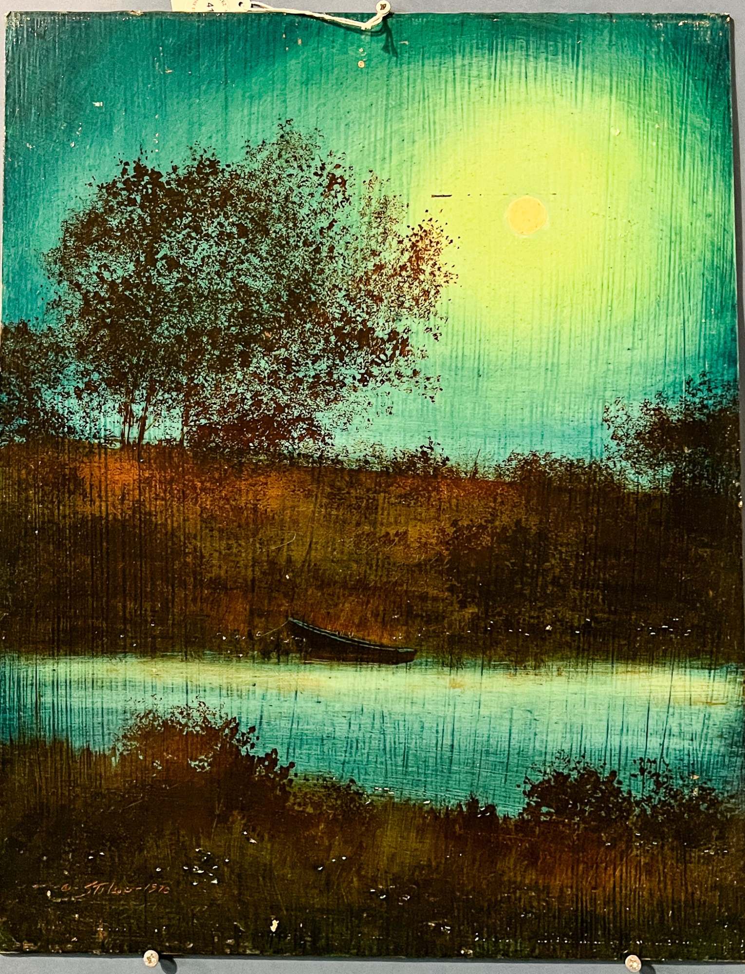 Nocturnal landscape. Oil on board. Signed and dated 1970. 20" x 16" unframed. Provenance: Direct from artists family