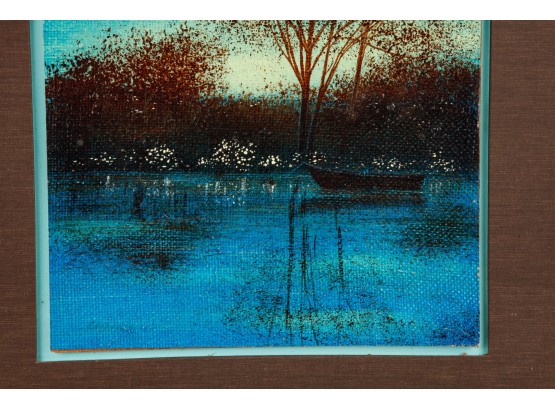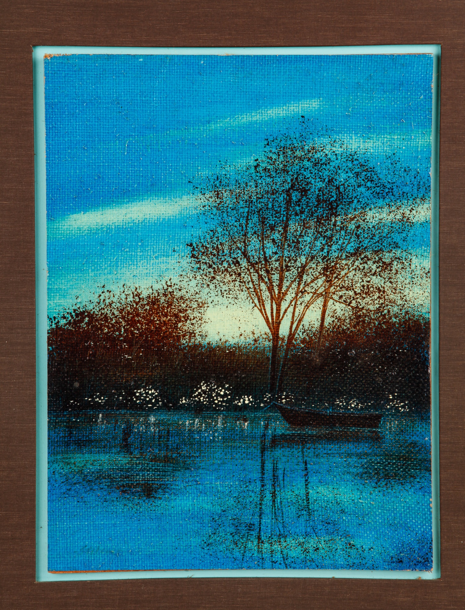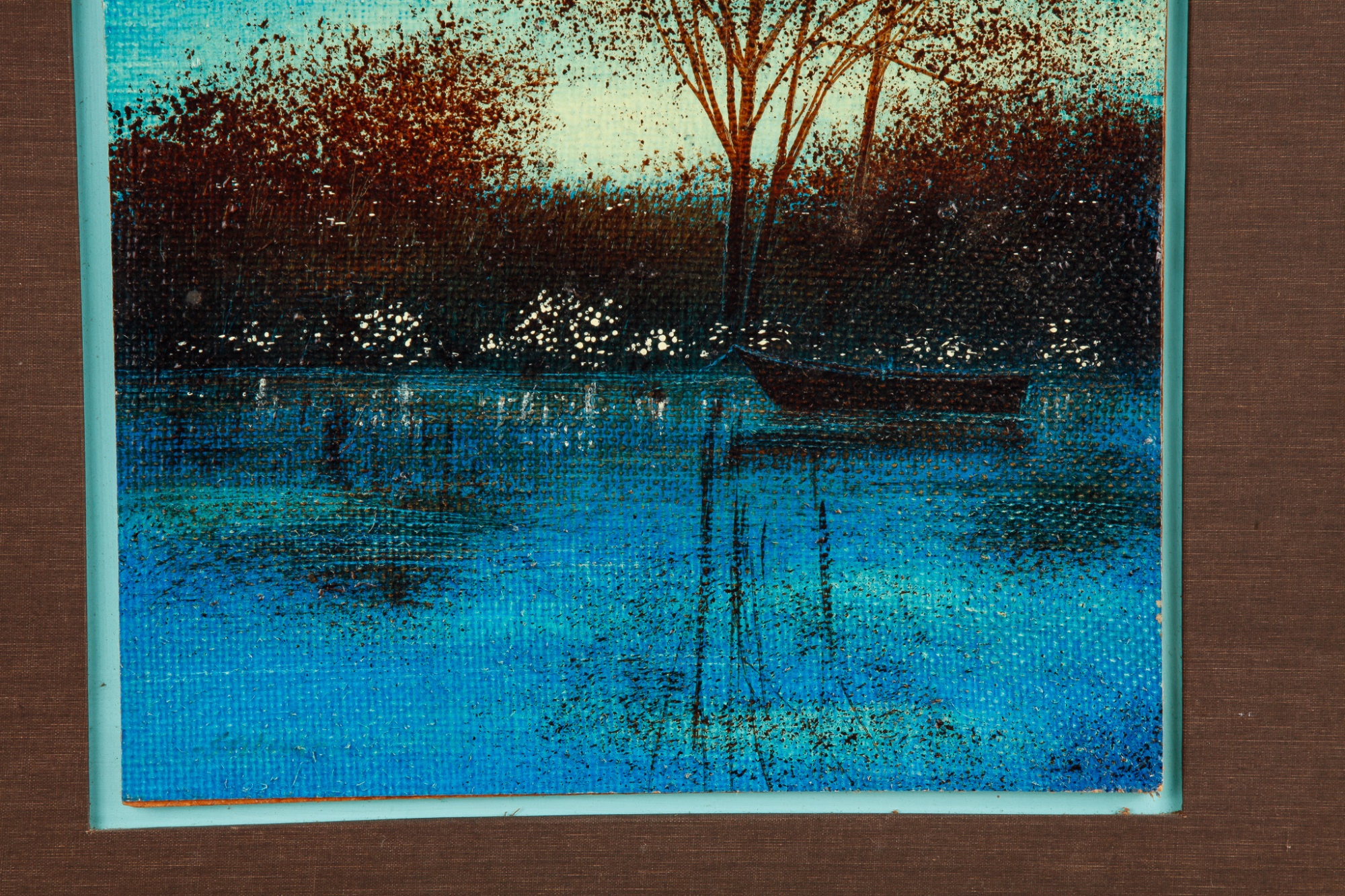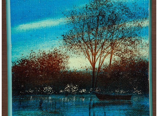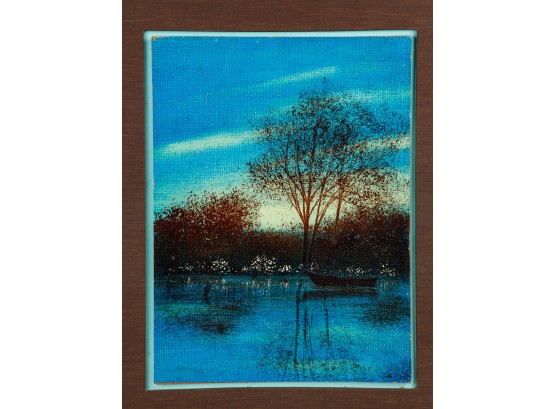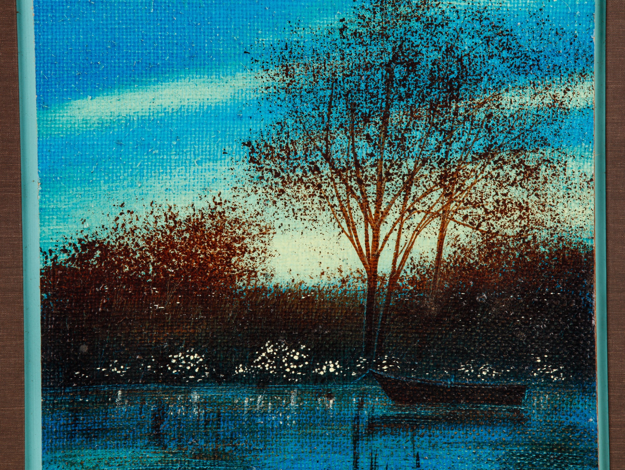 Shoreline at dusk. Oil on board. Unsigned. 28 1/2" x 24" framed. Provenance: Direct from artists family