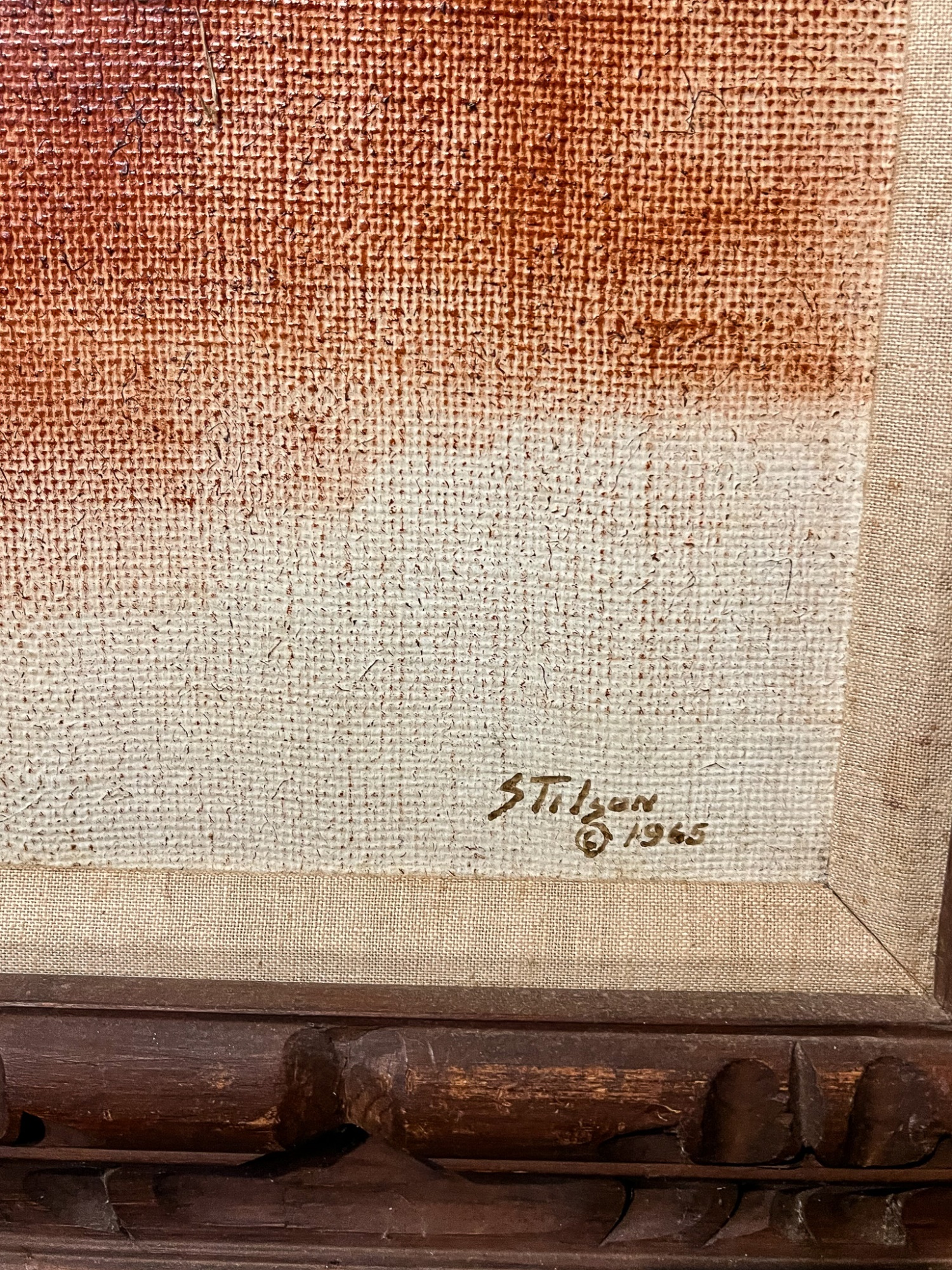 Oil on board. Signed and date 1965. 44" x 32" framed. Provenance: Direct from artists family