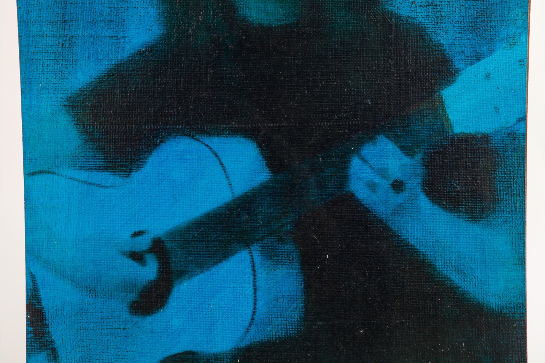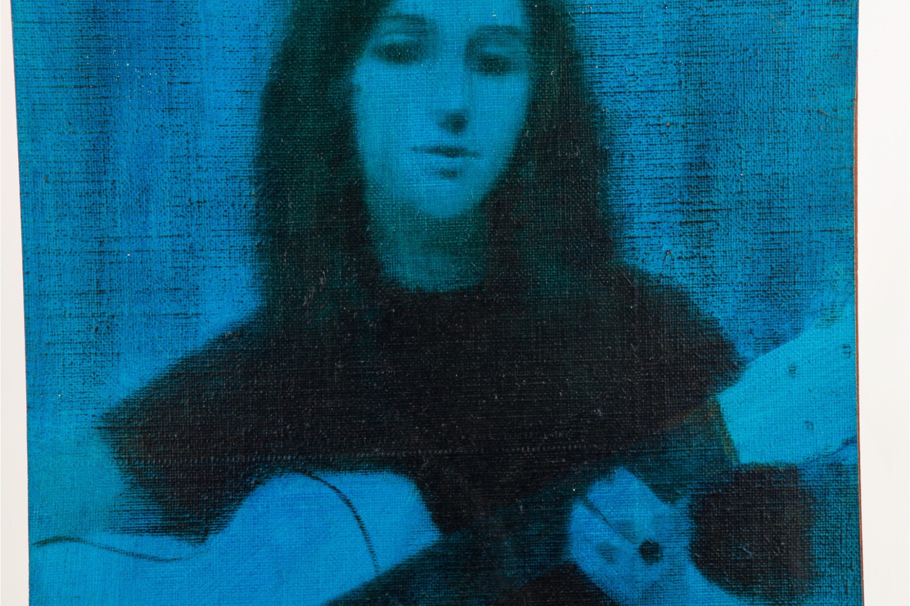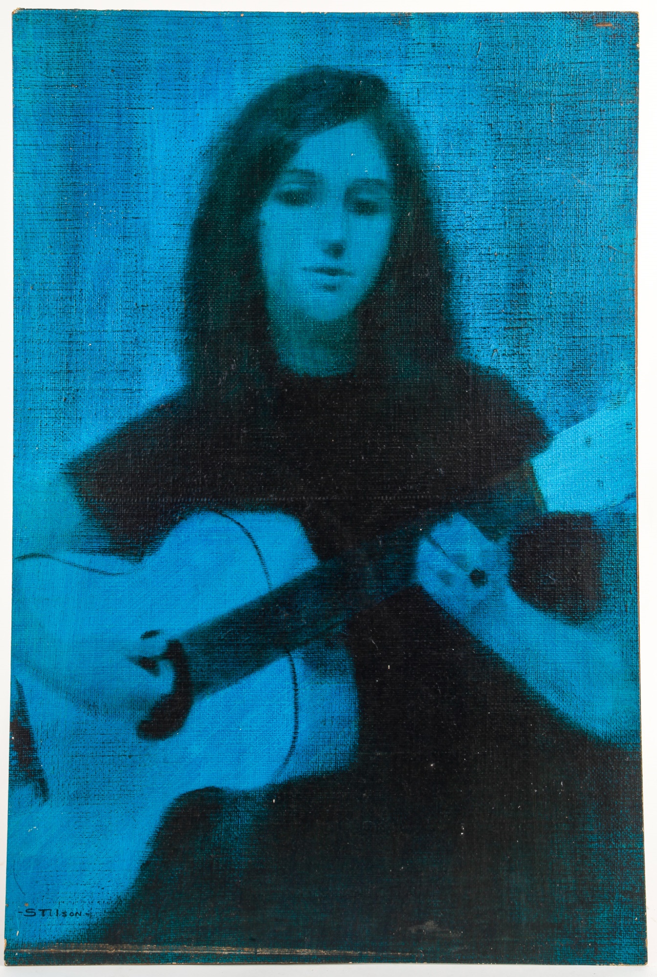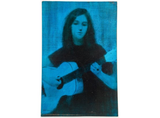 1960's vintage girl playing guitar. 36" x 24" unframed. Provenance: Direct from artists family