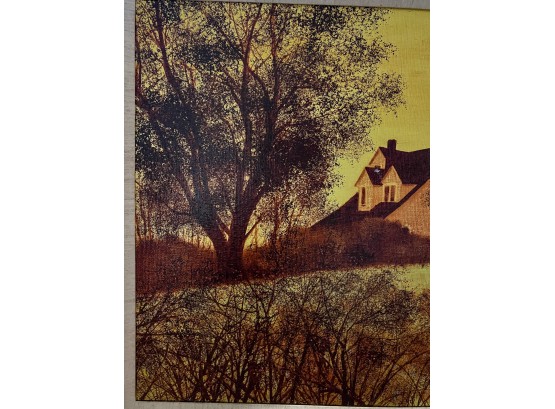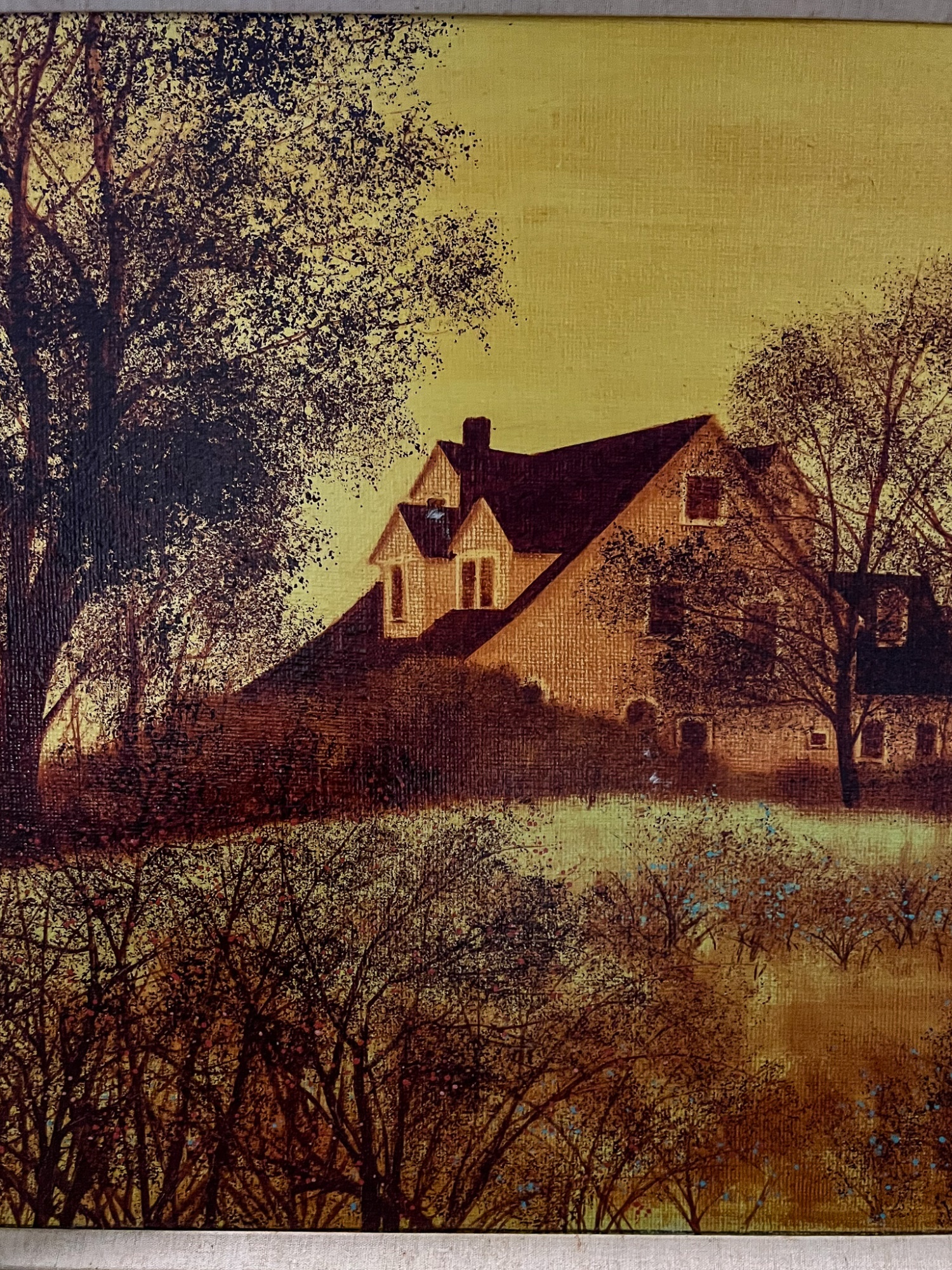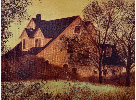 Landscape with home. Oil on board. Signed and dated 1973. 31 1/2" x 38" framed. Provenance: Direct from artists family