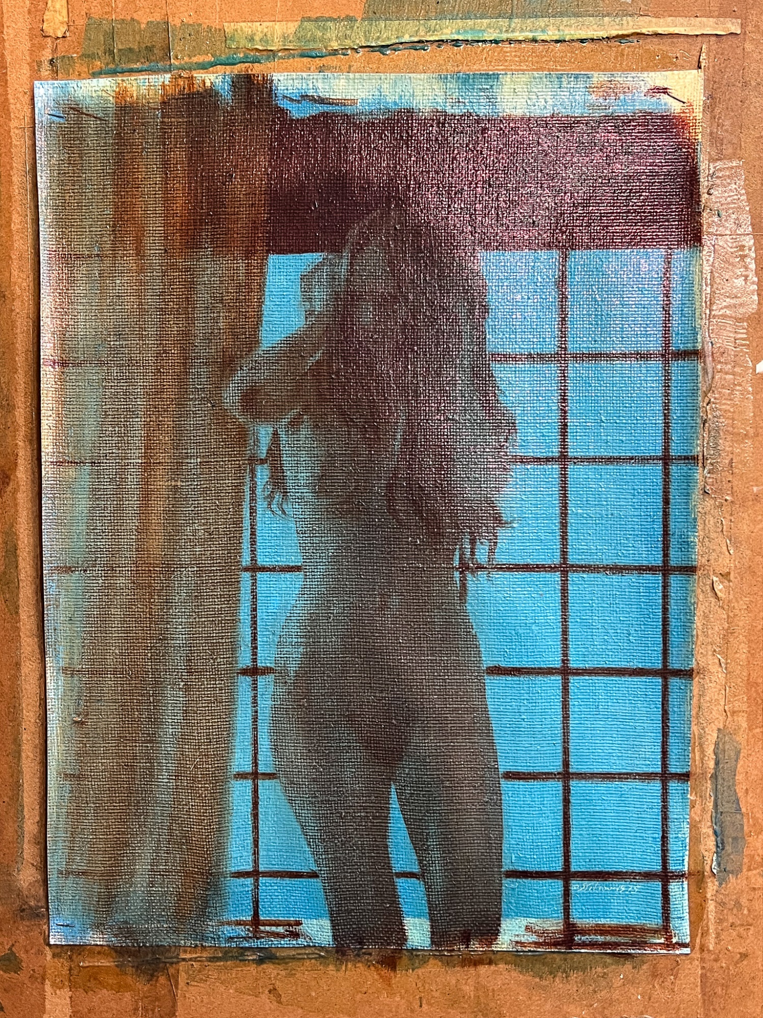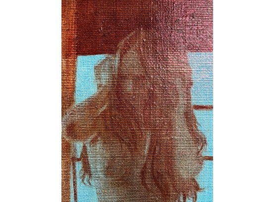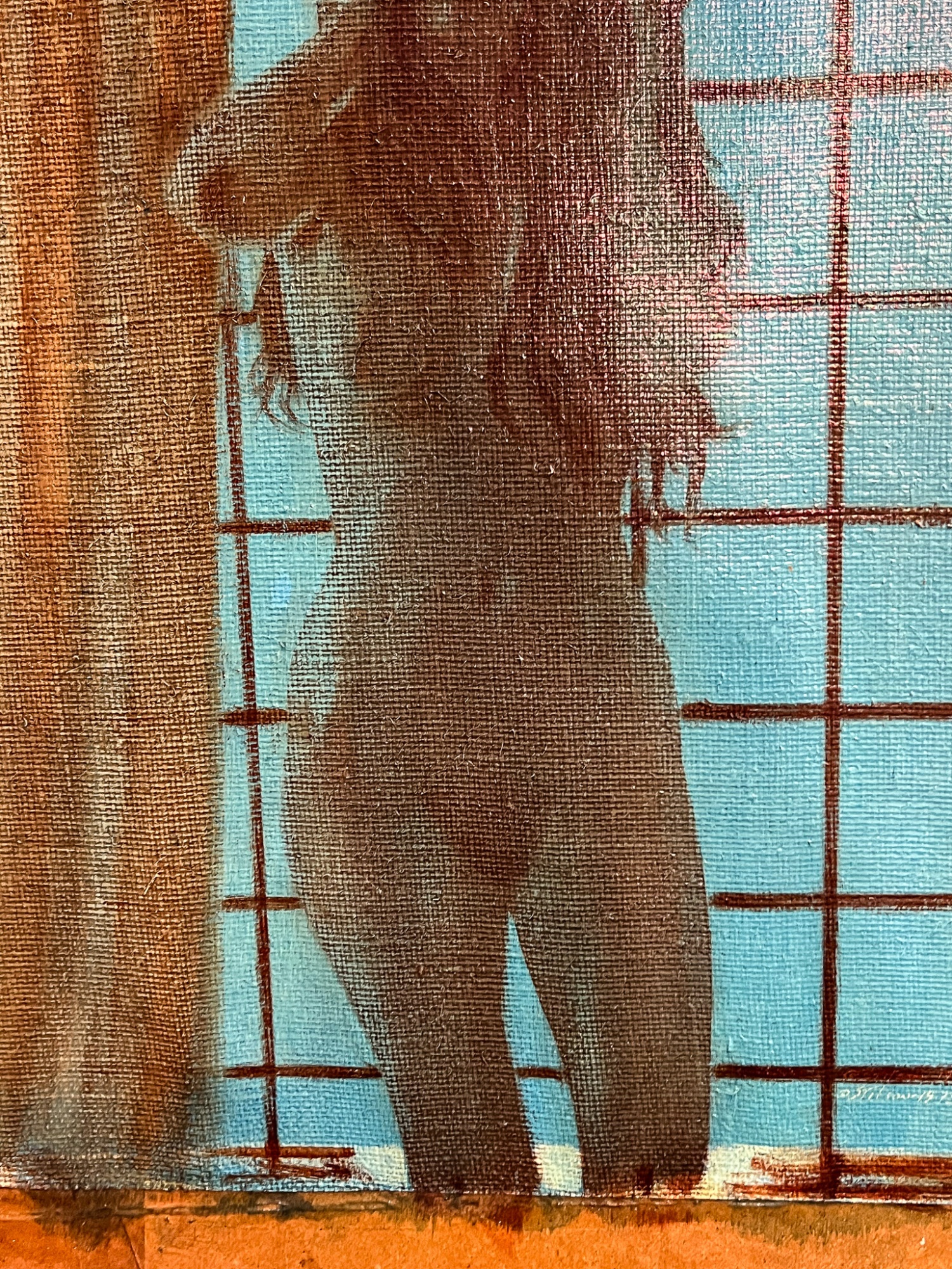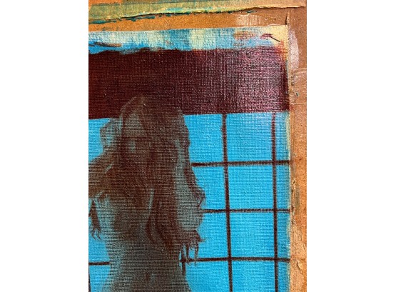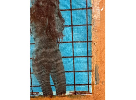 Standing nude at draped window. Oil on canvas tacked to board. Signed and dated 1975. Canvas 22" x 16 1/2", 30" x 24" board. Provenance: Direct from artists family