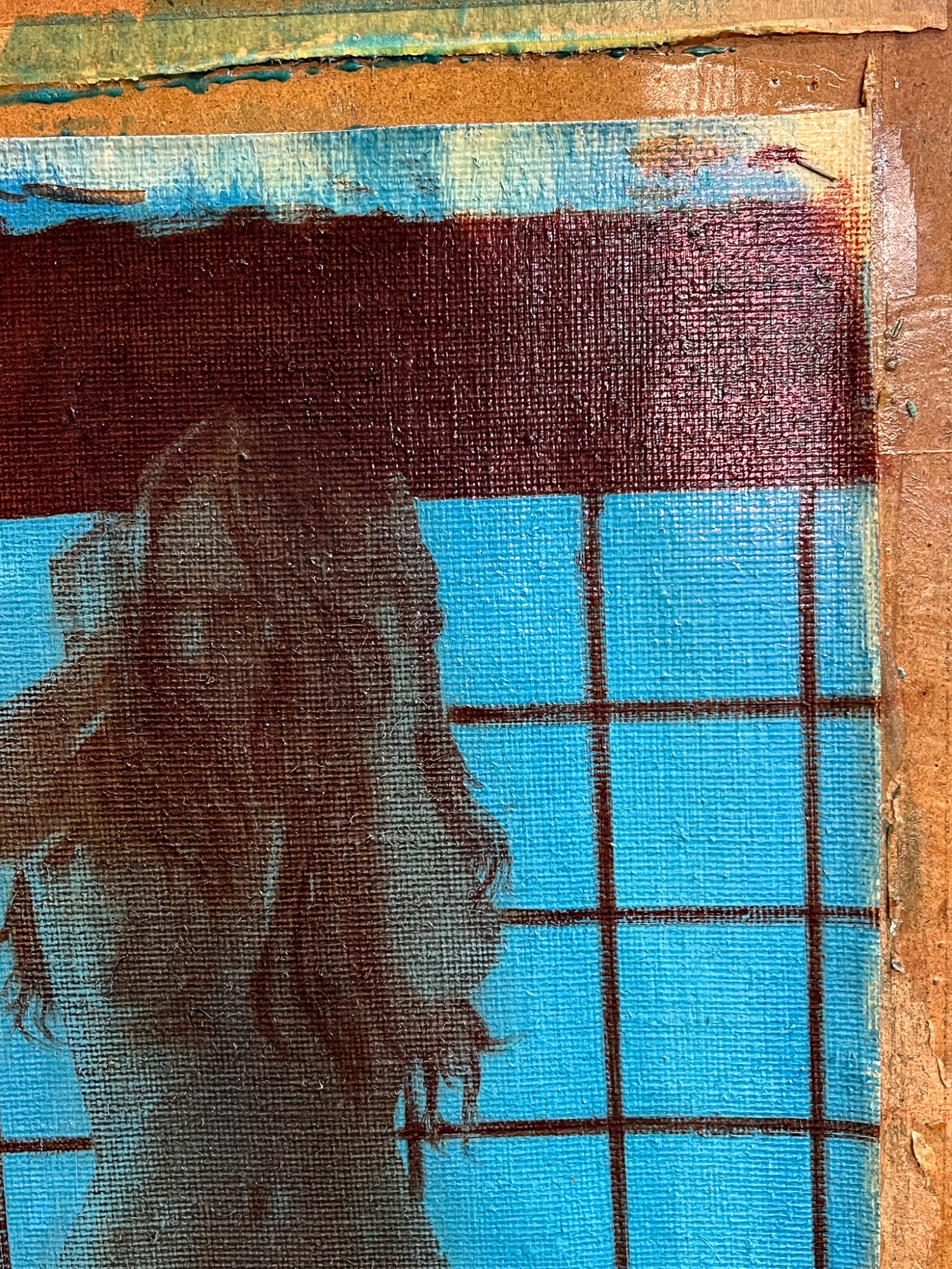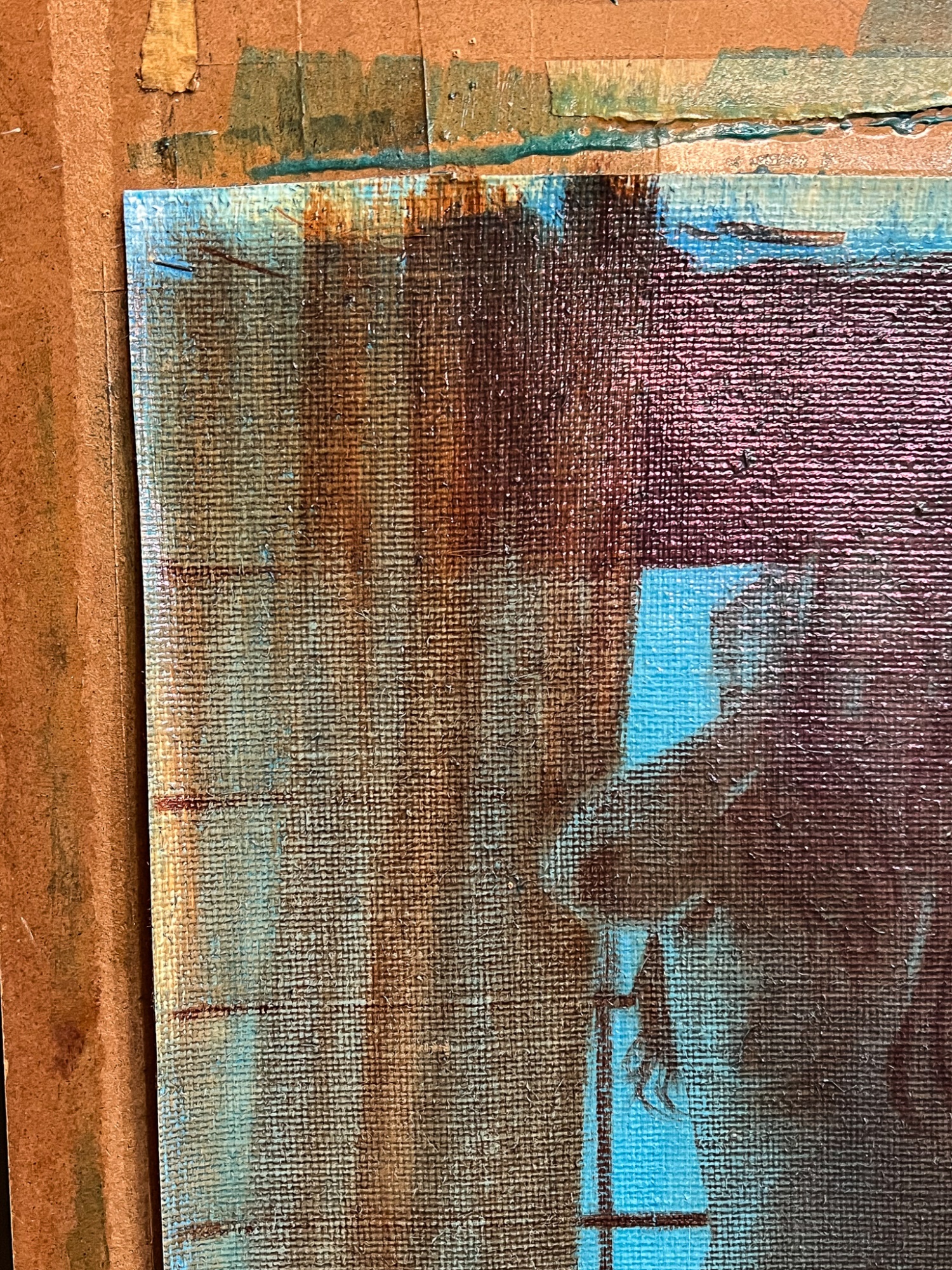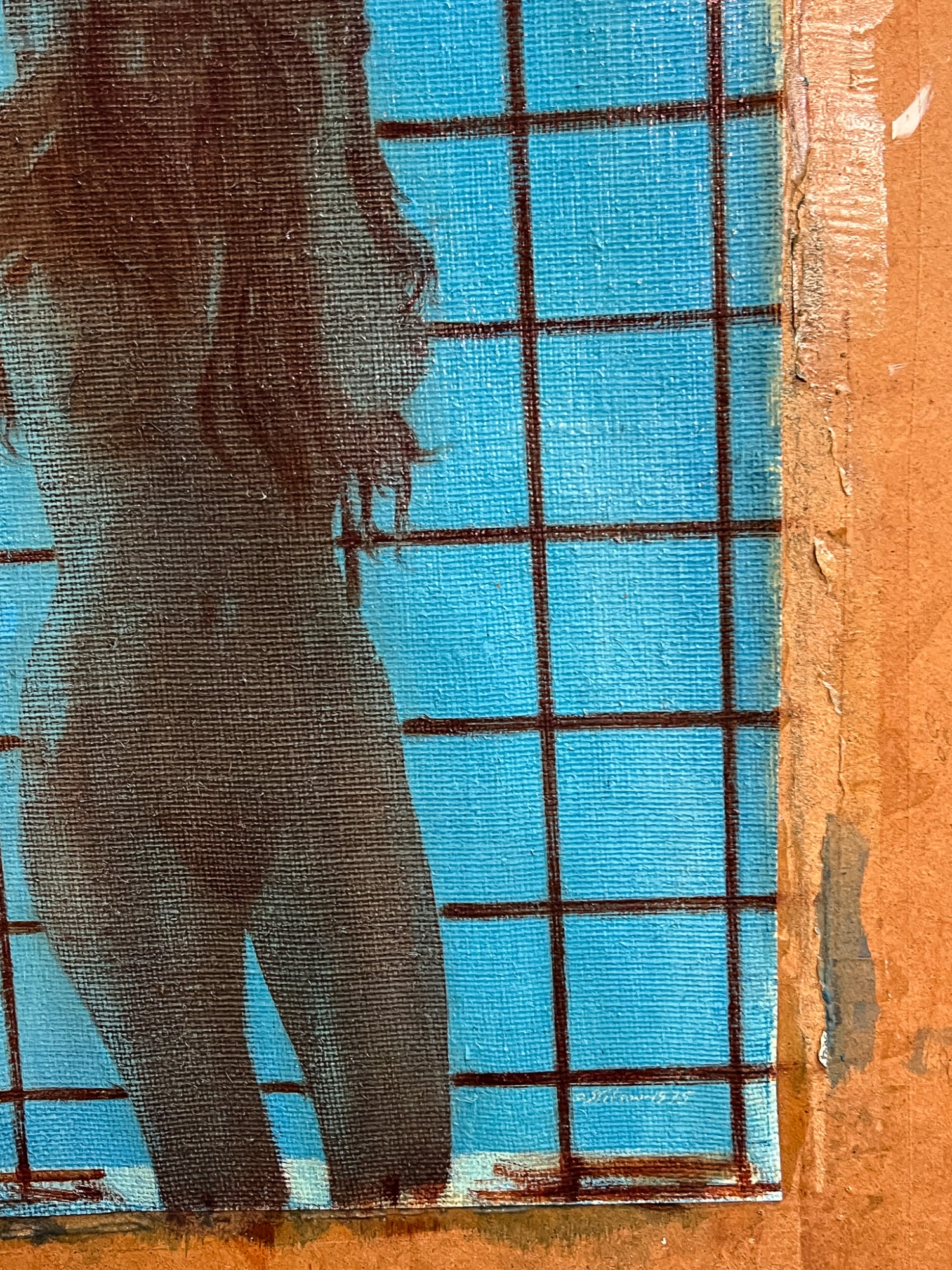Standing nude at draped window. Oil on canvas tacked to board. Signed and dated 1975. Canvas 22" x 16 1/2", 30" x 24" board. Provenance: Direct from artists family