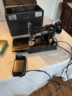 a real nice clean operating # 221 singer sewing machine in case ,The case is 12 inches tall 8 inches deep and 15 inches long. Take a look at this nice machine this is the one to buy do you want to use one.