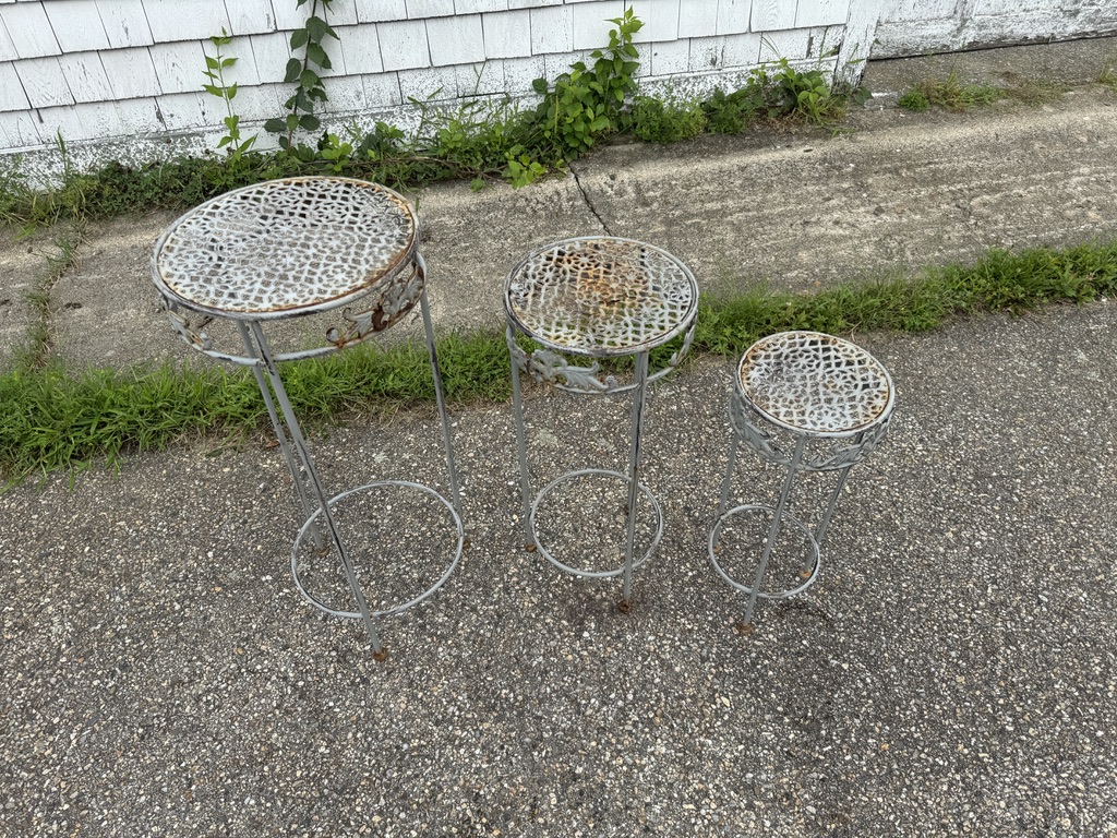 3 metal nesting tables . largest table is 12" in diameter the other are smaller diameters