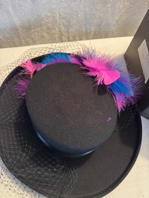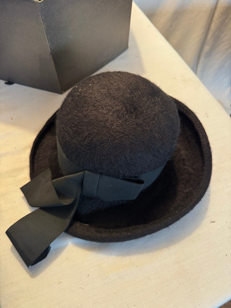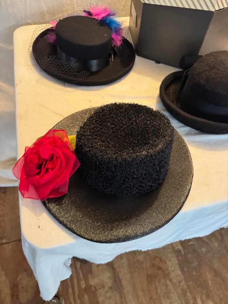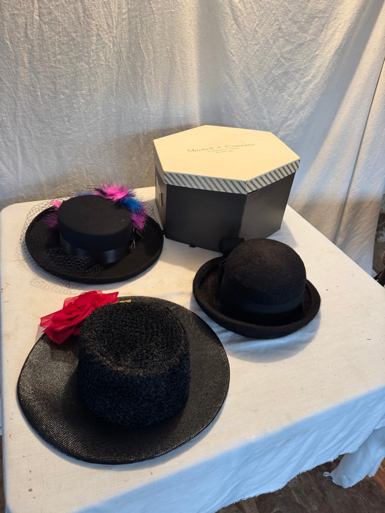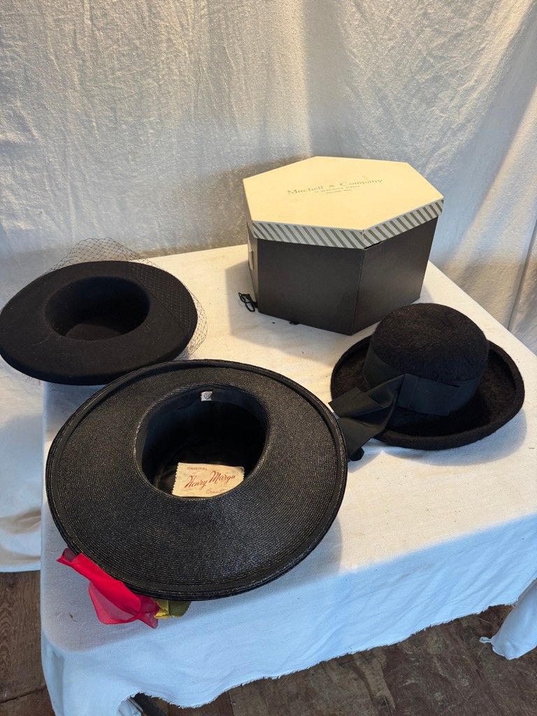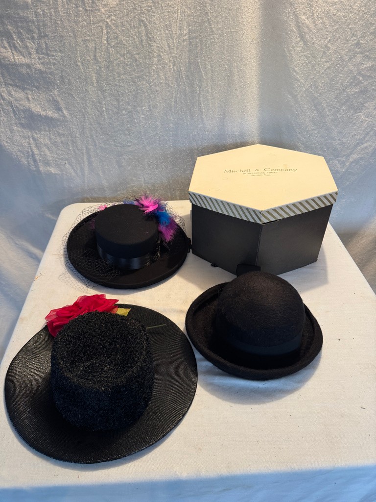3 vintage ladies hats and a hat box see photos