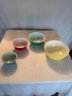 Nest of four Pyrex bowls. yellow ,green,red and blue all signed Pyrex green is marked 403 2 1/2qt red is marked 402 1 1/2 qt. See Photos