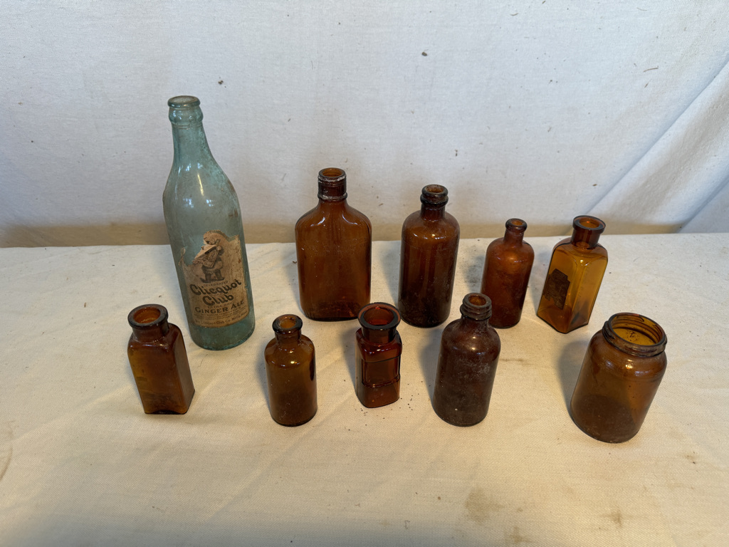 9 old bottles and a jar see photos