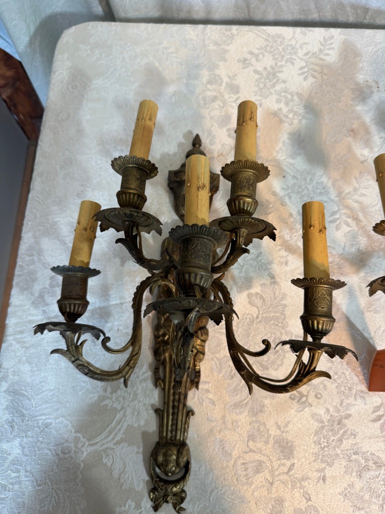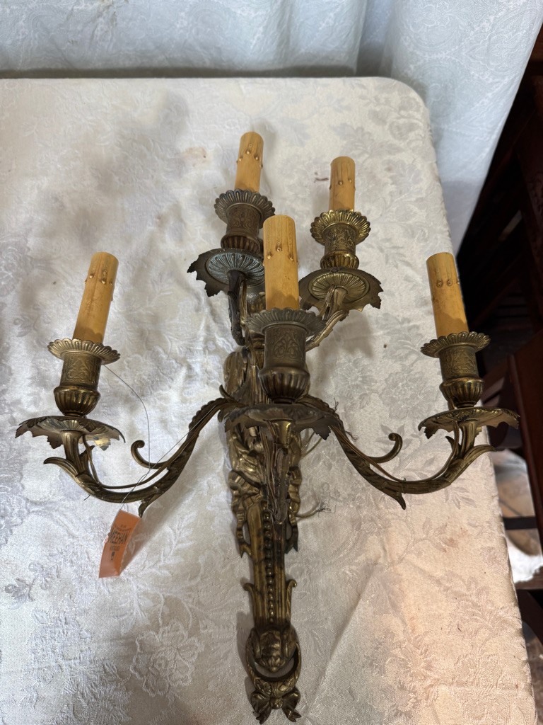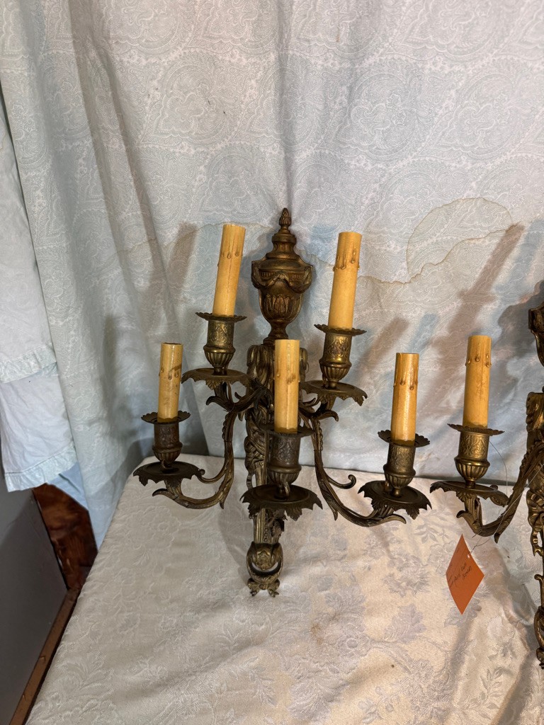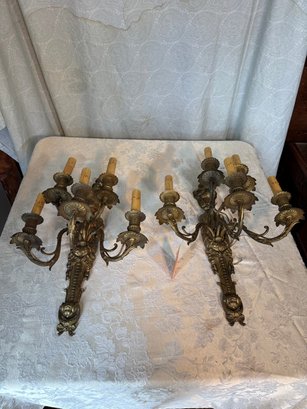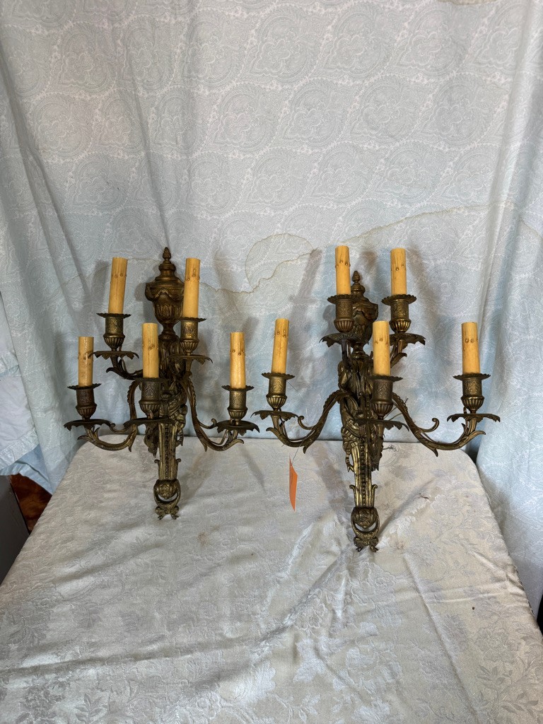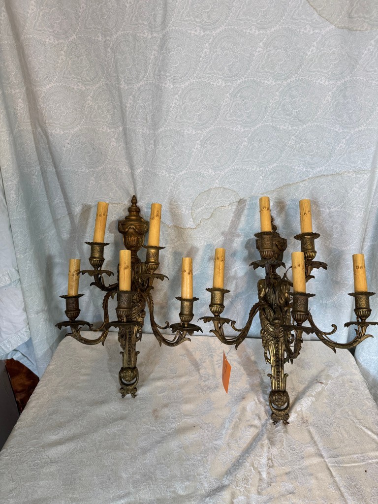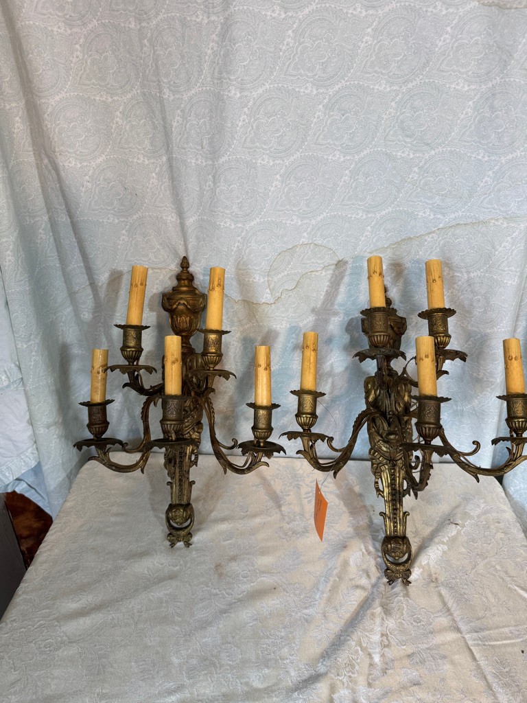 Each wall sconce is 18 1/2" tall 9" deep and 14" wide. 5 candle per sconce ,no bulbs with fixtures