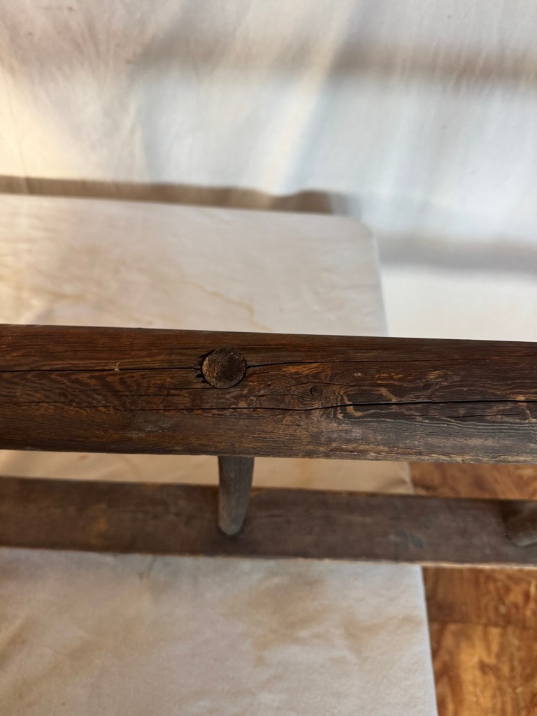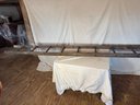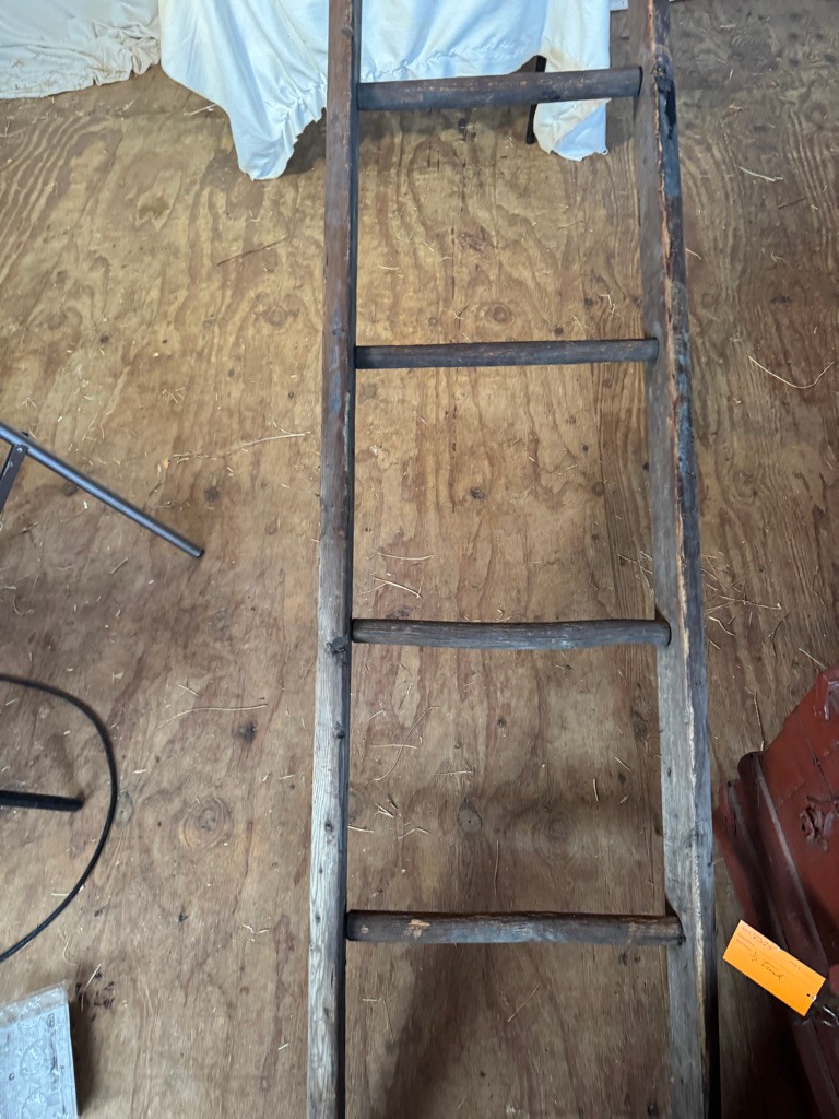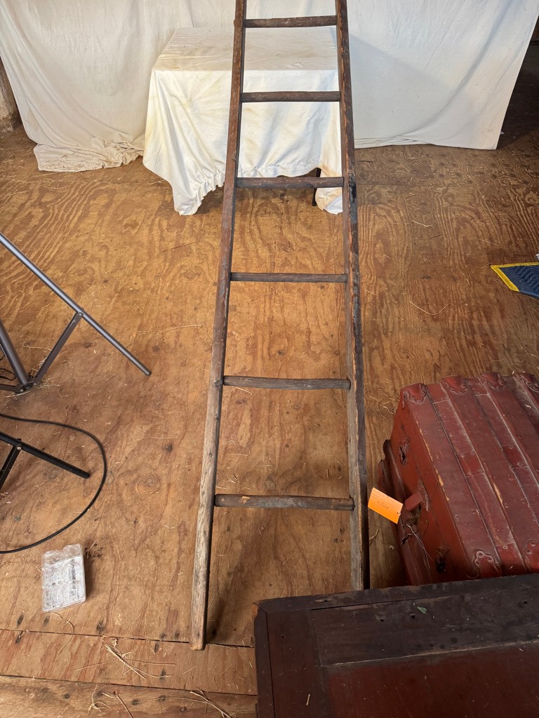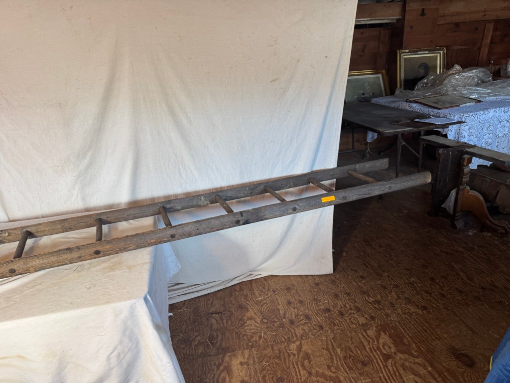 Antique wooden apple picking ladder 11' 10" long 3" in depth and tapers from 16" to 12" . Note rounded sides . Great decorative piece . Because it is made of wood it can be easily shortened to fit a particular spot if need be.