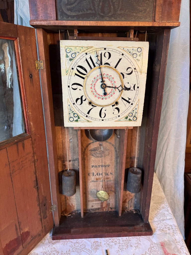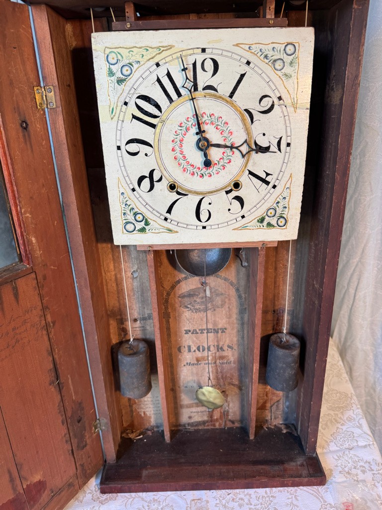 Nice antique weight driven clock. untested . See photos a nice large clock 34" tall 15 1/2" wide and 5 1/2" deep