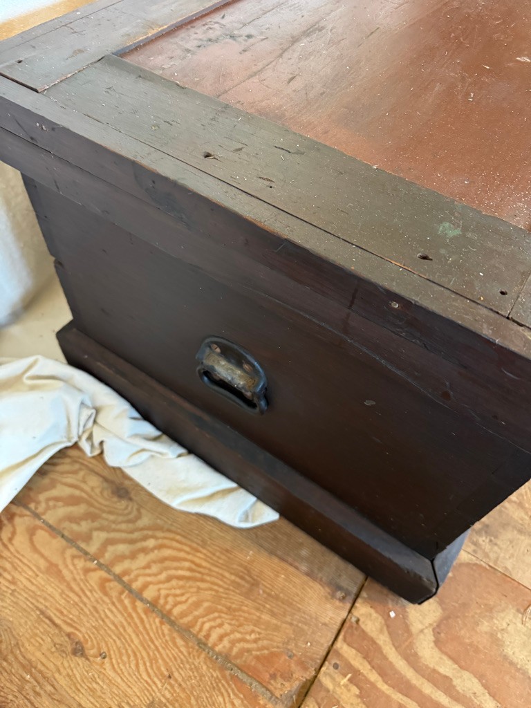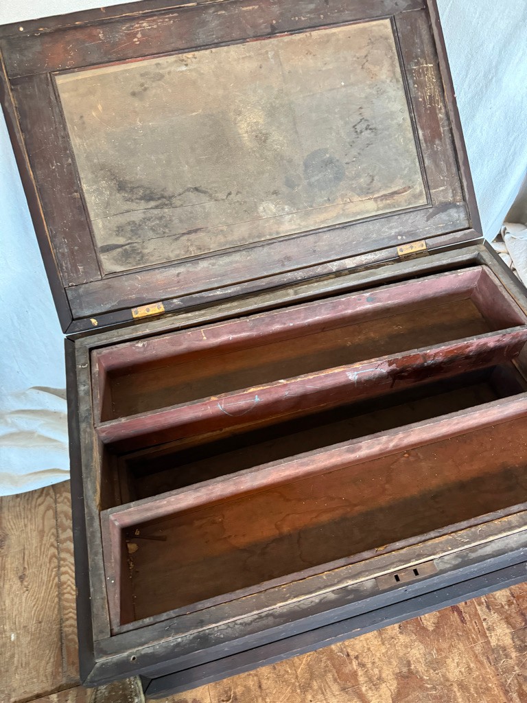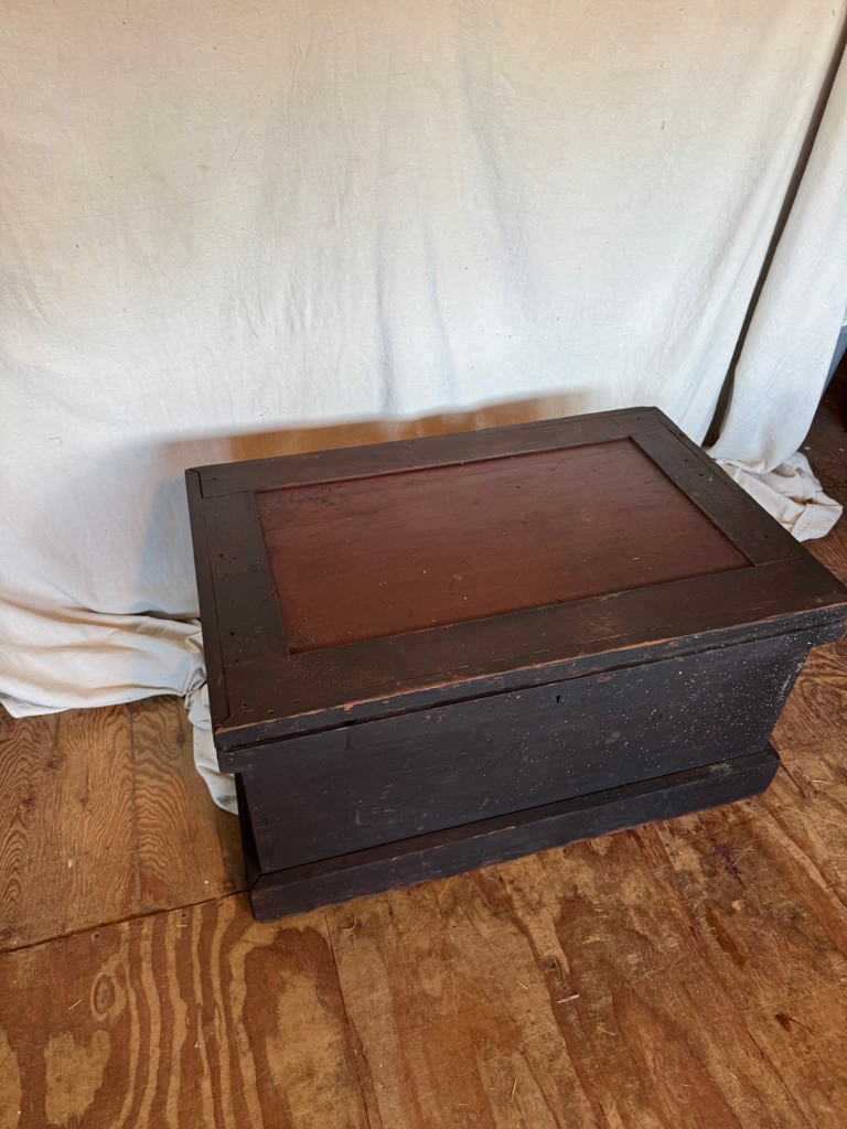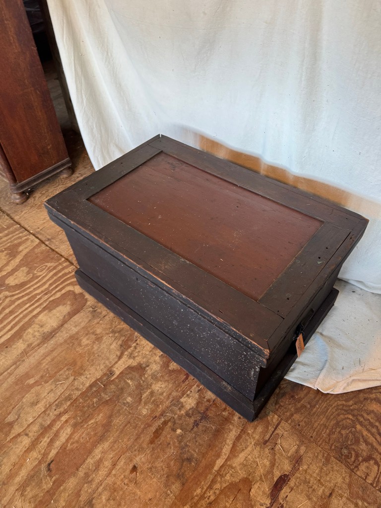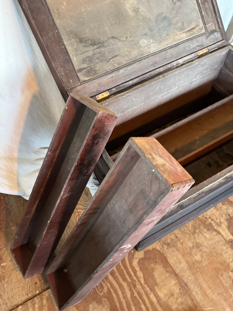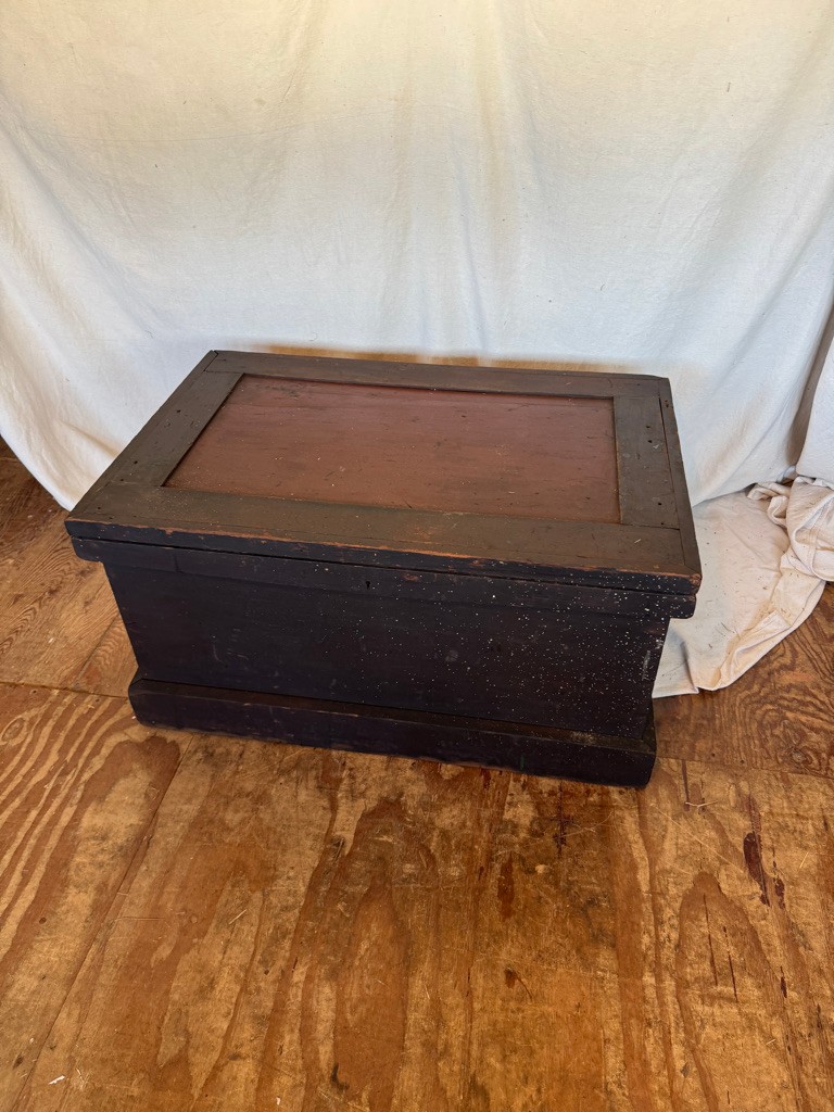 Antique carpenters tool chest 18 1/2 inches tall 24 inches deep and 36 inches long it has movable compartments inside see photos.
