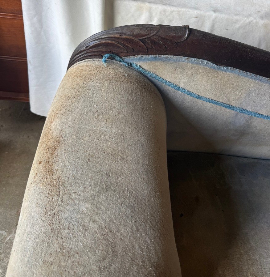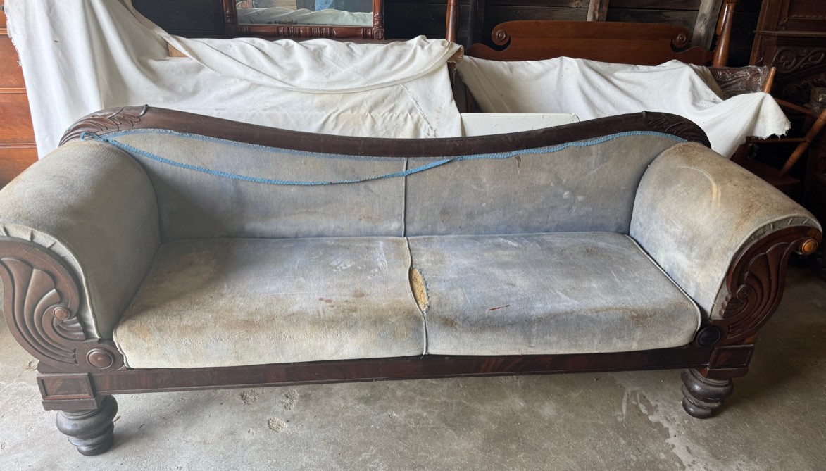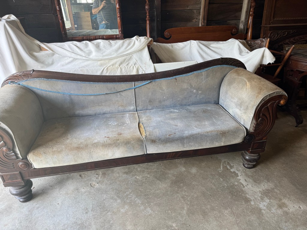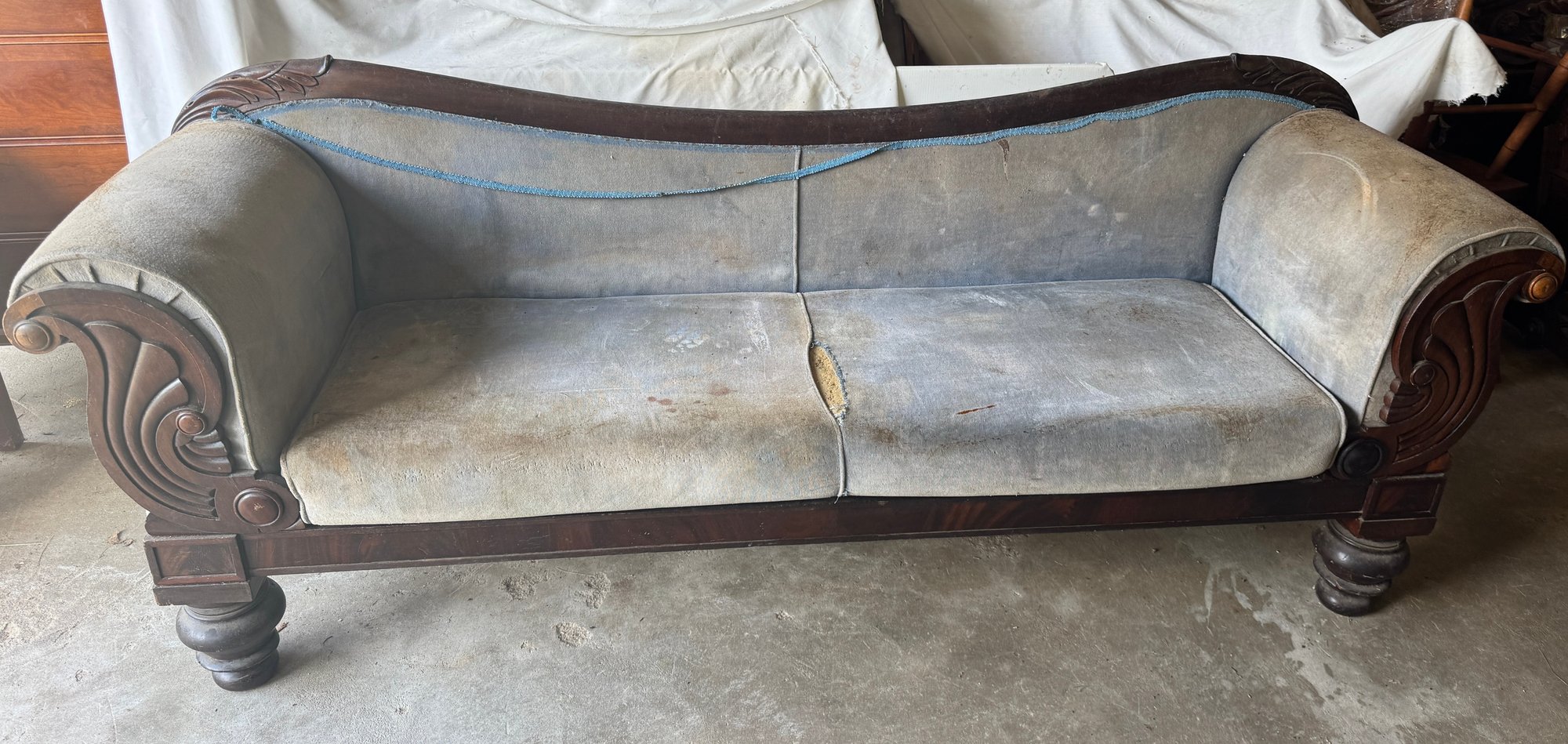 antique sofa ,good bones needs reupholstering. The sofa is 34" tall , 24" inches deep and 86 inches long