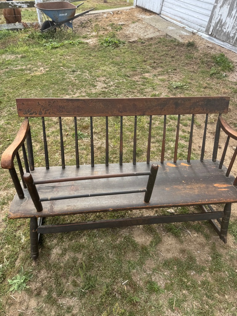 How to find Antique Mammey's rocking bench 28 inches tall 48 inches long and 26 inches deep. Great for decoration.