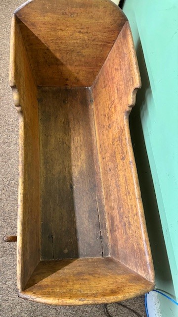 Antique early 19th century pine cradle. 40" long 19" wide and 20" tall