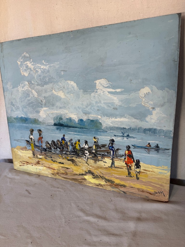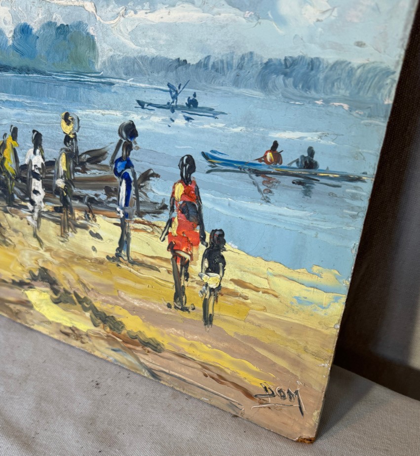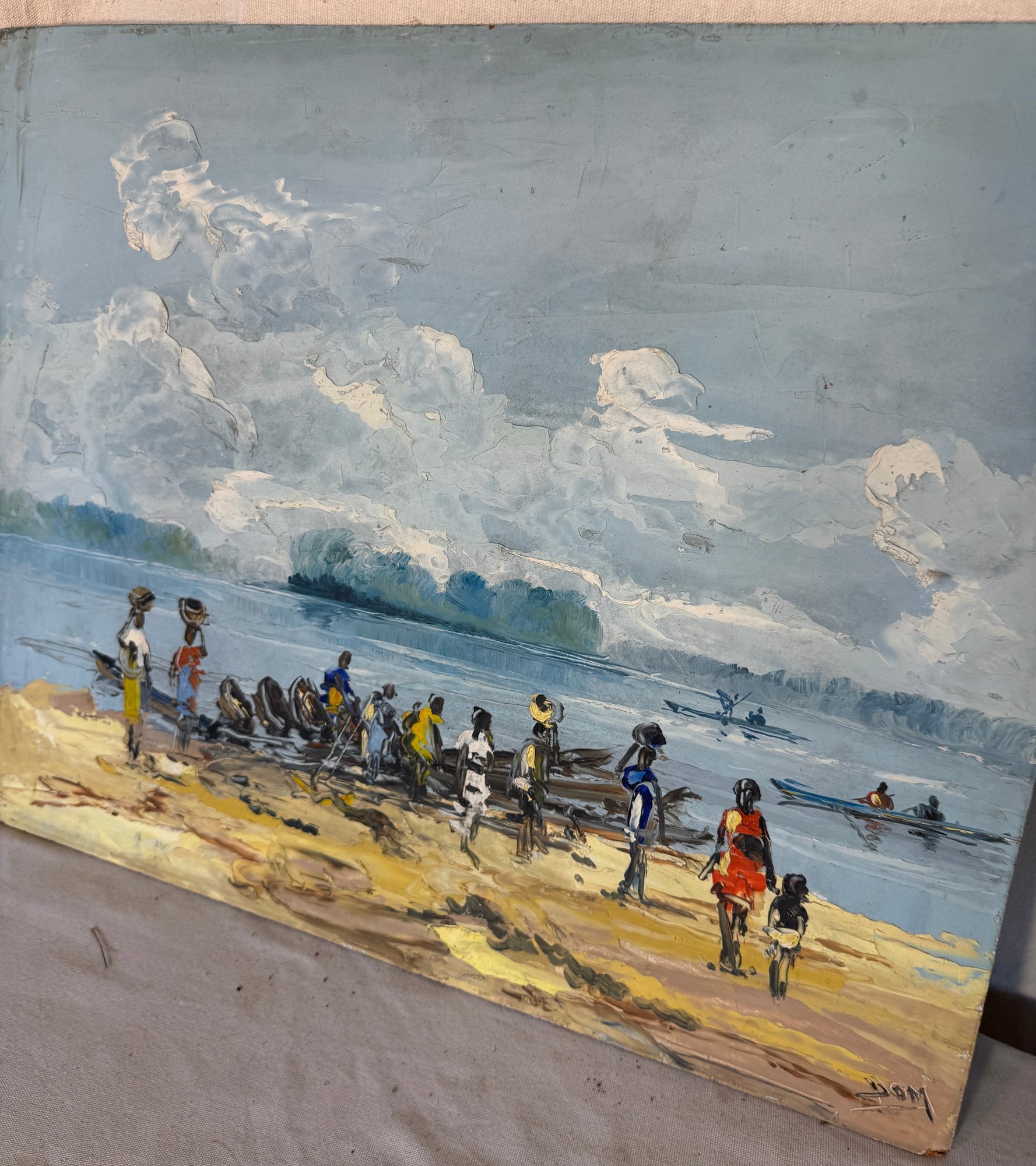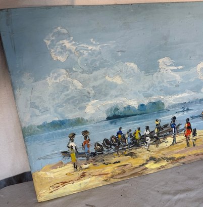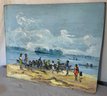 # 16 o/b 19 3/4" x 24" of black people on beach signed Dom