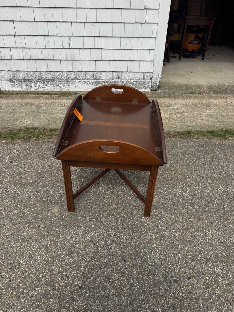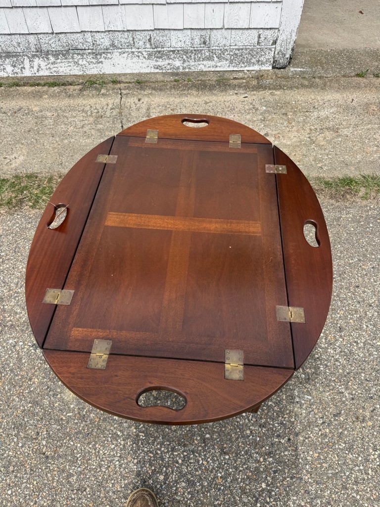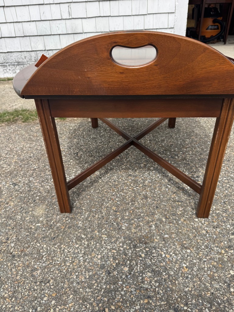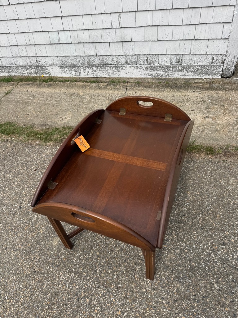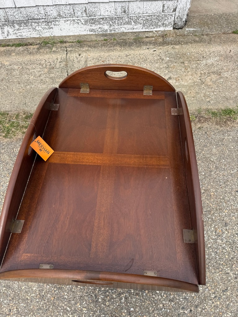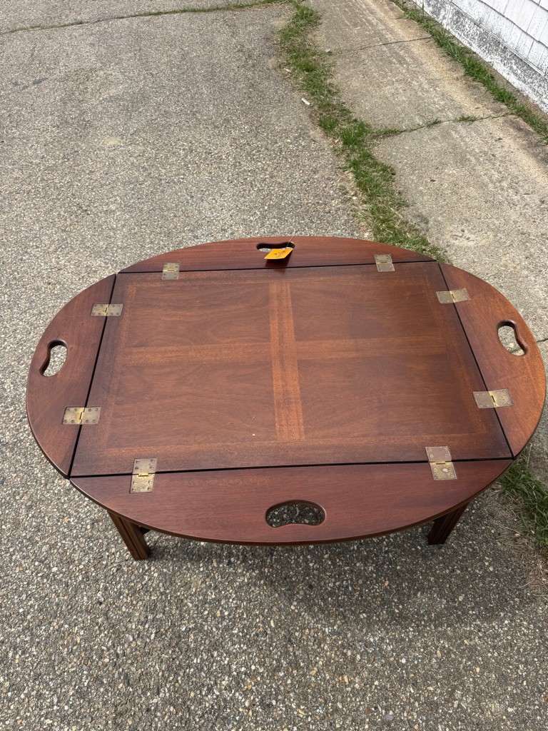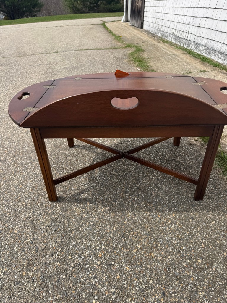 a real nice coffee table Butler/s tray top style . fully open it is 40" long and 31" deep and 17" tall see photos